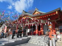 このところぐっと気温が上がって各地の梅だよりも~見頃~を報じている。 今日は予想外の冷え込みだが、枝垂れ梅で有名な「城南宮」へ出かけてきた。 JR京都駅八条口のE1バス停がなかなか見当たらない、東から西へと迷った 挙句ようやく辿り着き、十数人のおばちゃんのうしろへ並ぶ。 発車したバス車中の彼女らのお喋りは運転手のアナウンスも聞き取れないほどの喧騒。 社務所前では並ぶことも無くスムーズに神苑に入ると、いきなり満開の枝垂れ梅 !! 動きの緩やかなカメラマンの一団を追い越して、先へ先へと二時間ばかり散策する。 「曲水の宴」でよく見掛ける庭園は意外と狭く且つ水路も短かった。 椿も数輪咲いていたがこれからシーズンを迎えるそうだ。 源氏物語ゆかりの「椿餅~つばきもちい」を土産に買う。 フォト |