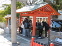 | 豊中ローズ球場から曽根駅へ戻り、阪急高架沿いに300m程北東に歩くと、萩まつり道了祭が 行われている新西国十二番霊場「東光院」が見えてくる。 山門前では数人の山伏による大護摩供養が行られており、その後では火渡りの業に一般の 参拝者も参加できる。 お目当ての萩は、若干満開時を過ぎていた。 |
