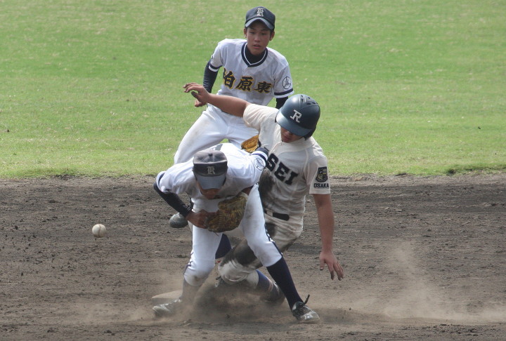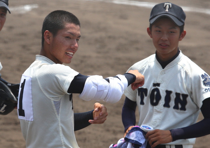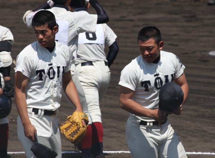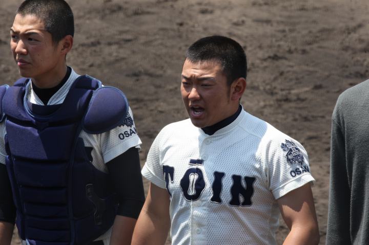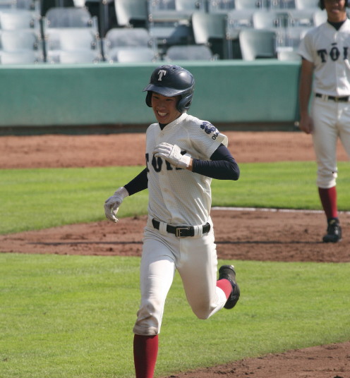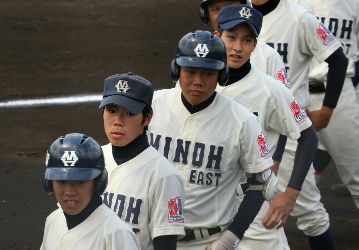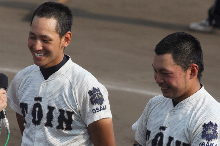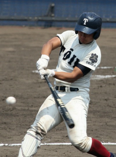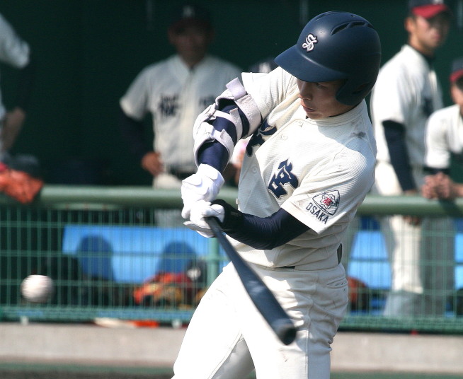 | 大阪桐蔭が思わぬ大苦戦というよりも大健闘をした堺東に拍手を送ろう。 4回まで堺東が5-3とリード5.6回も大阪桐蔭打線は沈黙、 あわやと思われたが、7回に大阪桐蔭6番C谷口がレフト越えの2ラン、 続く7番CF濱田くんにもレフトへのソロHRが出て一気に逆転した。 |
