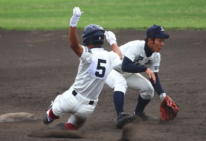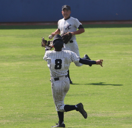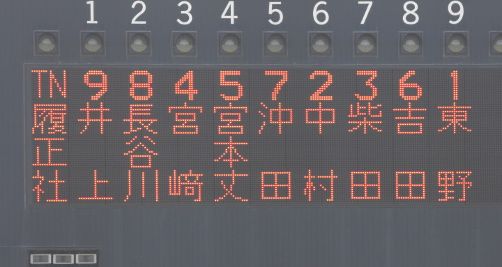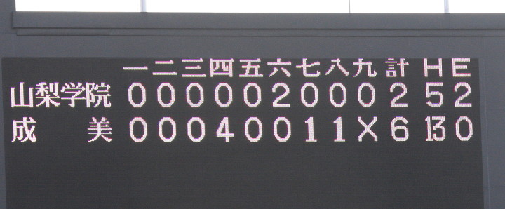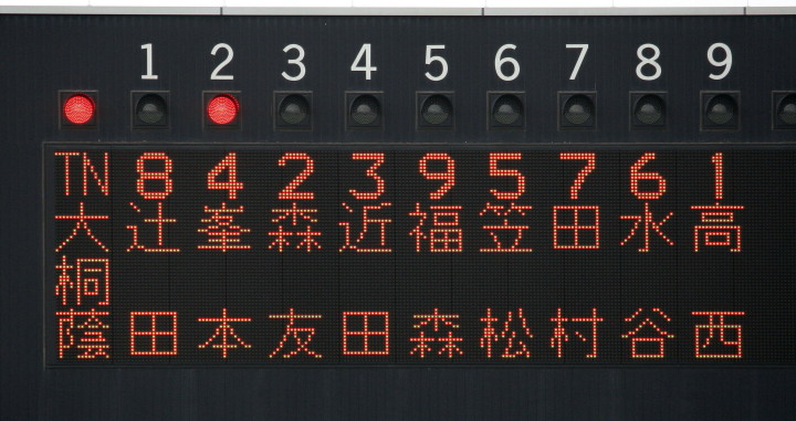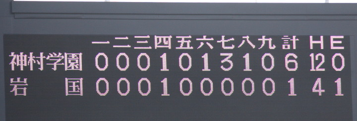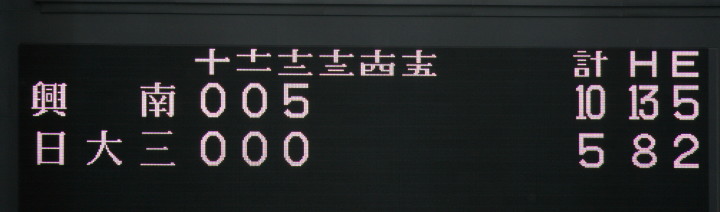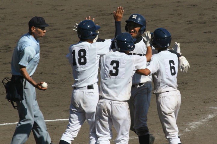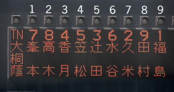 | 1回裏・峯本の右中間ソロで先制、3回は中村LF前ヒット、峯本がRF前、香月のLF前とタイムリーが続く。 5回連続四球から峯本が2点LF線スリーベース、正隋LF越え2ラン。更に6回には中村がLF2ラン。 先発・田中は5回5安打されたが零封、アンダースローの津松が1回を締めてコールド勝ち。 |