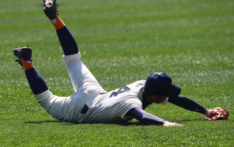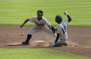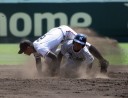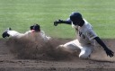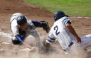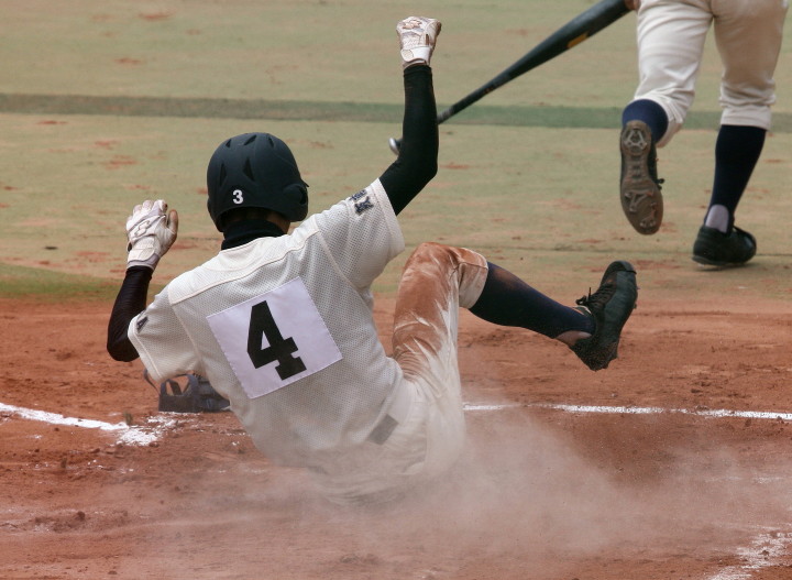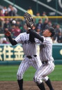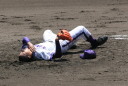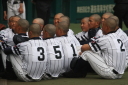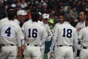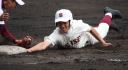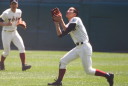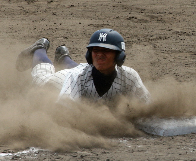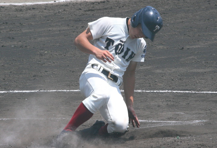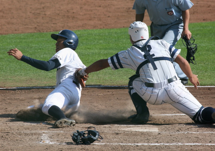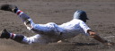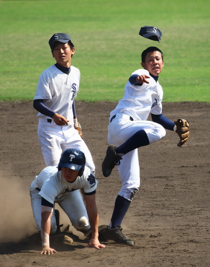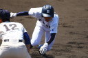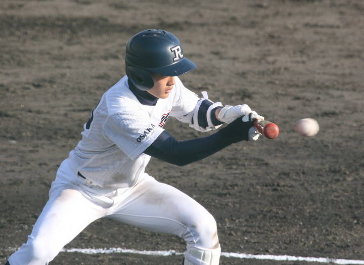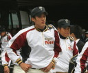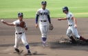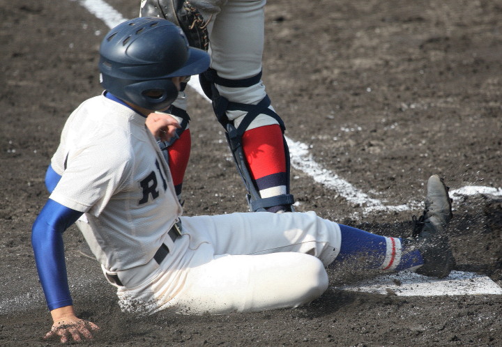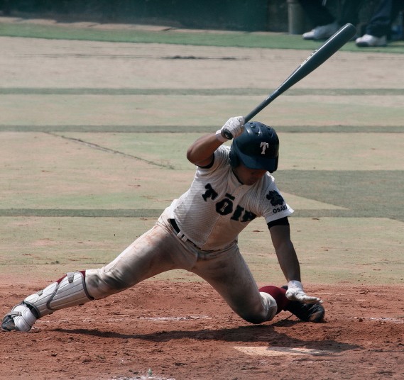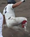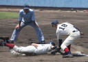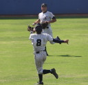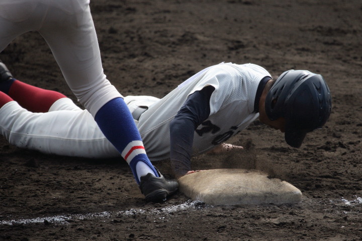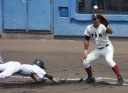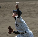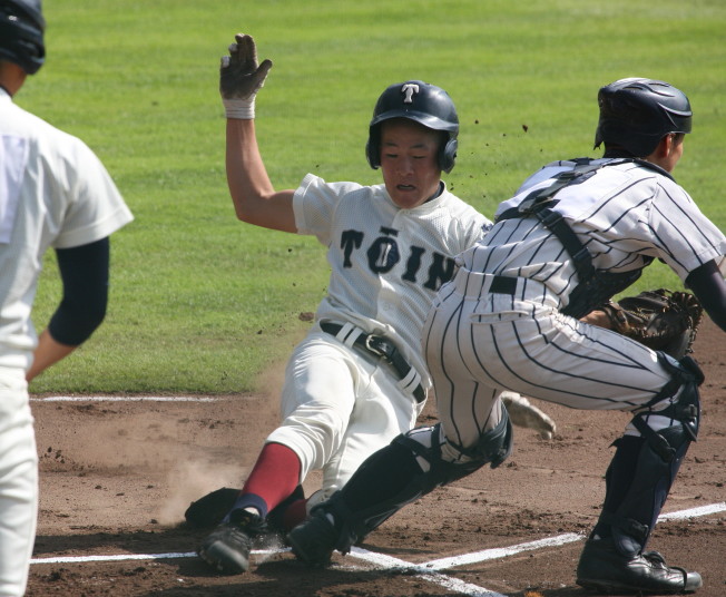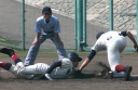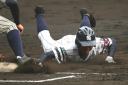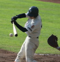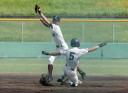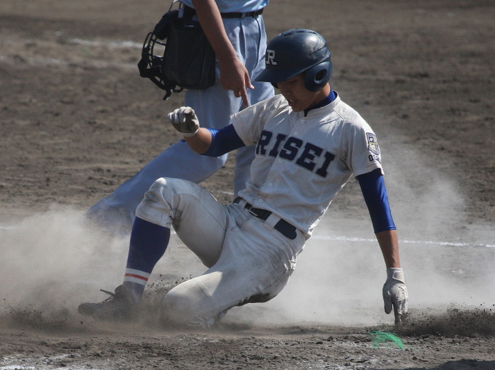 | 初回先頭打者に第一球目をホームランされた先発田中くんはこの日は制球が定まらず5回まで5安打5四球と苦戦。 2点りーどされた5回7番SS福田くんが右中間スタンドへ貴重なHR。7回裏2アウトからセンター前ヒットの福田くんが、 8番1B吉沢くんの右中間を破る2ベースで勇躍生還し同点。続く9番P田中くんが敵失を誘い吉沢くん生還し遂に勝ち越し。 |