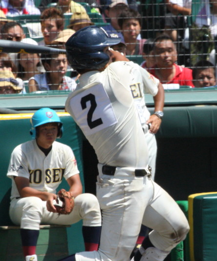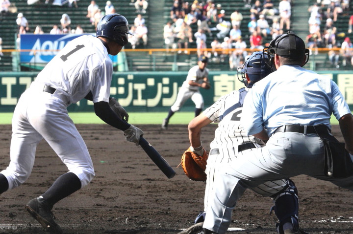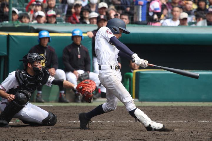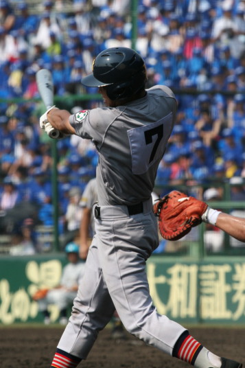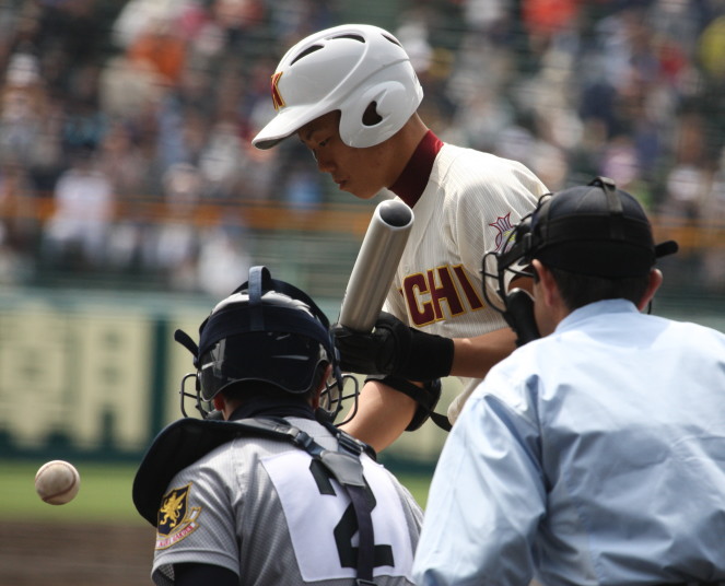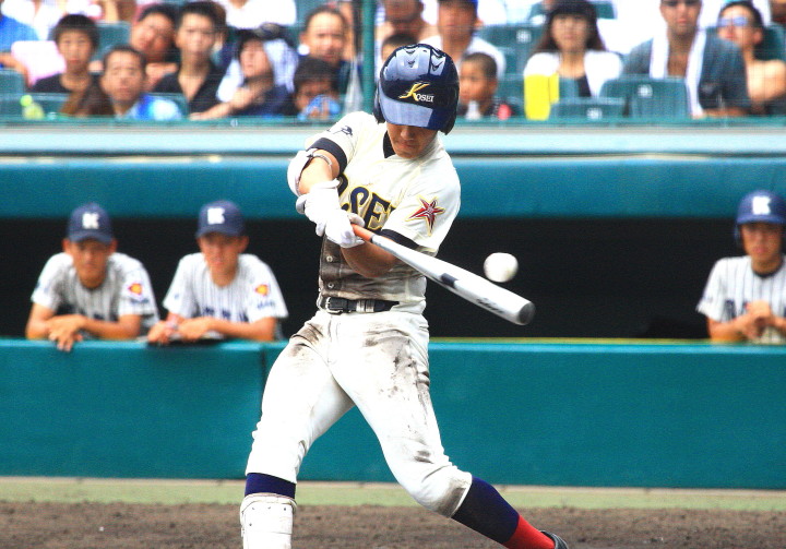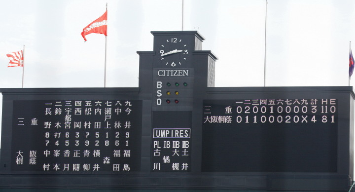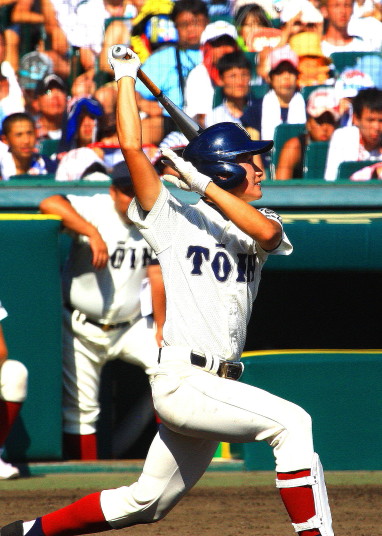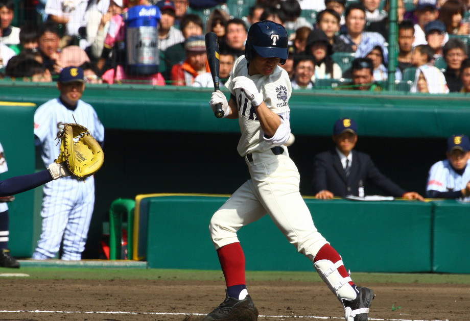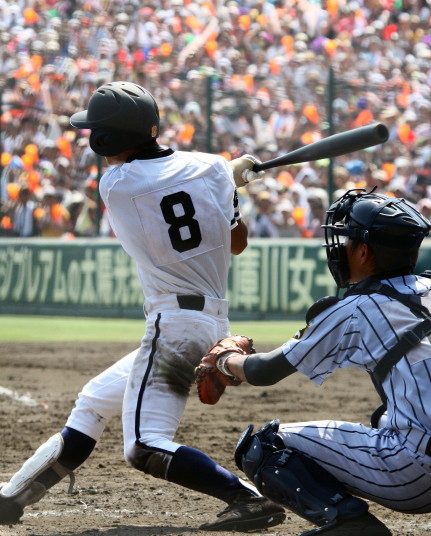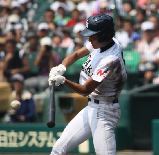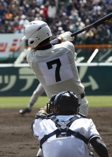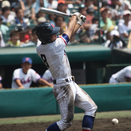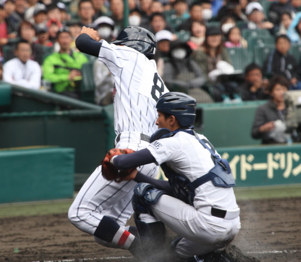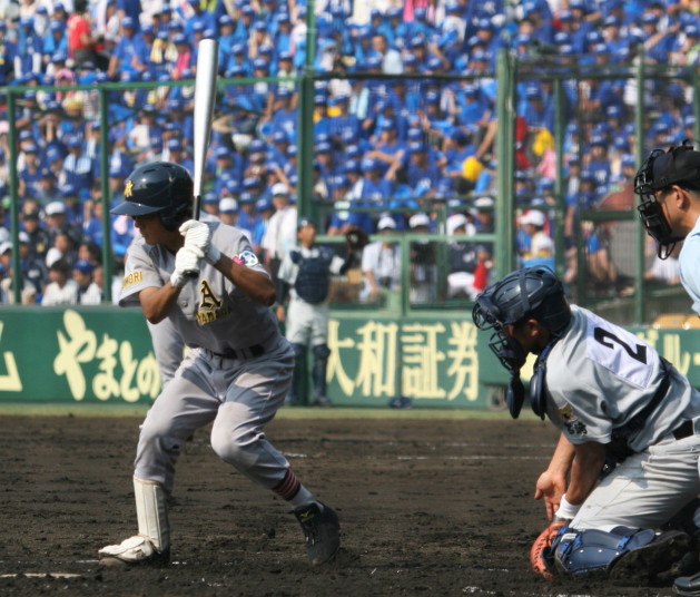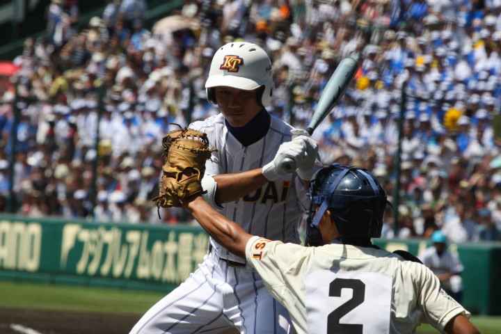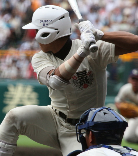 | 注目の四試合、実力伯仲のベスト8、その日の体調とちょっとしたゲーム配びの妙で勝敗が分かれる。 大阪桐蔭は初回高崎の機動力による無安打での1失点を喫したが、3回正随がセンターへタイムリー2点三塁打で逆転。 一度は同点に追いつかれたが、7回C中村のレフト越え2ランHRで勝ち越し、8回には中村がレフト前にダメ押しタイムリー。 |