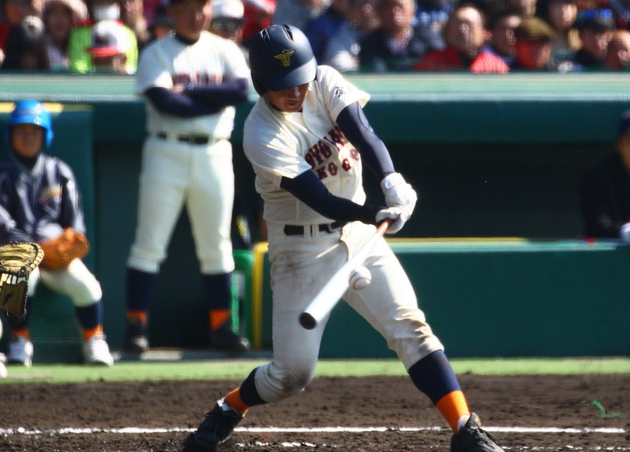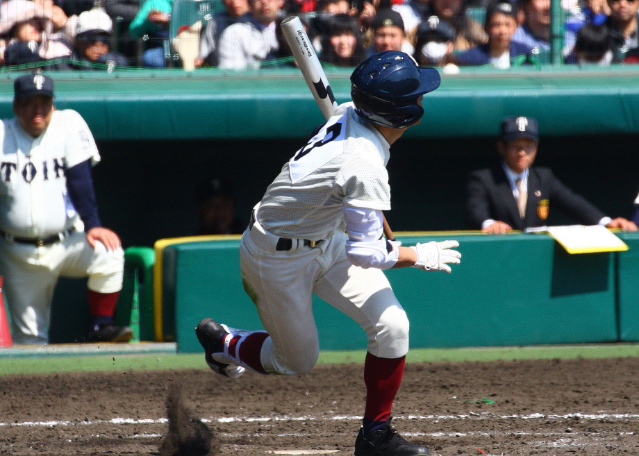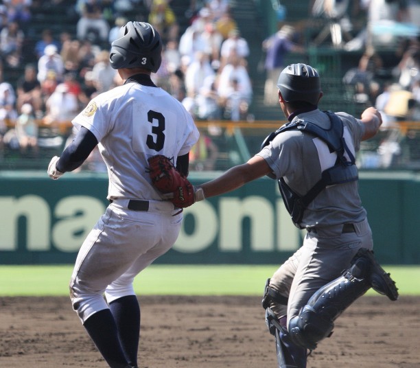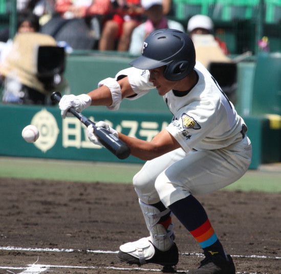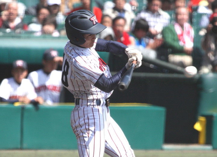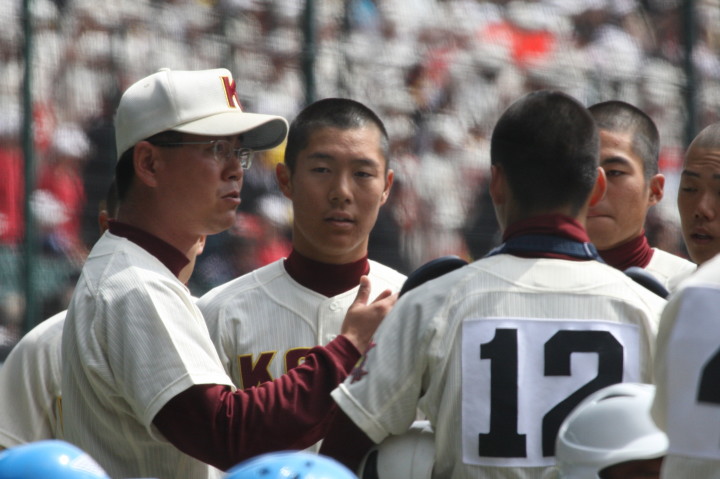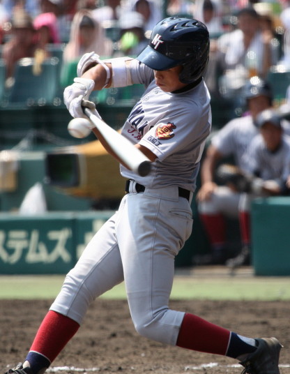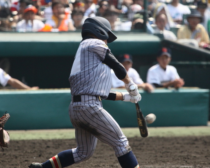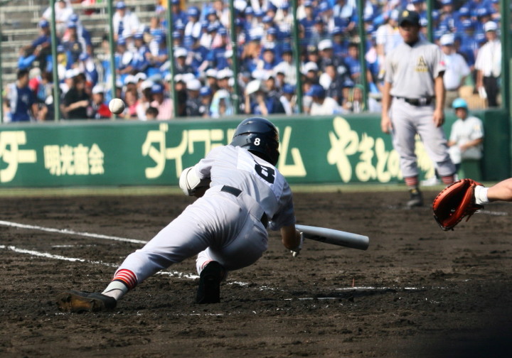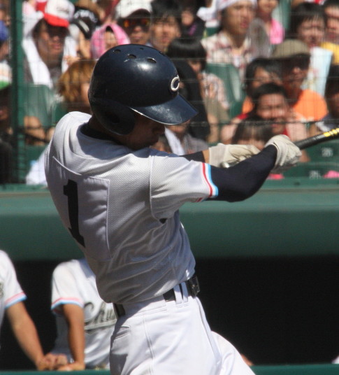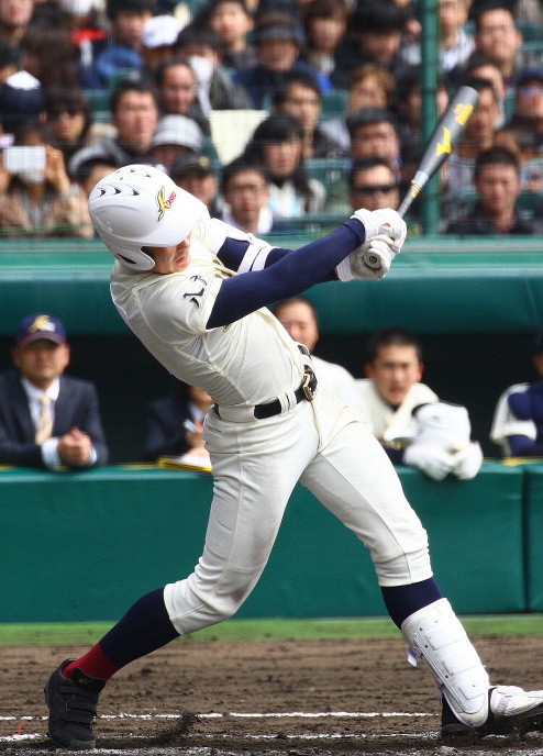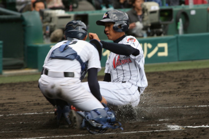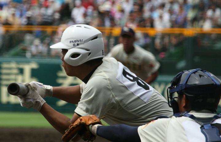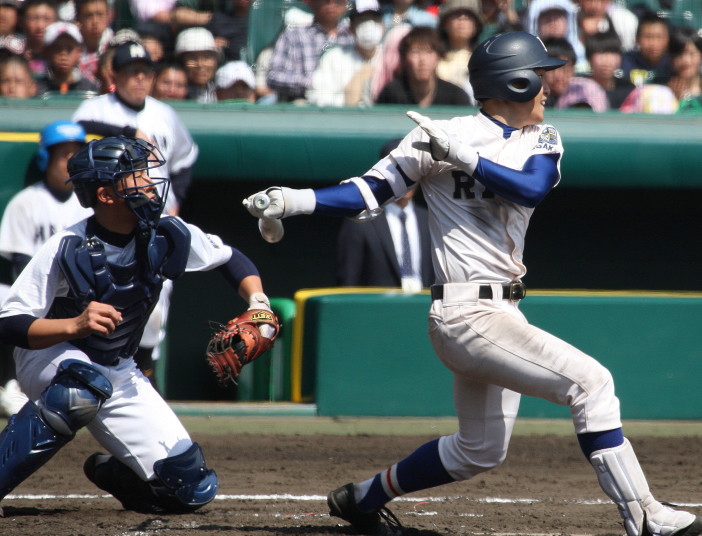 | 注目の四試合、実力伯仲のベスト8、その日の体調とちょっとしたゲーム配びの妙で勝敗が分かれる。 大阪桐蔭は初回高崎の機動力による無安打での1失点を喫したが、3回正随がセンターへタイムリー2点三塁打で逆転。 一度は同点に追いつかれたが、7回C中村のレフト越え2ランHRで勝ち越し、8回には中村がレフト前にダメ押しタイムリー。 |