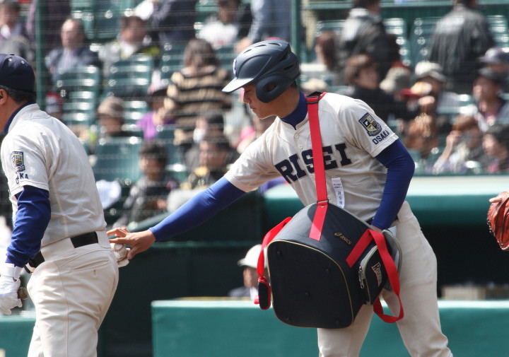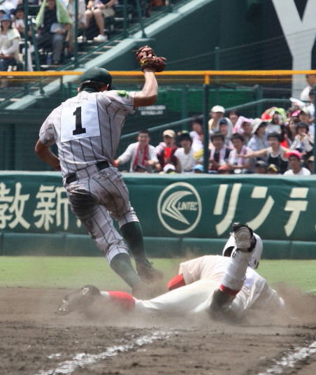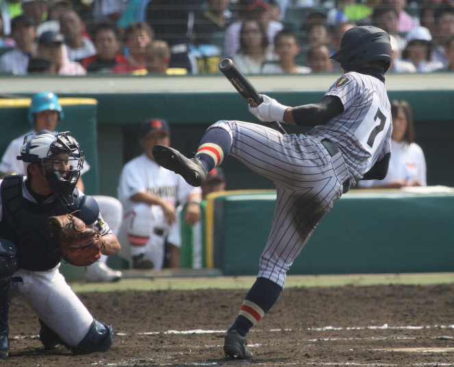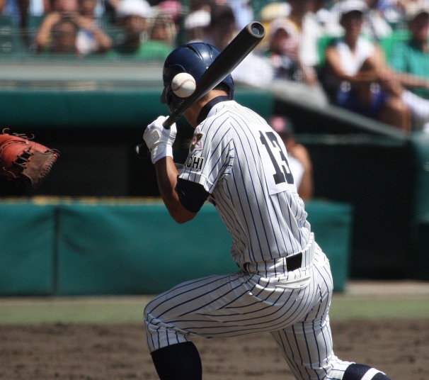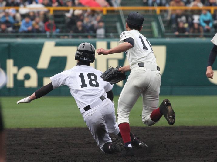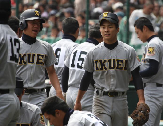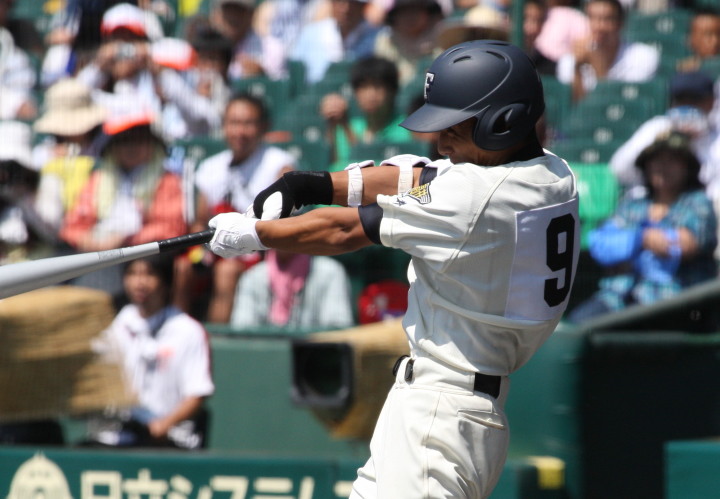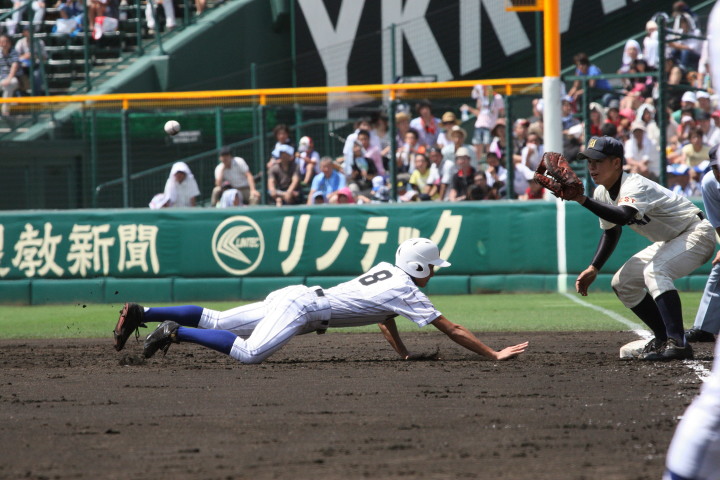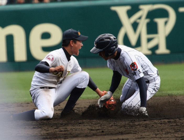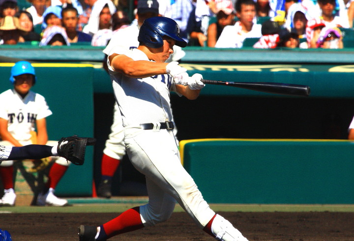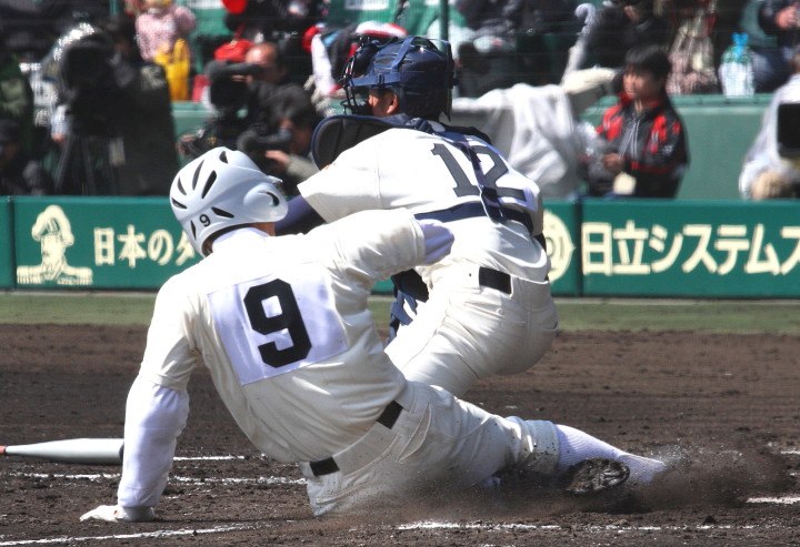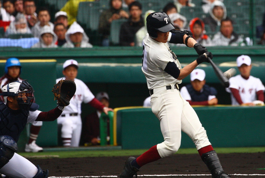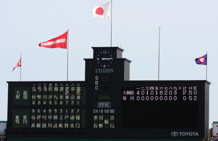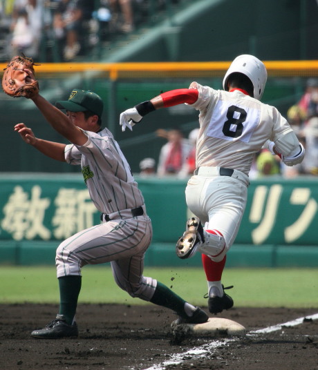 | 注目の四試合、実力伯仲のベスト8、その日の体調とちょっとしたゲーム配びの妙で勝敗が分かれる。 大阪桐蔭は初回高崎の機動力による無安打での1失点を喫したが、3回正随がセンターへタイムリー2点三塁打で逆転。 一度は同点に追いつかれたが、7回C中村のレフト越え2ランHRで勝ち越し、8回には中村がレフト前にダメ押しタイムリー。 |