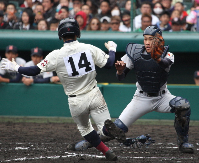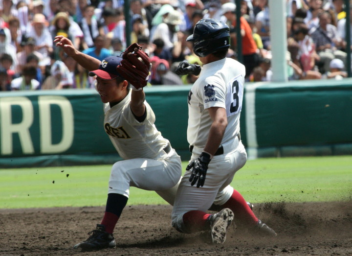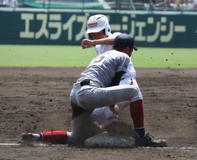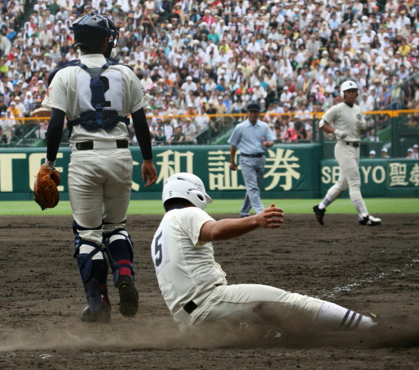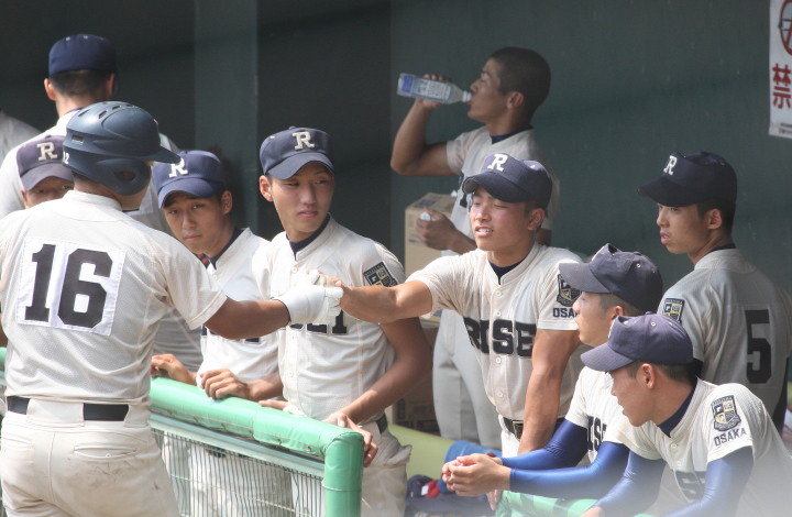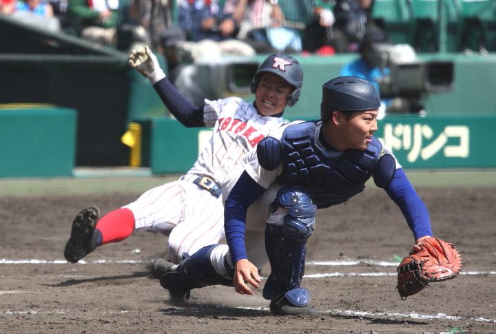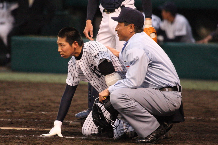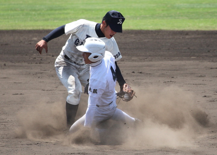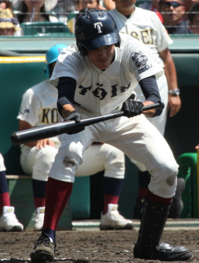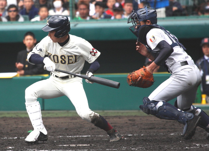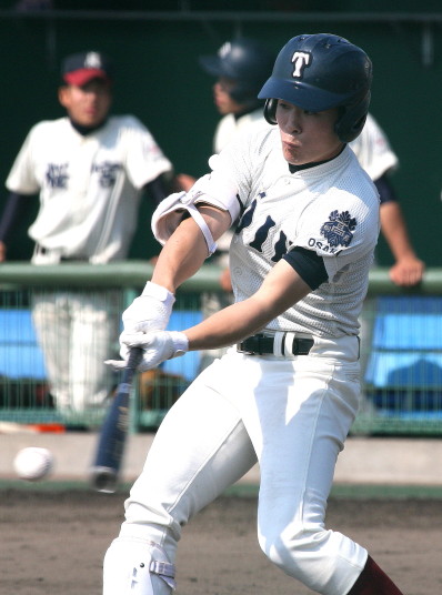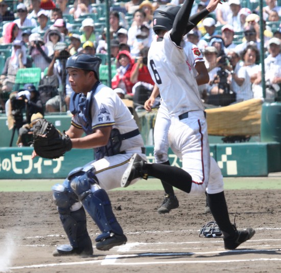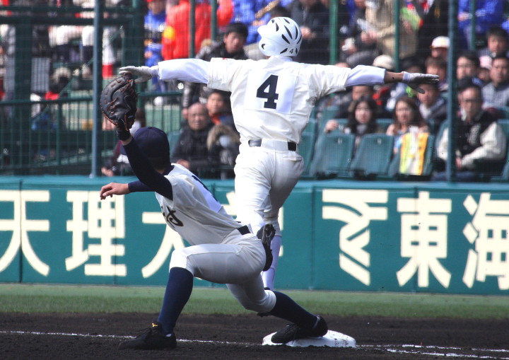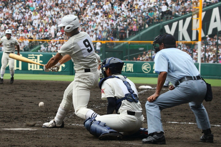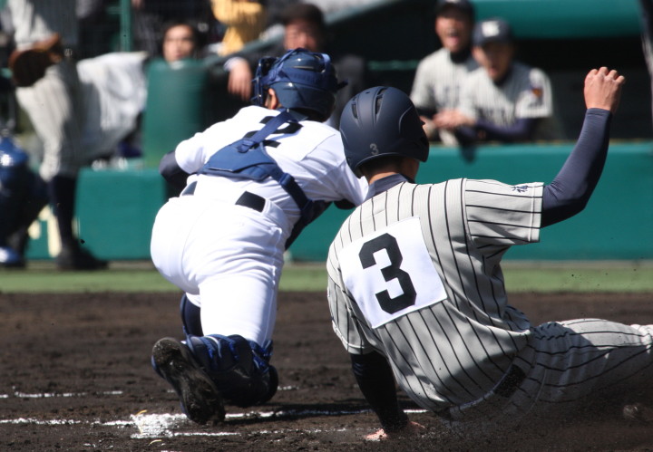 | 注目の四試合、実力伯仲のベスト8、その日の体調とちょっとしたゲーム配びの妙で勝敗が分かれる。 大阪桐蔭は初回高崎の機動力による無安打での1失点を喫したが、3回正随がセンターへタイムリー2点三塁打で逆転。 一度は同点に追いつかれたが、7回C中村のレフト越え2ランHRで勝ち越し、8回には中村がレフト前にダメ押しタイムリー。 |