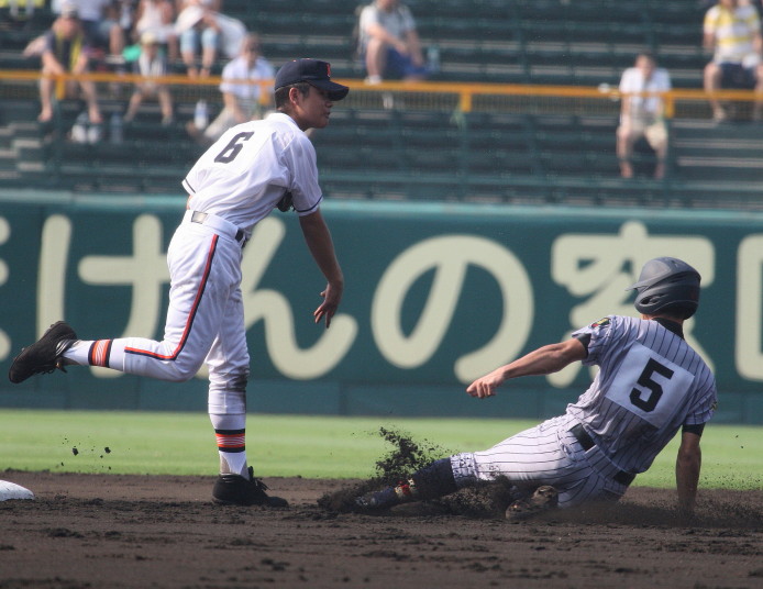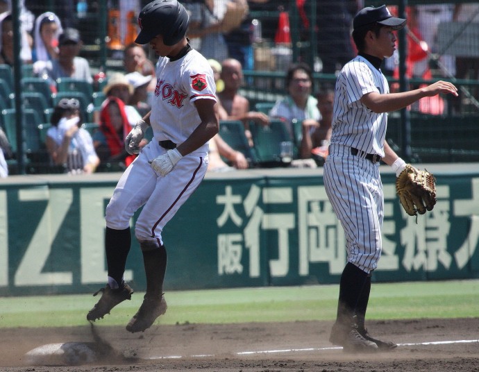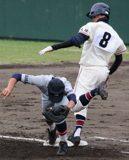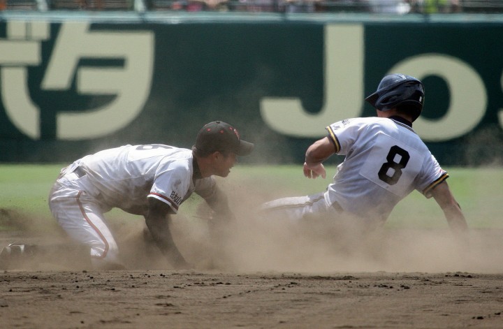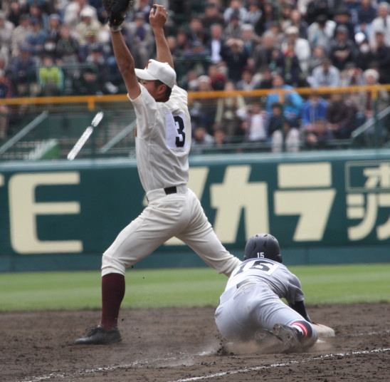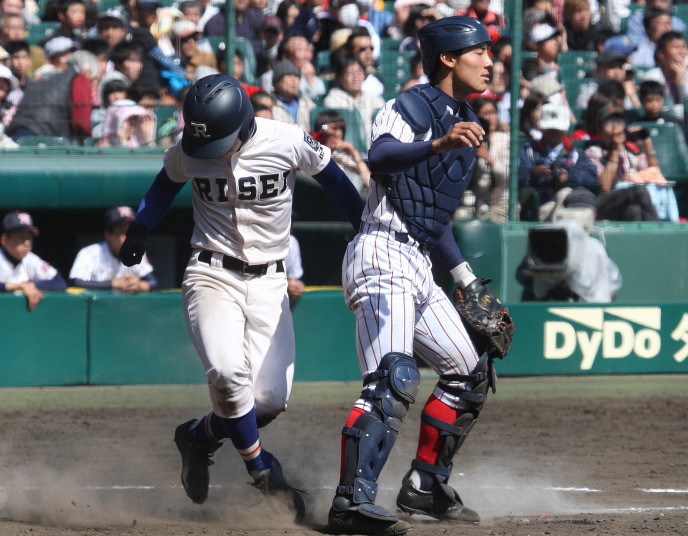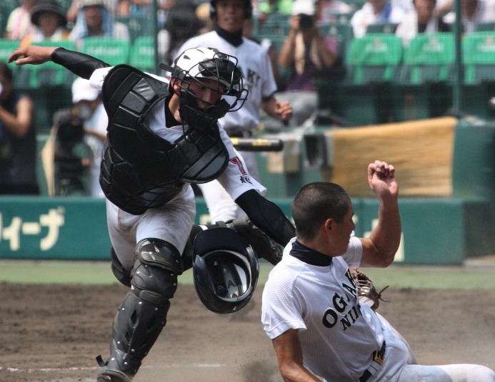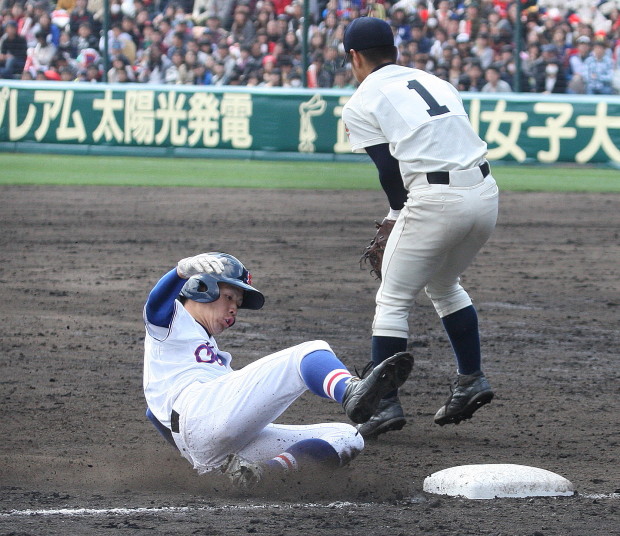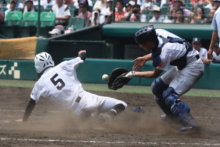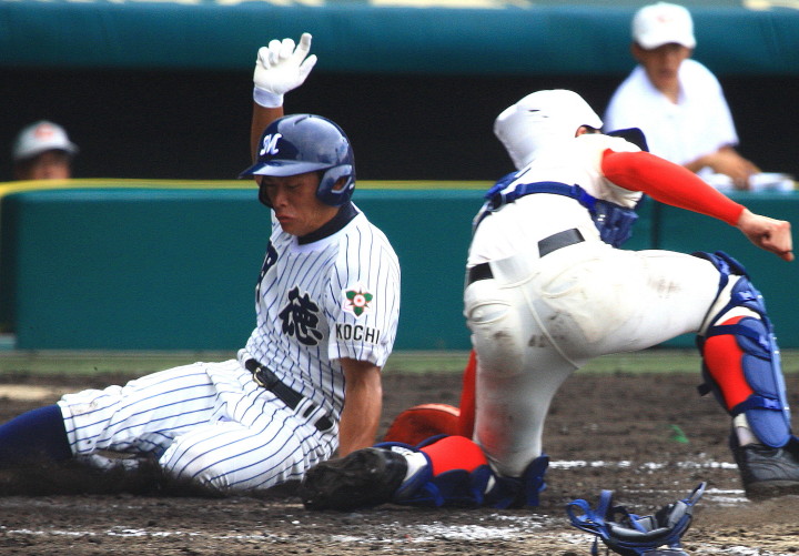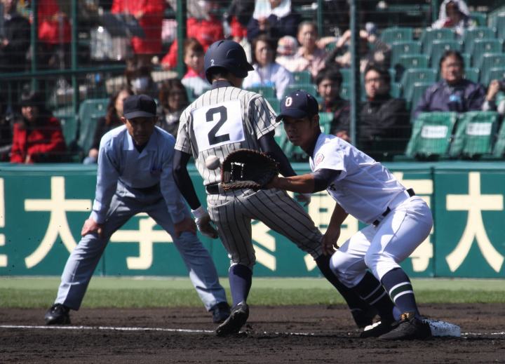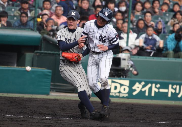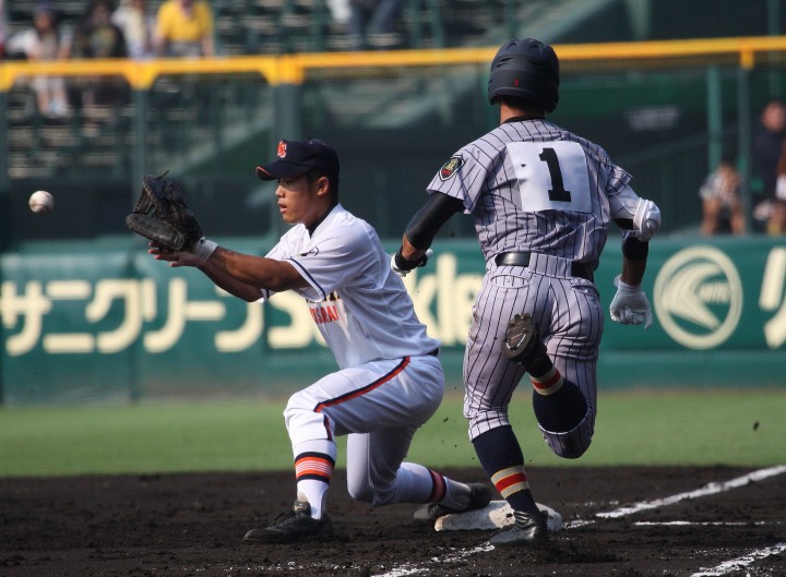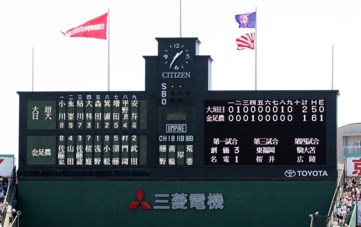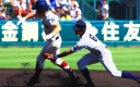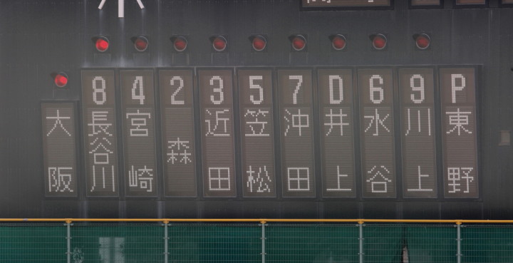 | 注目の四試合、実力伯仲のベスト8、その日の体調とちょっとしたゲーム配びの妙で勝敗が分かれる。 大阪桐蔭は初回高崎の機動力による無安打での1失点を喫したが、3回正随がセンターへタイムリー2点三塁打で逆転。 一度は同点に追いつかれたが、7回C中村のレフト越え2ランHRで勝ち越し、8回には中村がレフト前にダメ押しタイムリー。 |