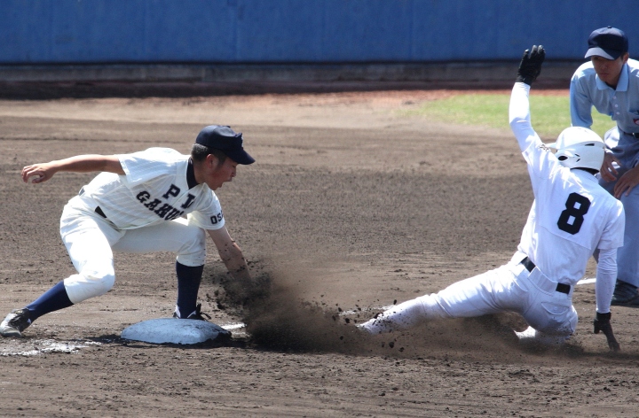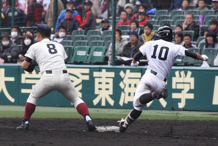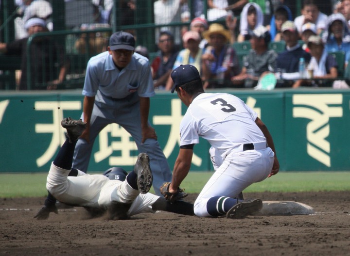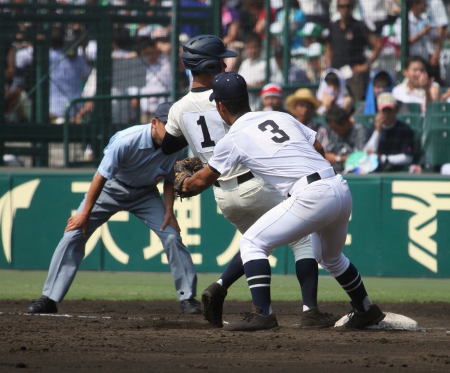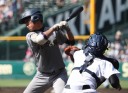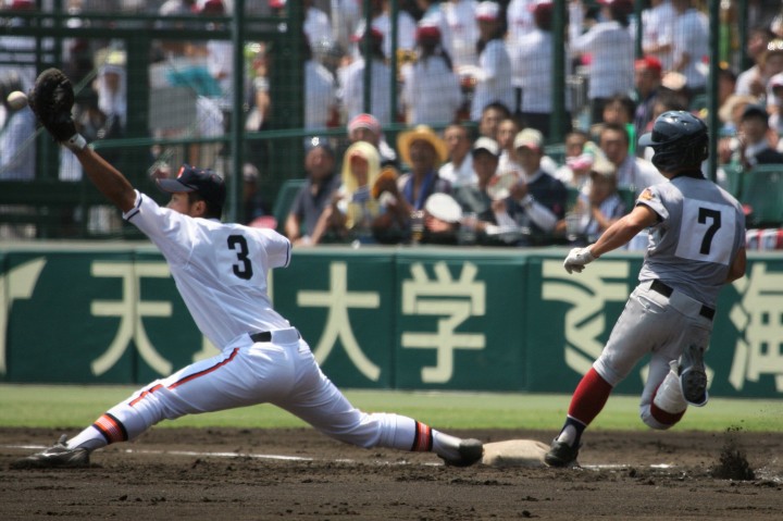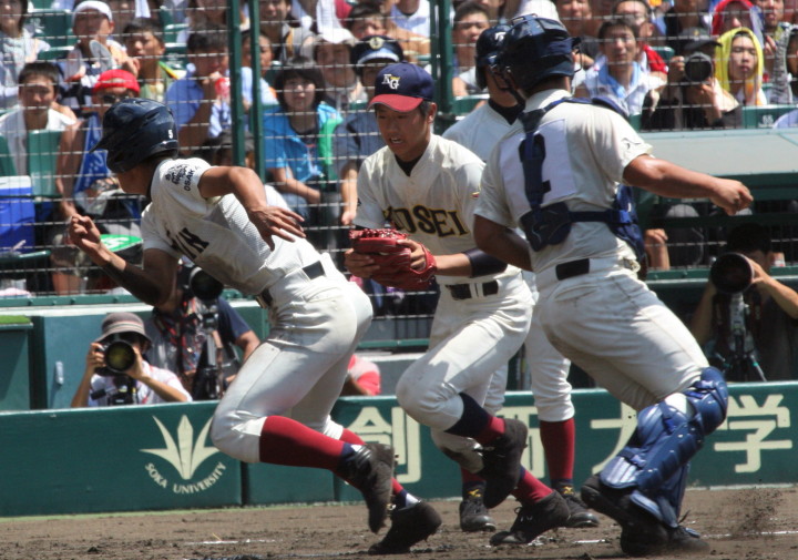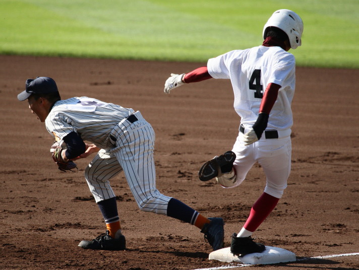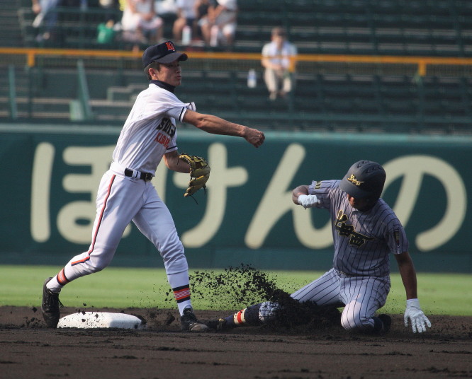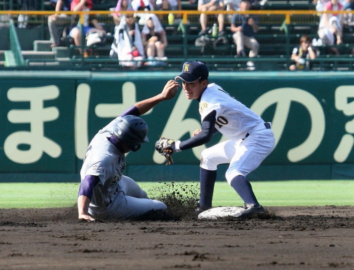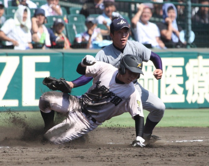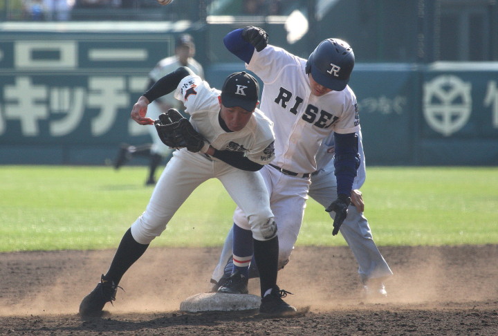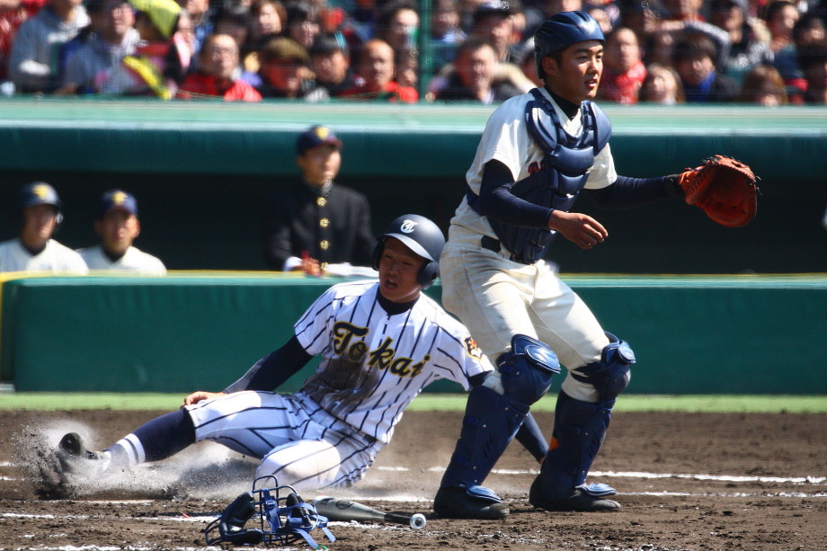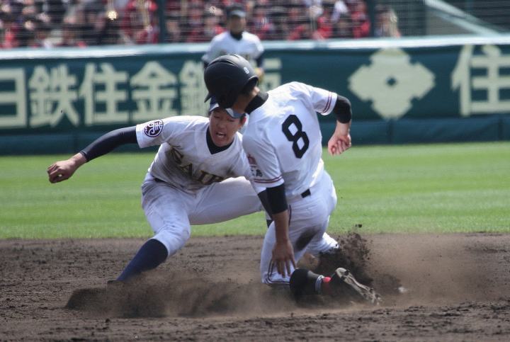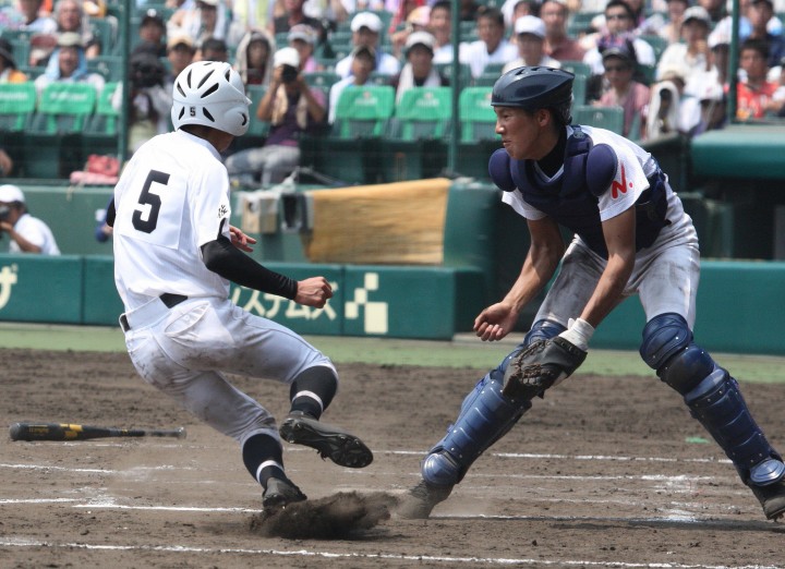 | 注目の四試合、実力伯仲のベスト8、その日の体調とちょっとしたゲーム配びの妙で勝敗が分かれる。 大阪桐蔭は初回高崎の機動力による無安打での1失点を喫したが、3回正随がセンターへタイムリー2点三塁打で逆転。 一度は同点に追いつかれたが、7回C中村のレフト越え2ランHRで勝ち越し、8回には中村がレフト前にダメ押しタイムリー。 |