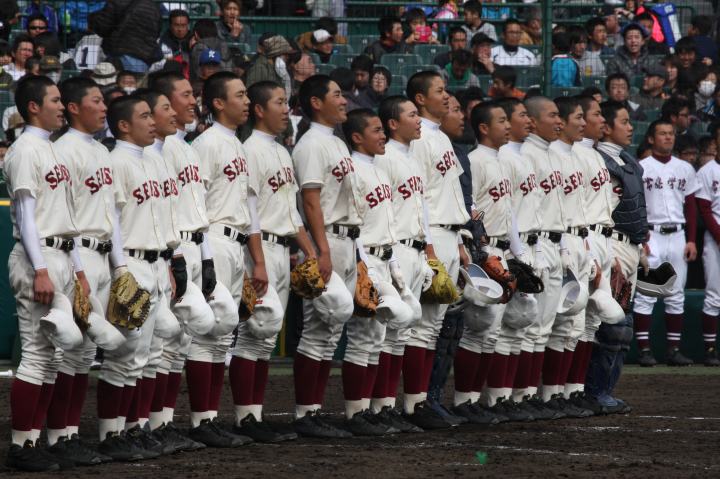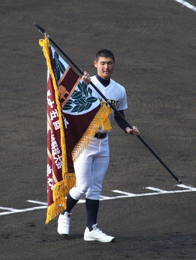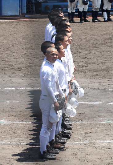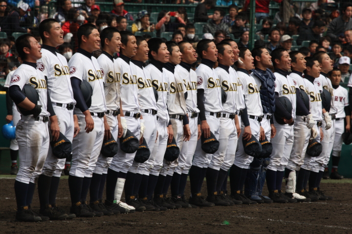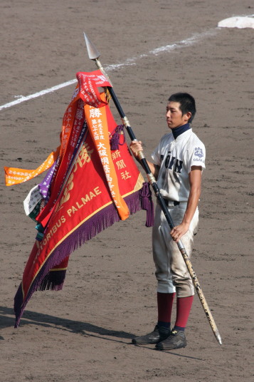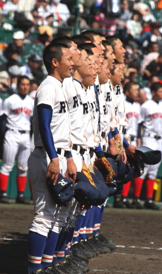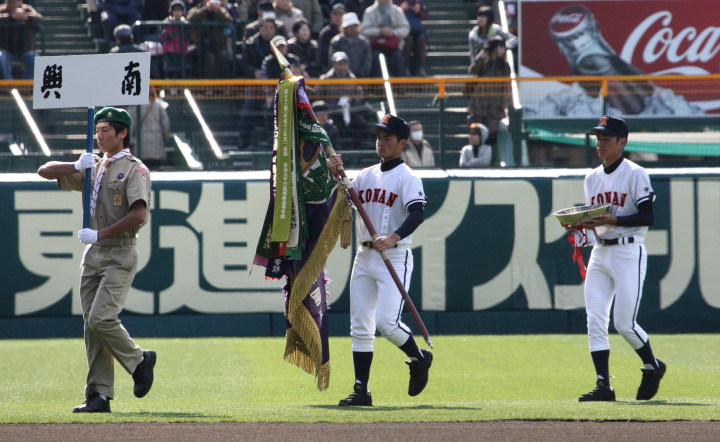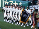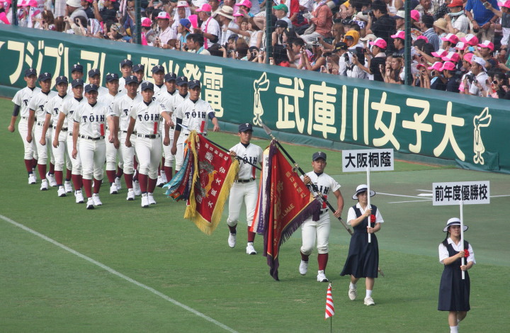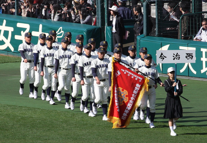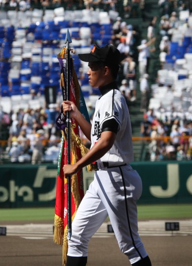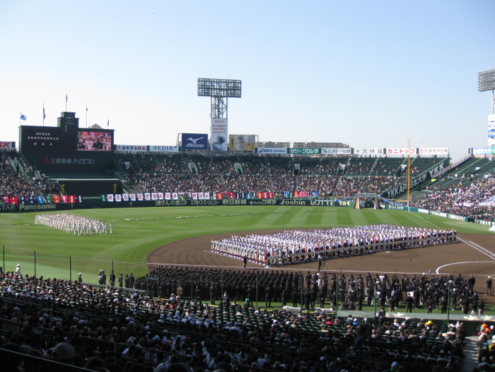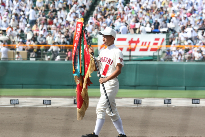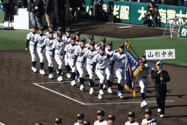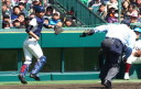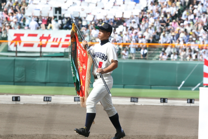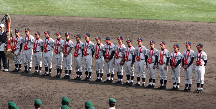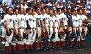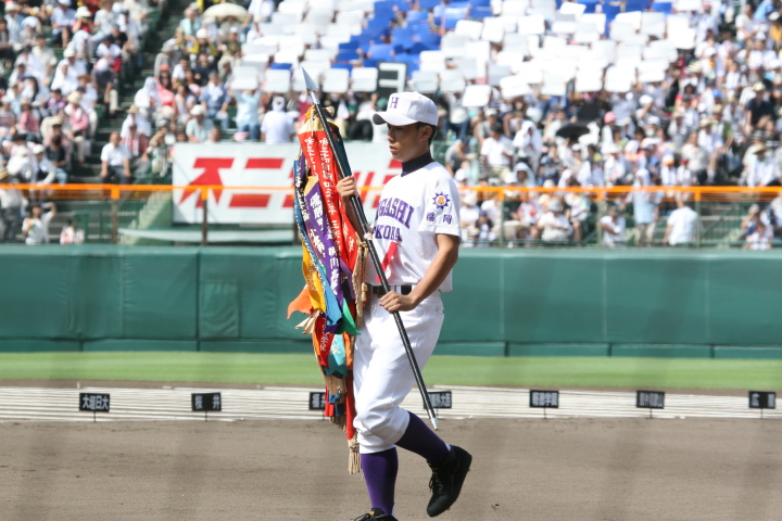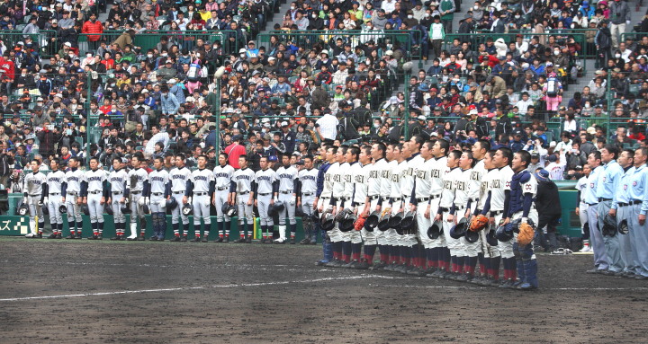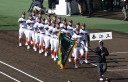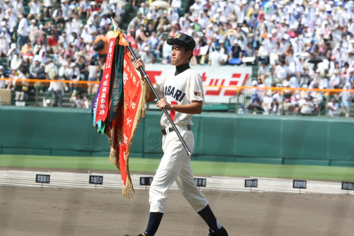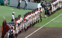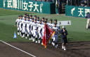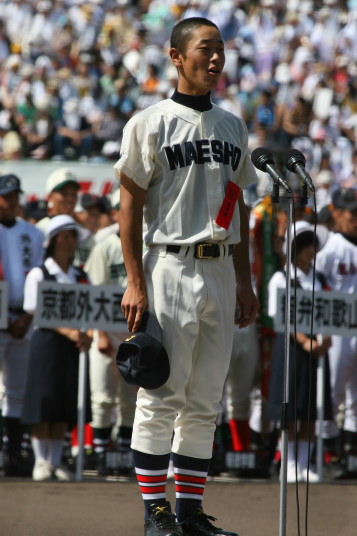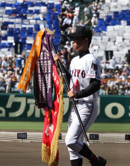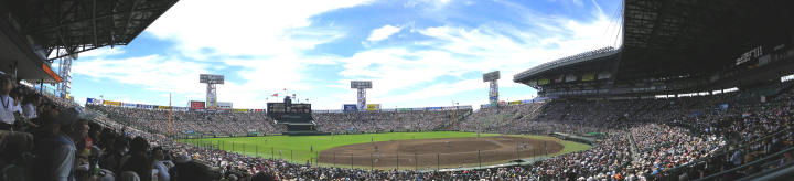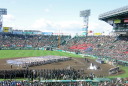 | 開幕日に相応しい好天気の中、32校高校球児の入場行進に続いて、 石巻工キャプテン阿部の素晴らしい選手宣誓に満員のスタンドから大きな拍手が沸き上がる。 三試合目はいきなりの好カードは、大阪桐蔭の完勝に終わった。 |