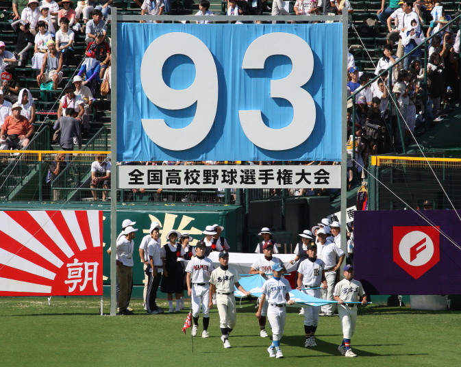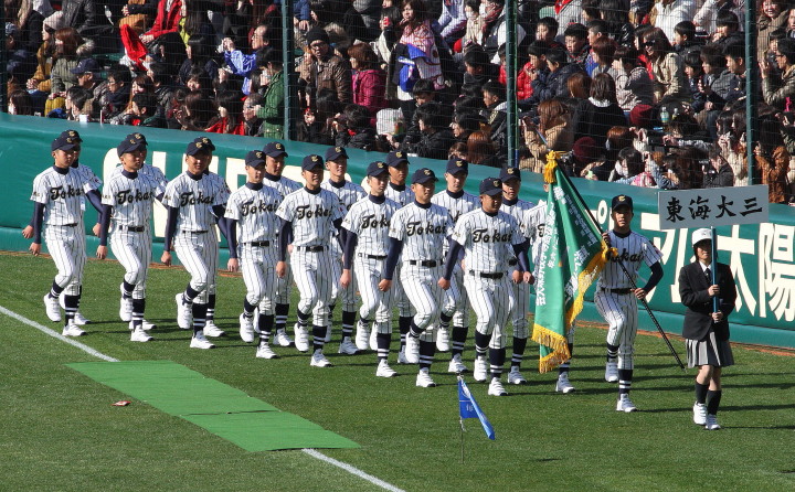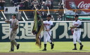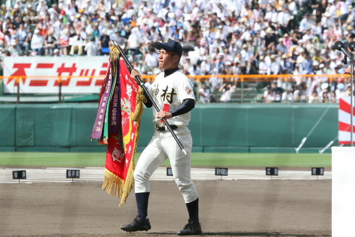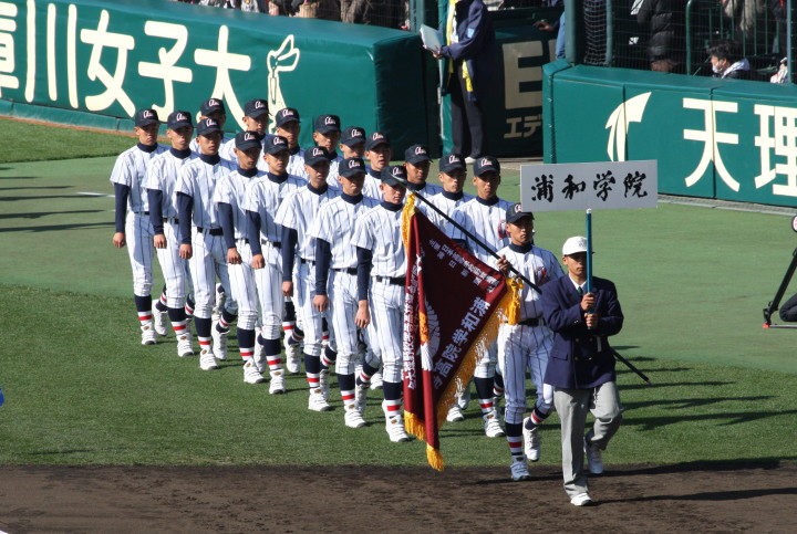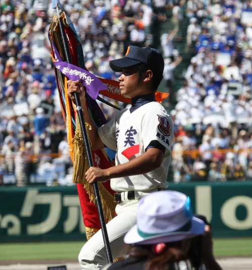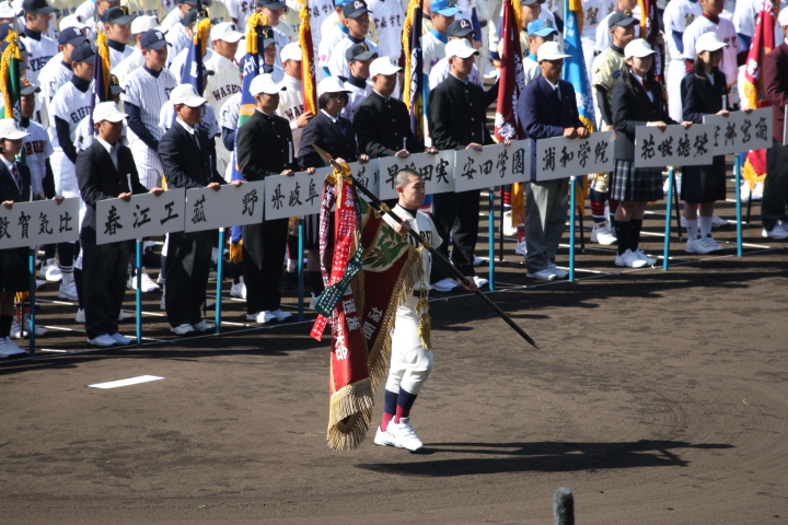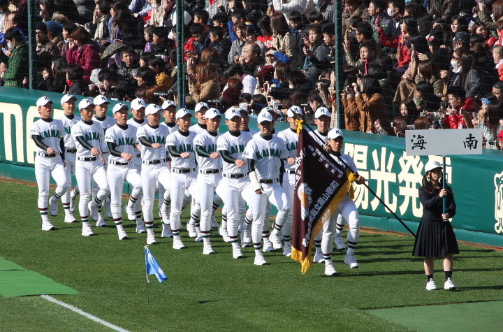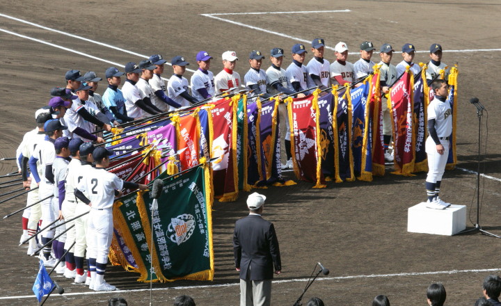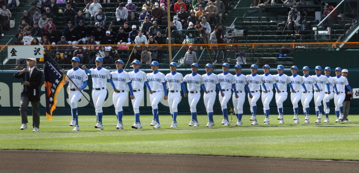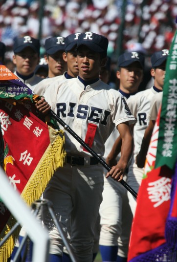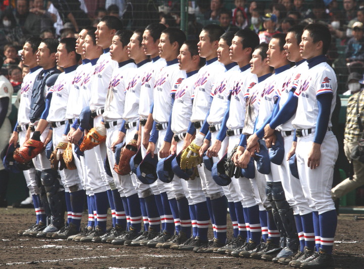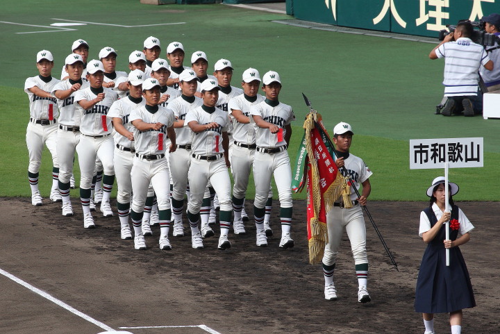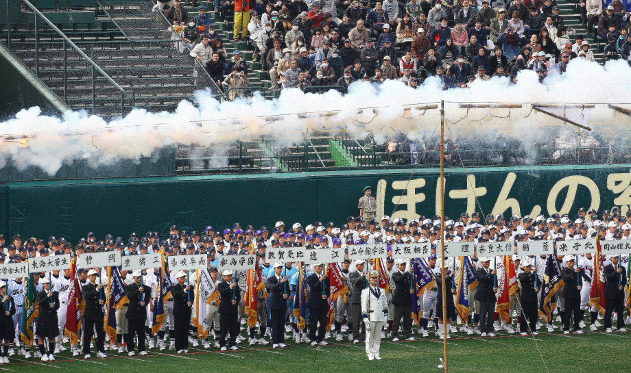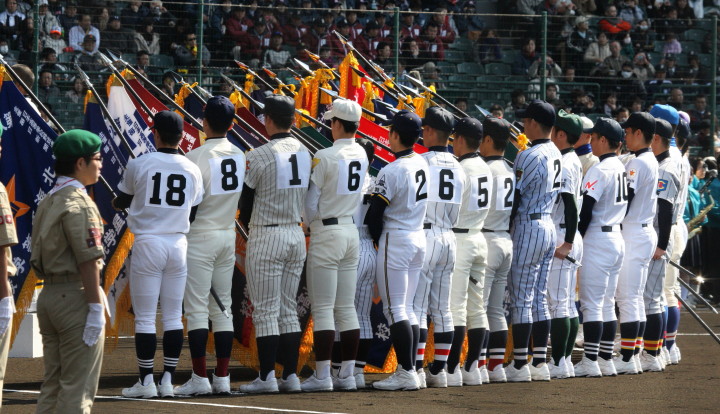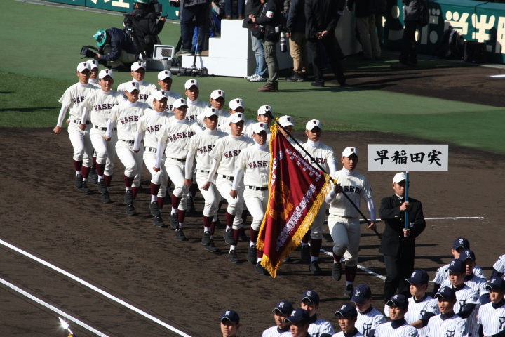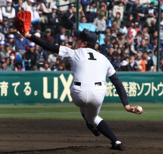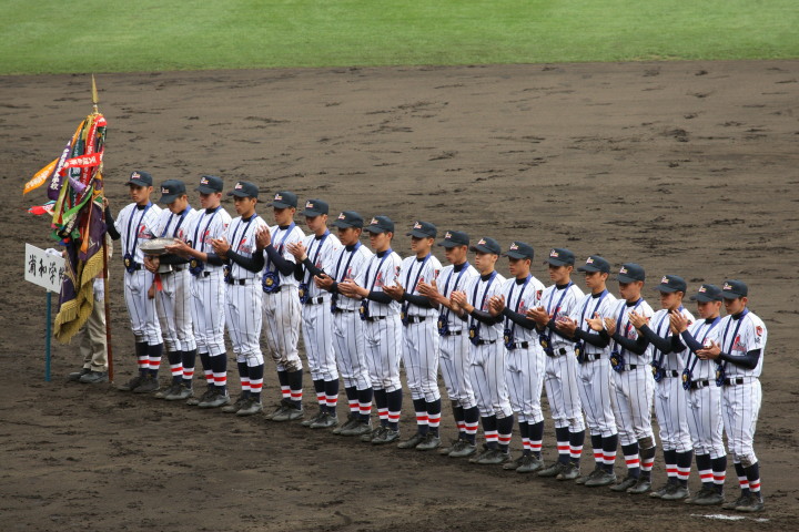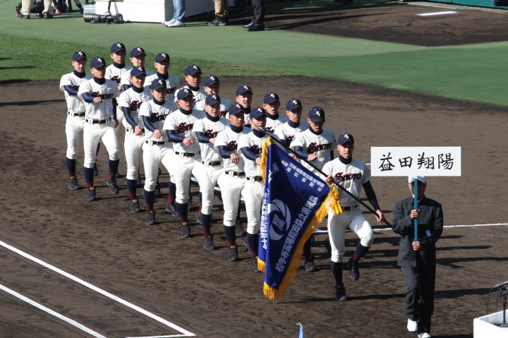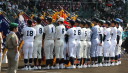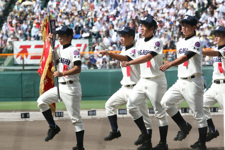 | 開幕日に相応しい好天気の中、32校高校球児の入場行進に続いて、 石巻工キャプテン阿部の素晴らしい選手宣誓に満員のスタンドから大きな拍手が沸き上がる。 三試合目はいきなりの好カードは、大阪桐蔭の完勝に終わった。 |