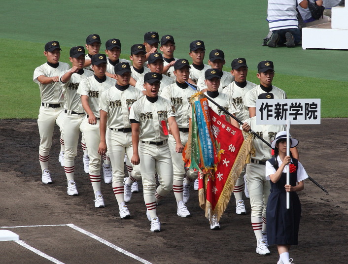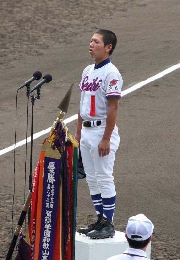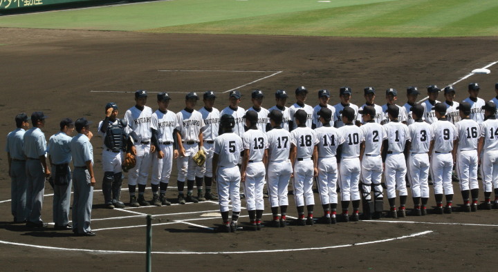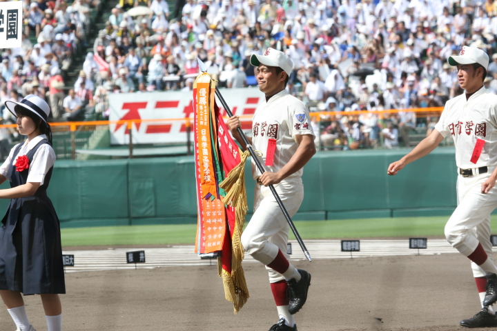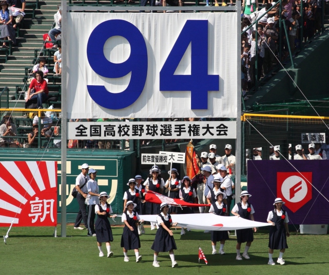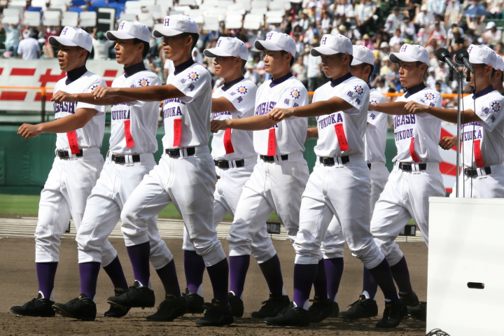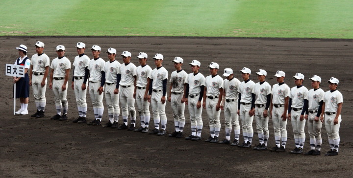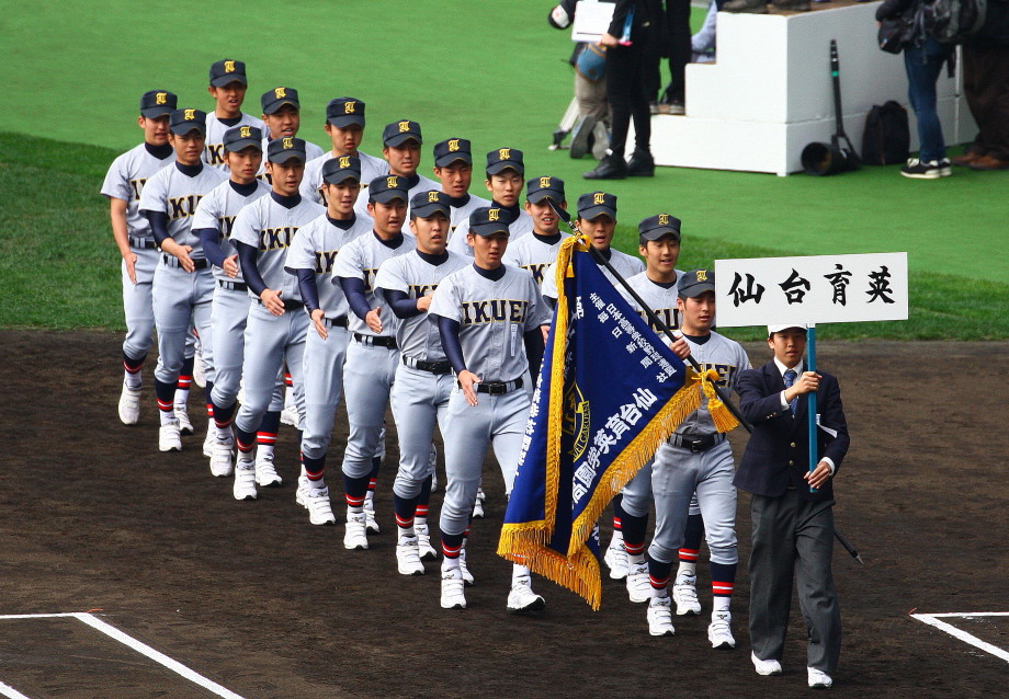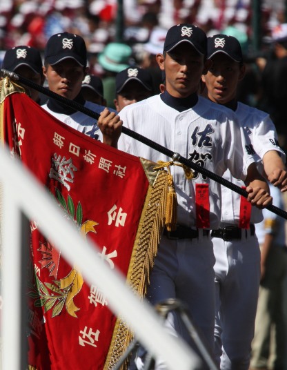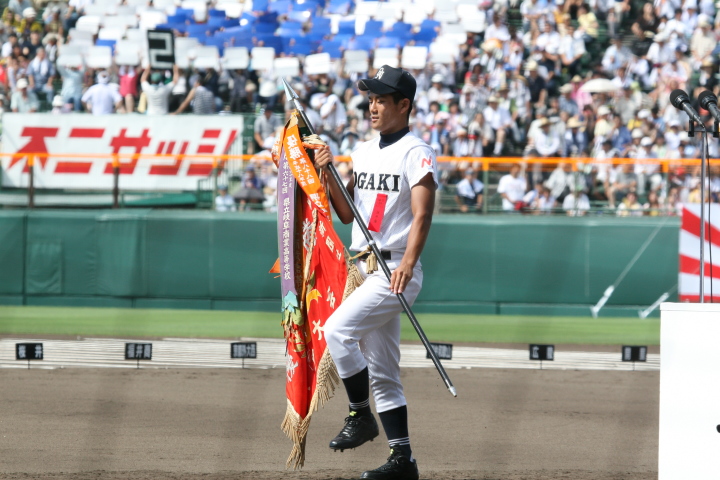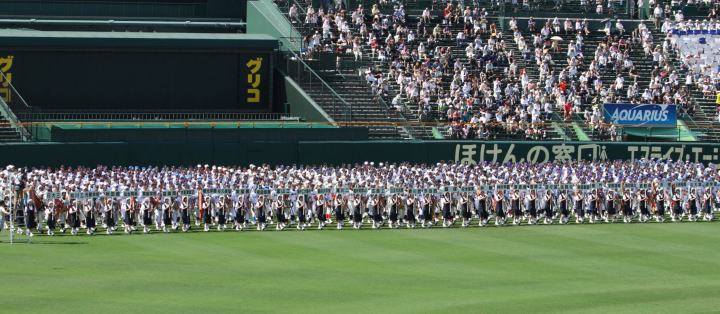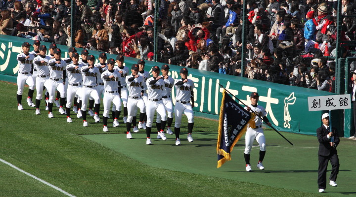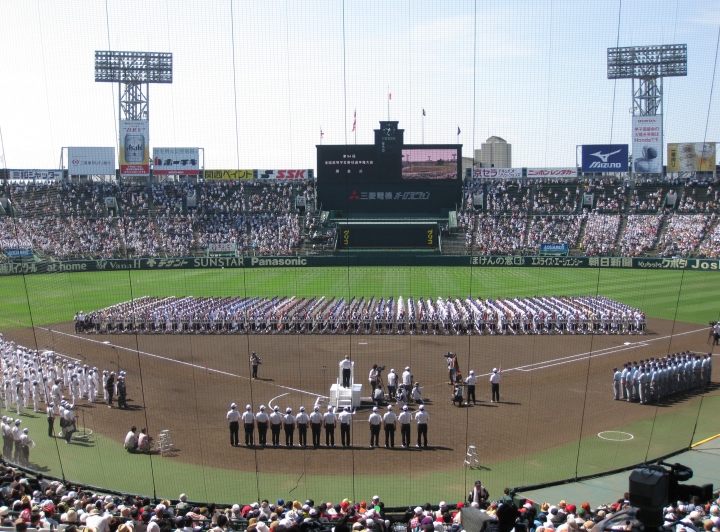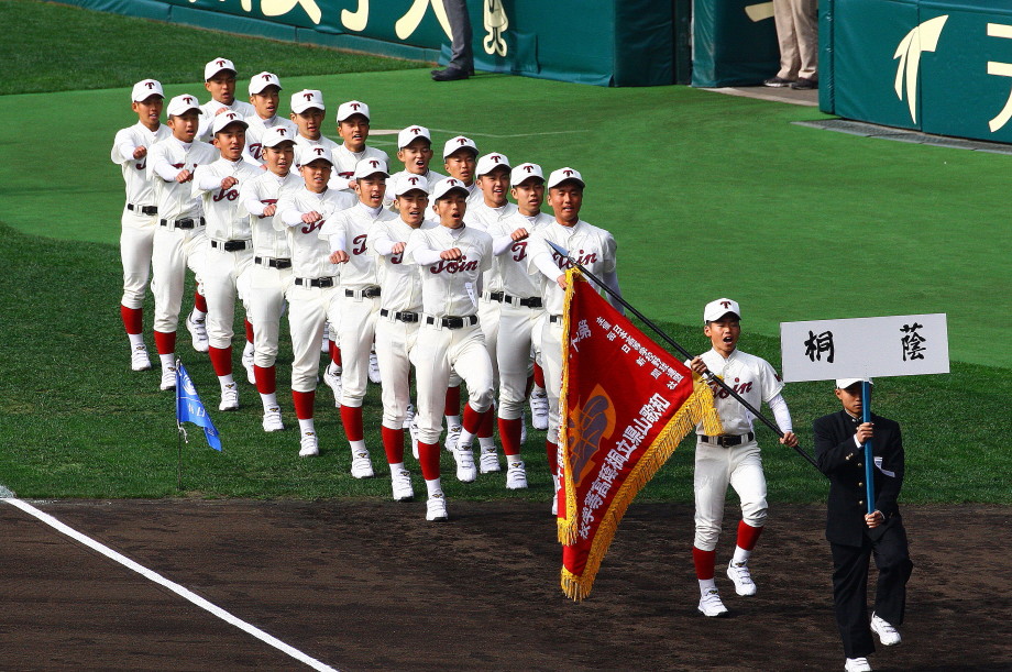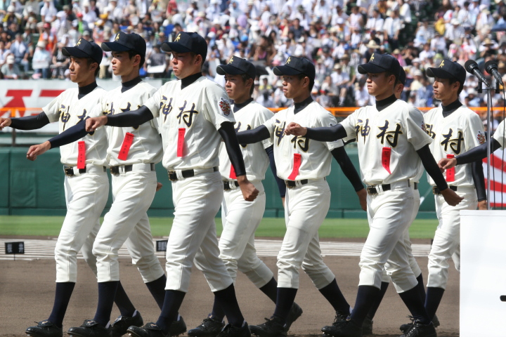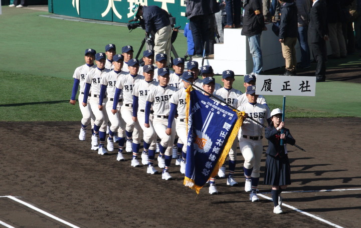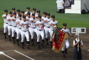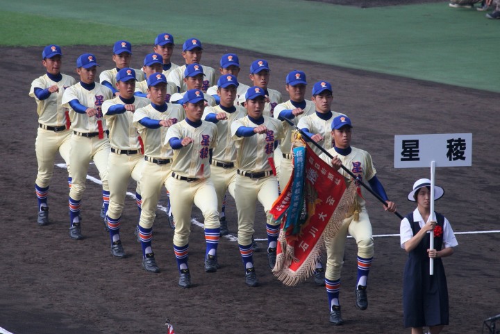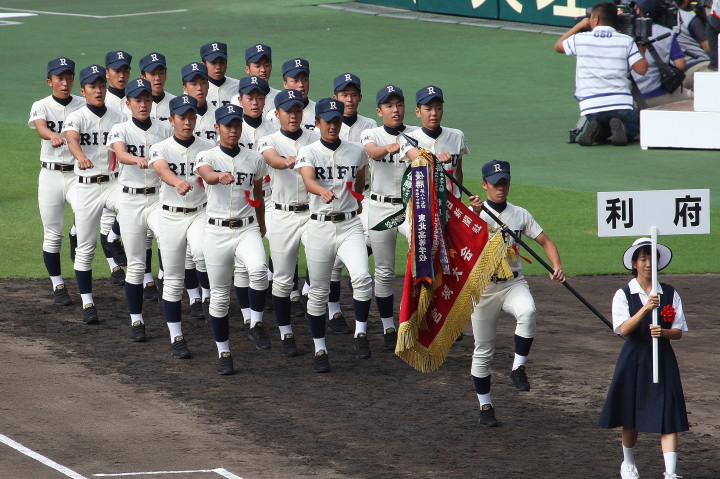 | 開幕日に相応しい好天気の中、32校高校球児の入場行進に続いて、 石巻工キャプテン阿部の素晴らしい選手宣誓に満員のスタンドから大きな拍手が沸き上がる。 三試合目はいきなりの好カードは、大阪桐蔭の完勝に終わった。 |