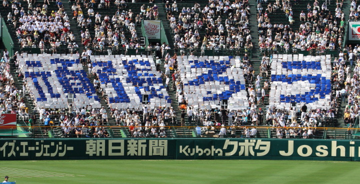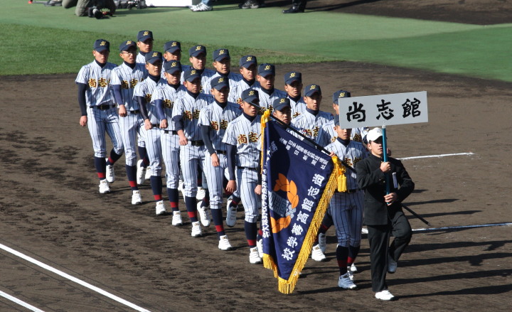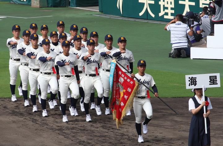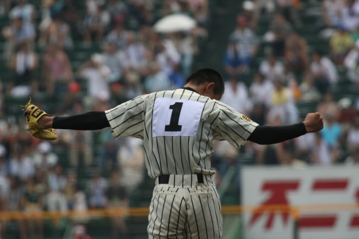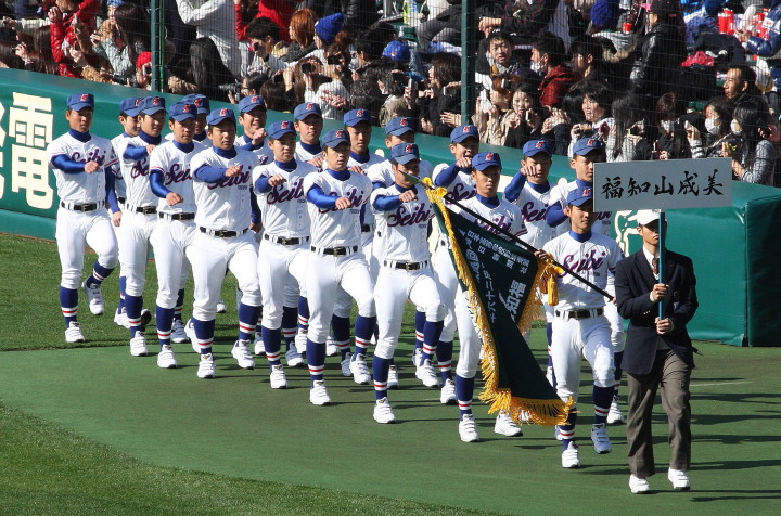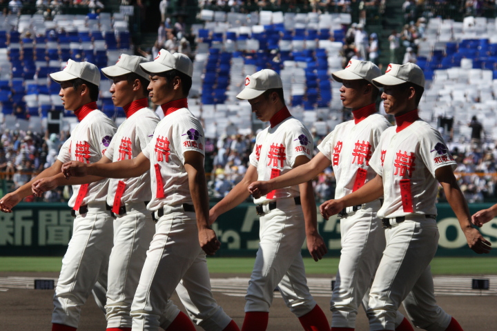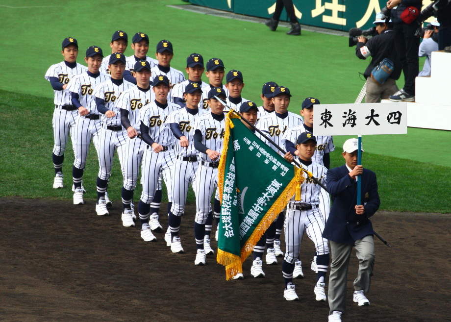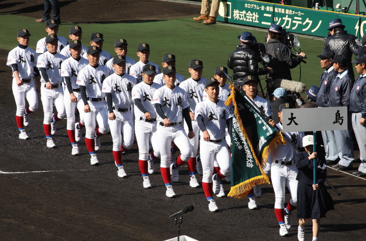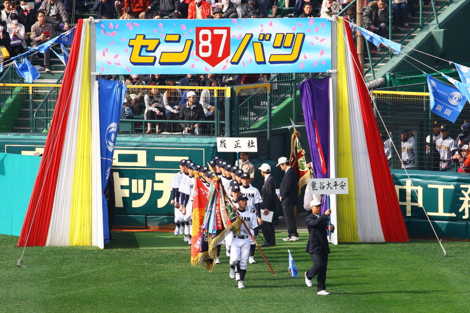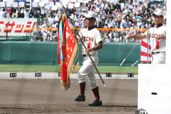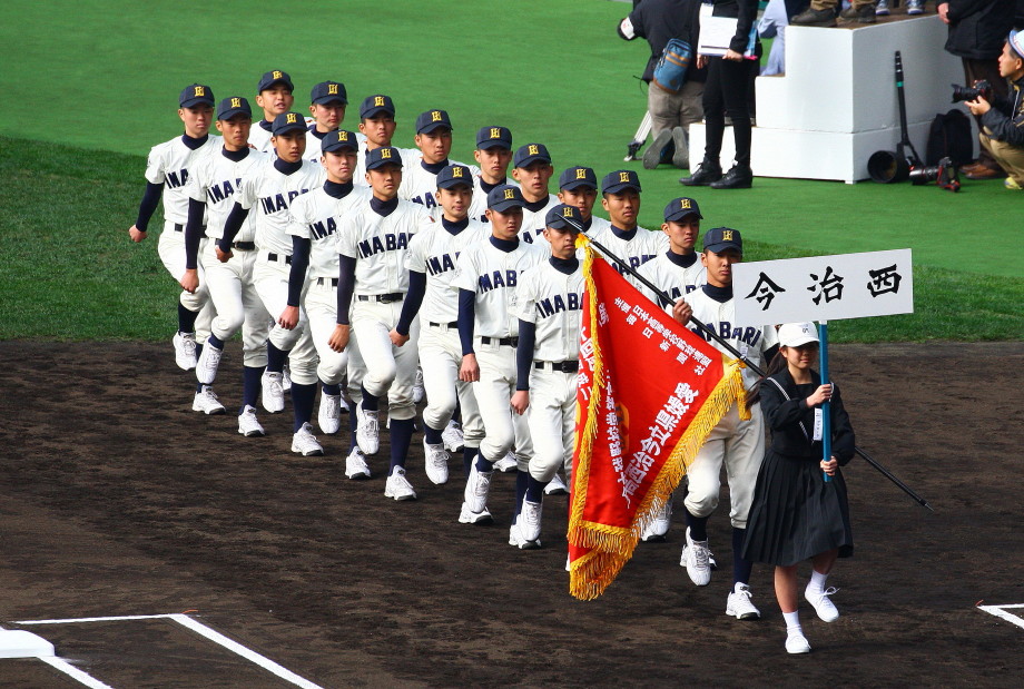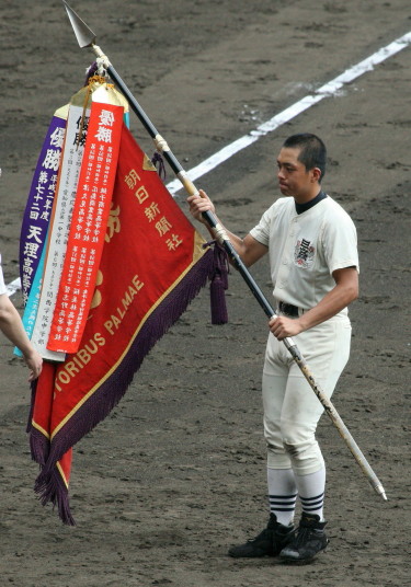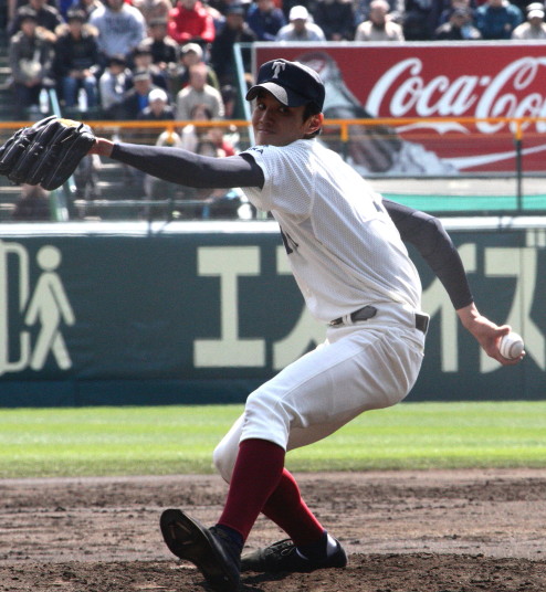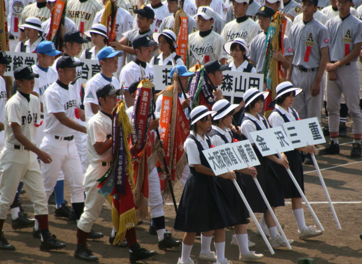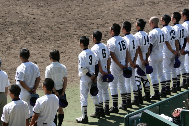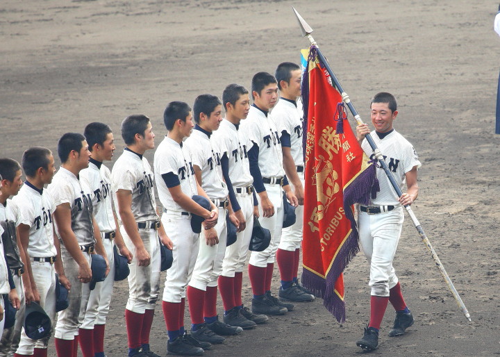 | 開幕日に相応しい好天気の中、32校高校球児の入場行進に続いて、 石巻工キャプテン阿部の素晴らしい選手宣誓に満員のスタンドから大きな拍手が沸き上がる。 三試合目はいきなりの好カードは、大阪桐蔭の完勝に終わった。 |