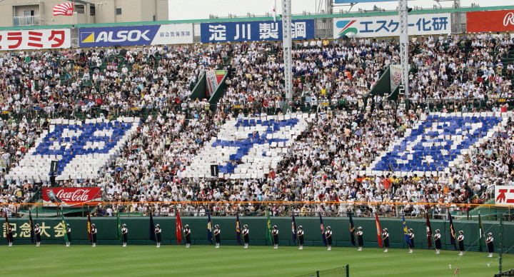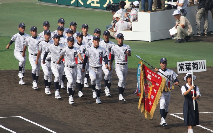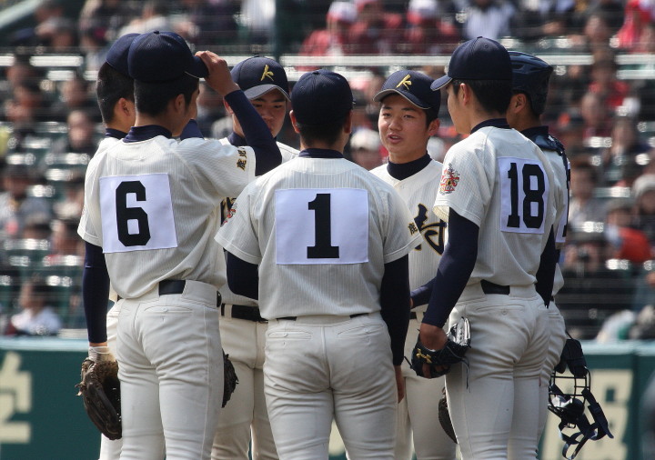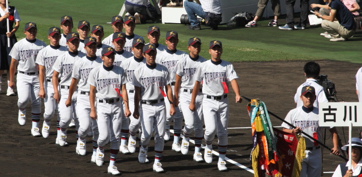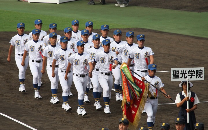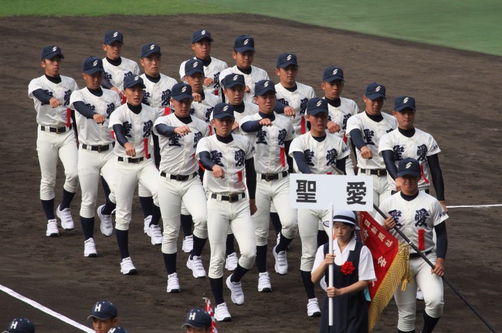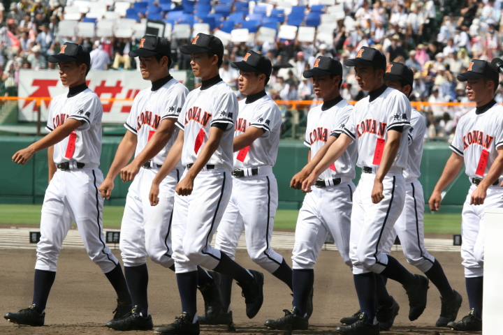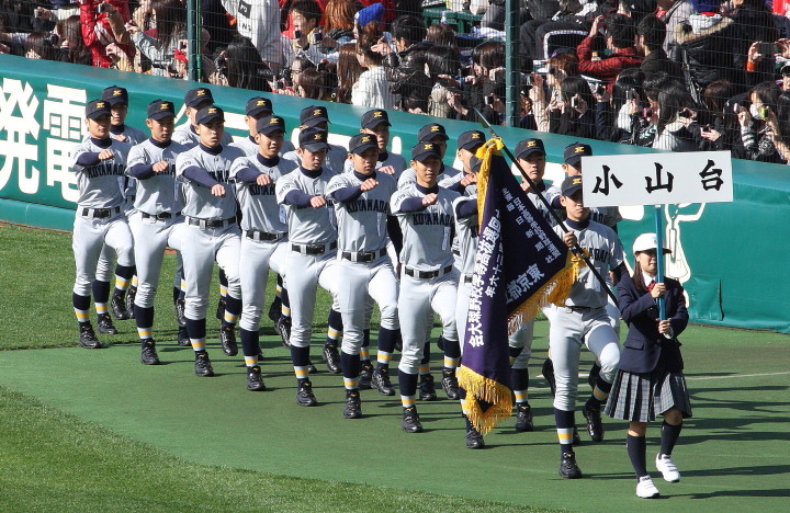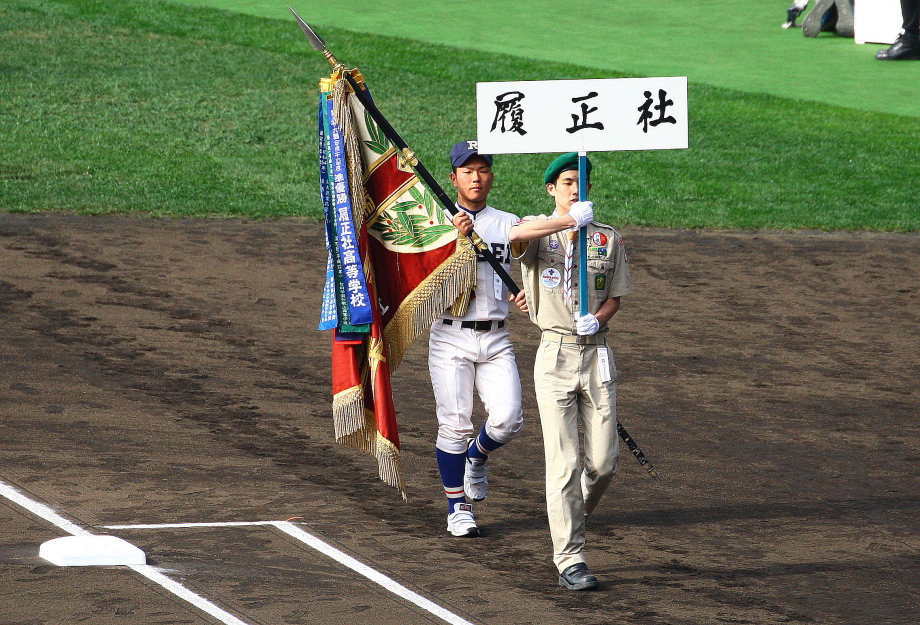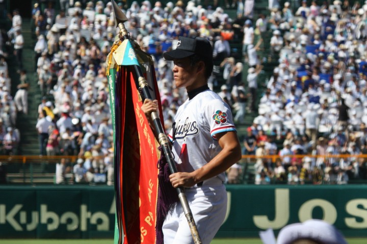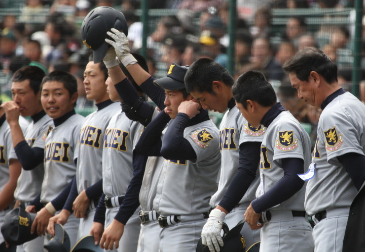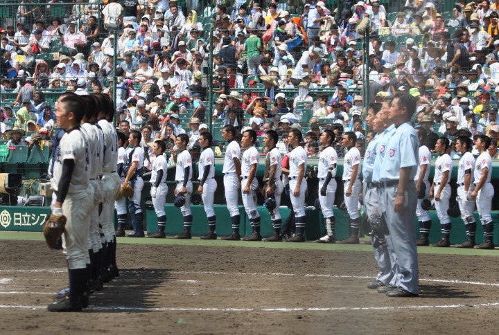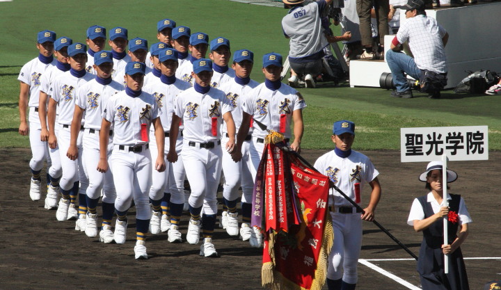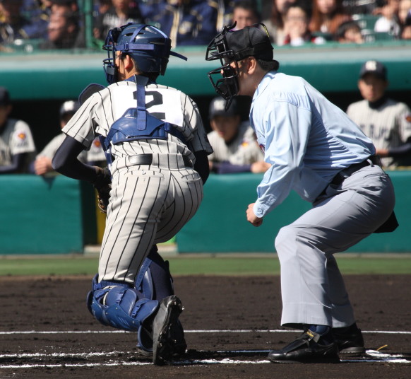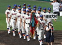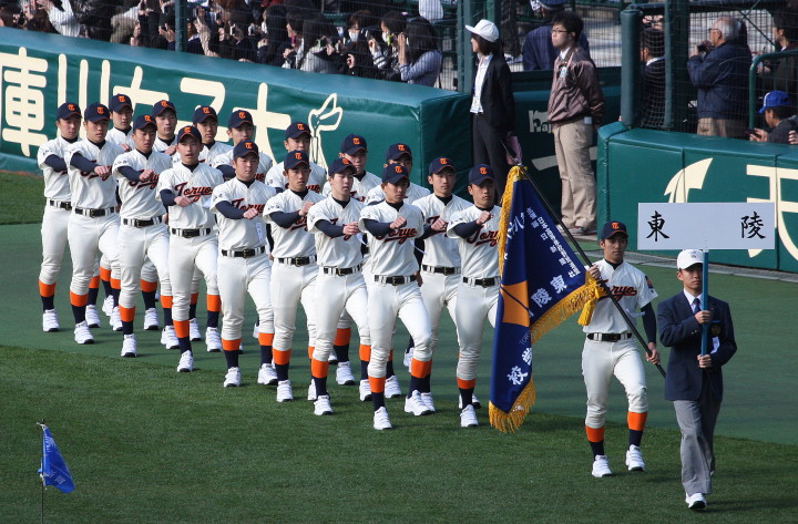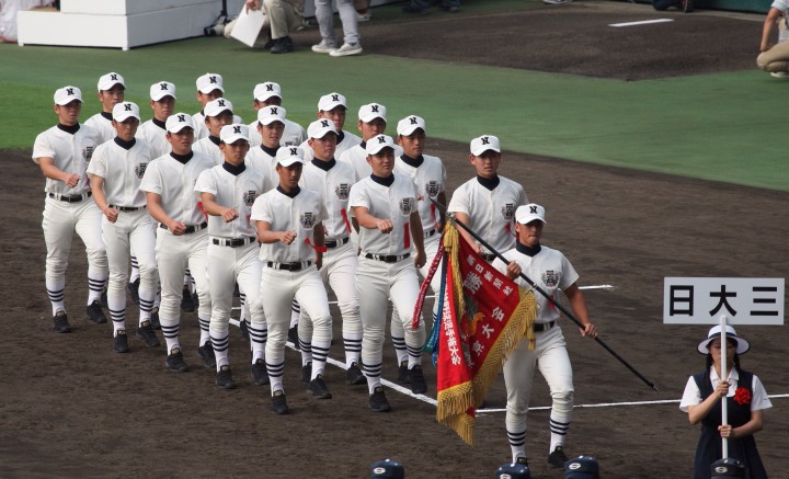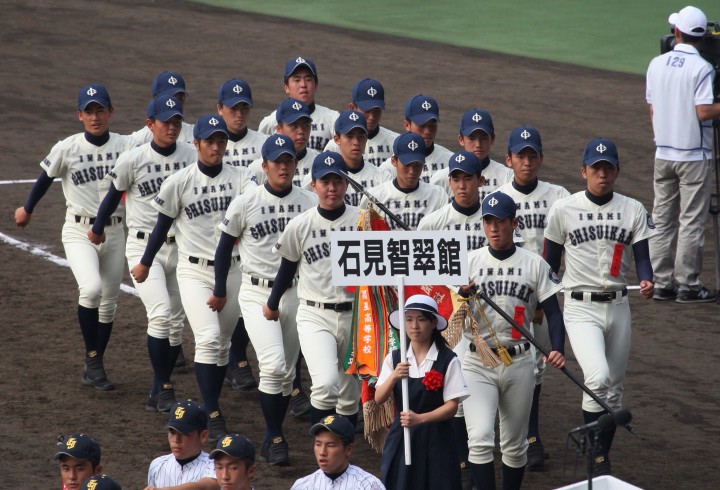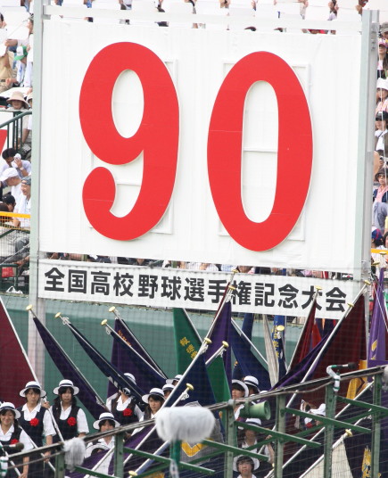 | 開幕日に相応しい好天気の中、32校高校球児の入場行進に続いて、 石巻工キャプテン阿部の素晴らしい選手宣誓に満員のスタンドから大きな拍手が沸き上がる。 三試合目はいきなりの好カードは、大阪桐蔭の完勝に終わった。 |