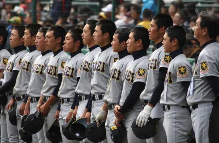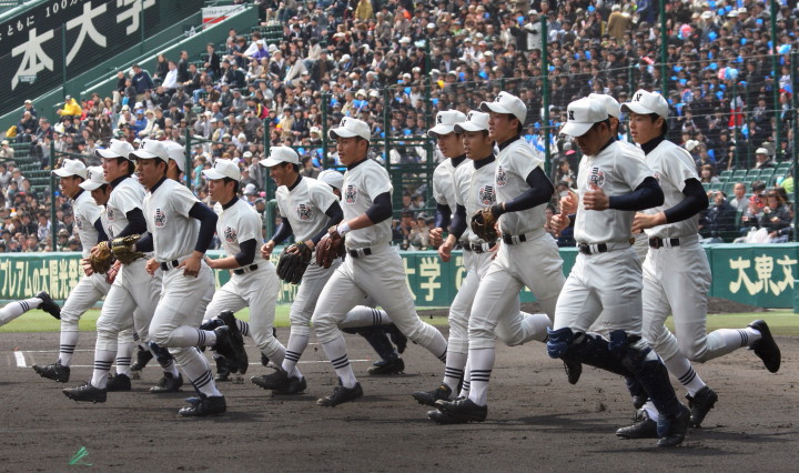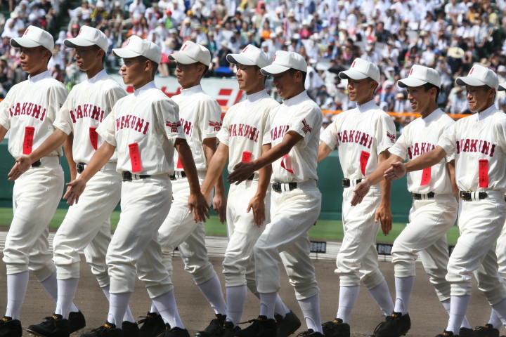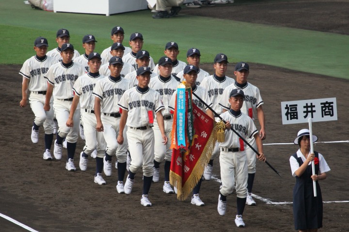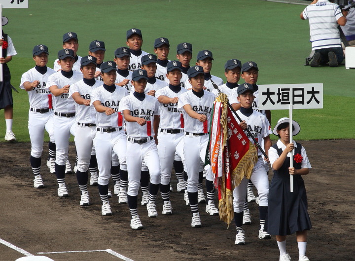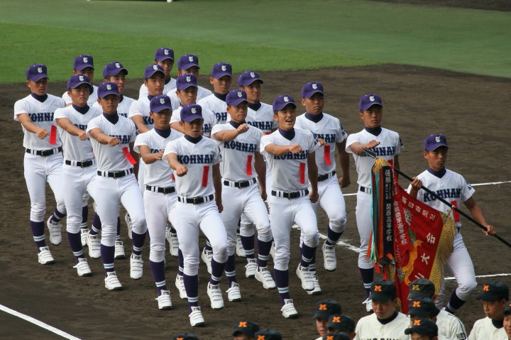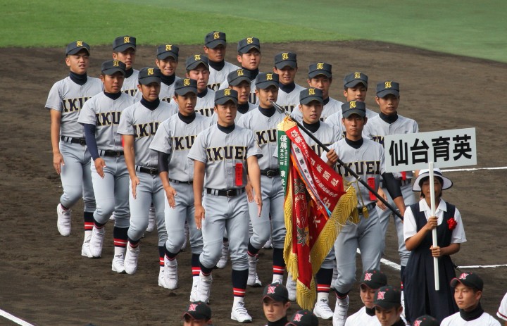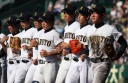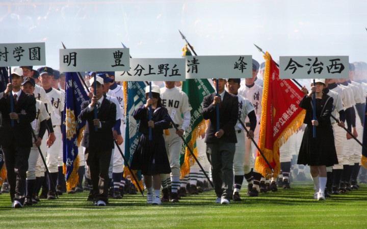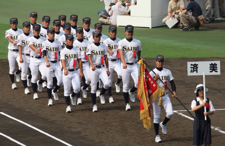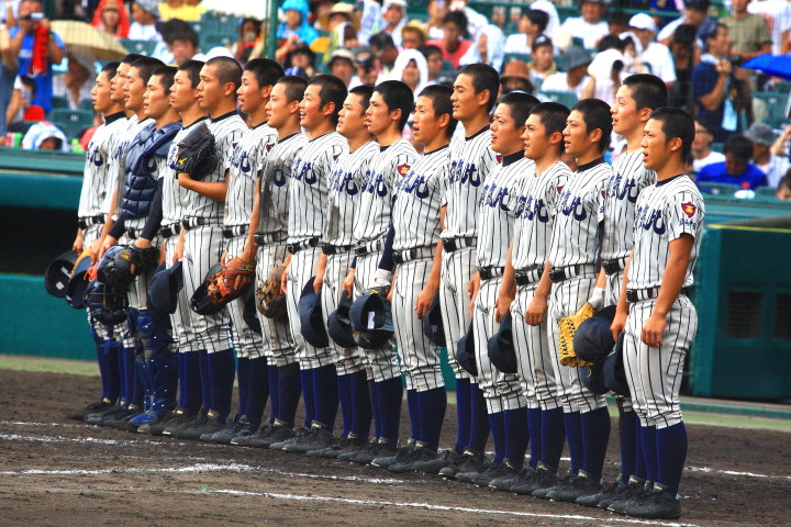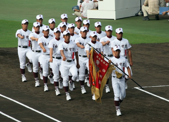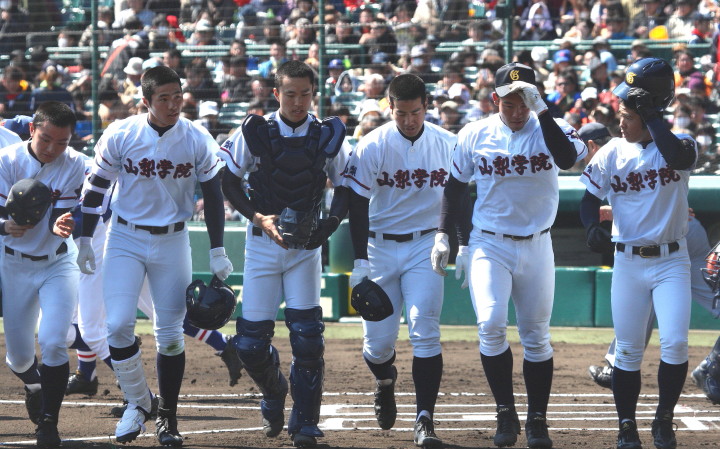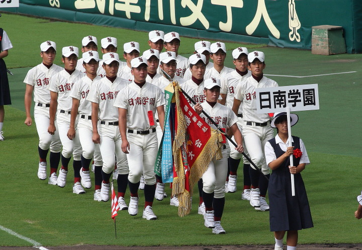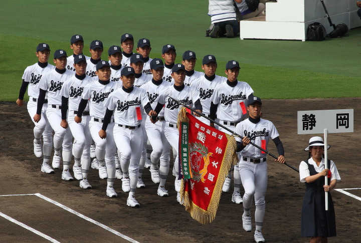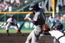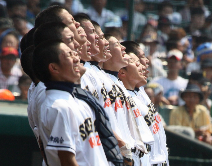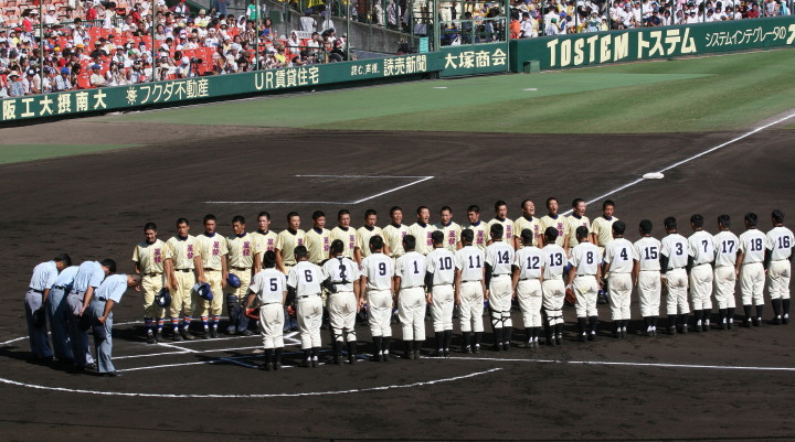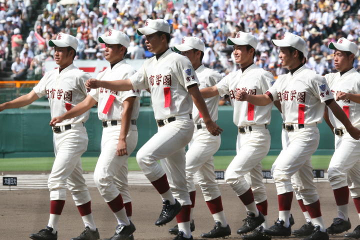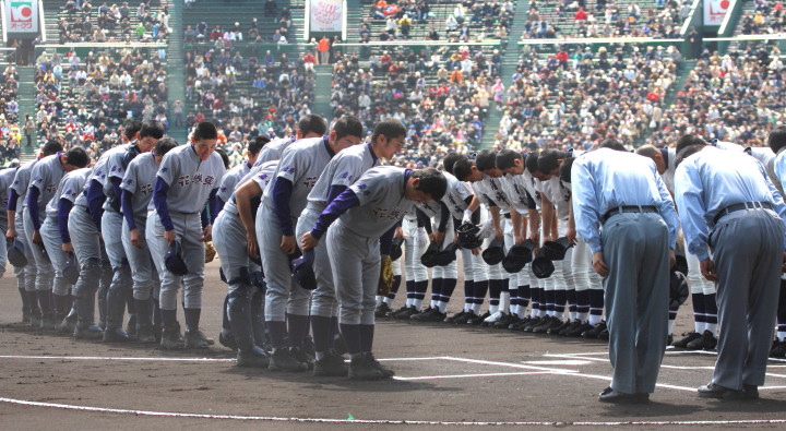| 開幕日に相応しい好天気の中、32校高校球児の入場行進に続いて、 石巻工キャプテン阿部の素晴らしい選手宣誓に満員のスタンドから大きな拍手が沸き上がる。 三試合目はいきなりの好カードは、大阪桐蔭の完勝に終わった。 |