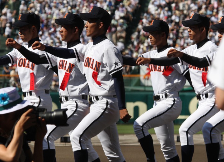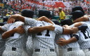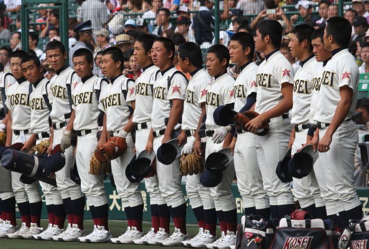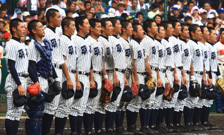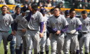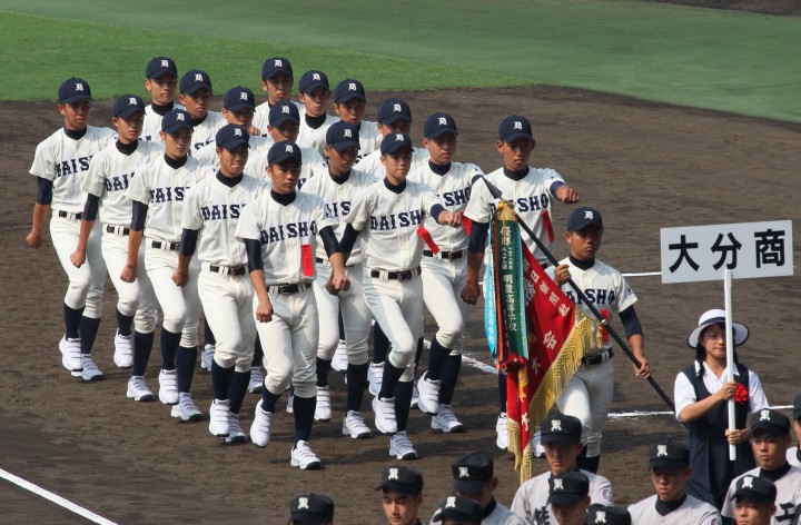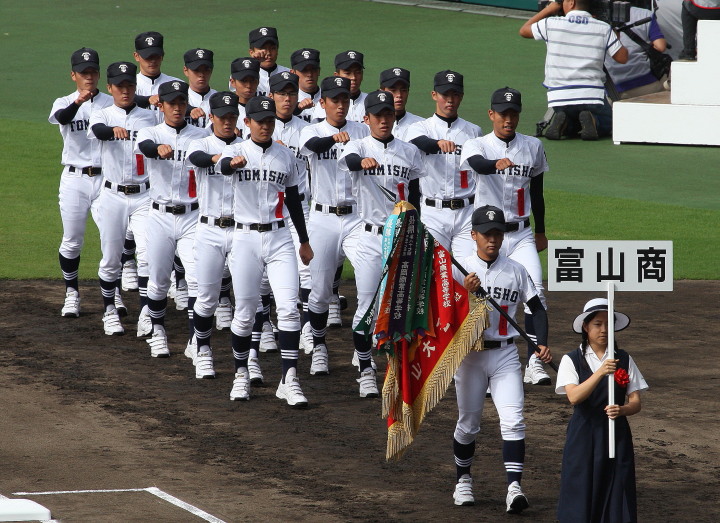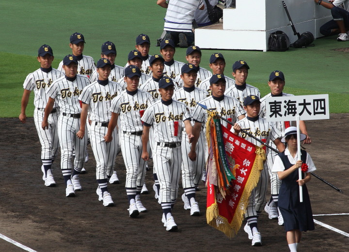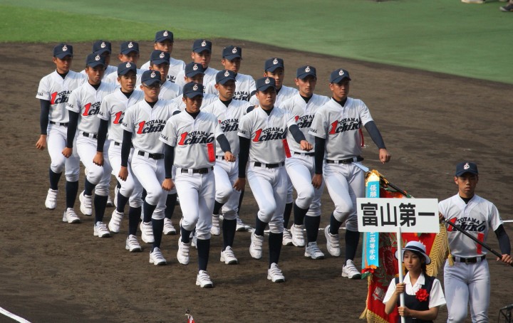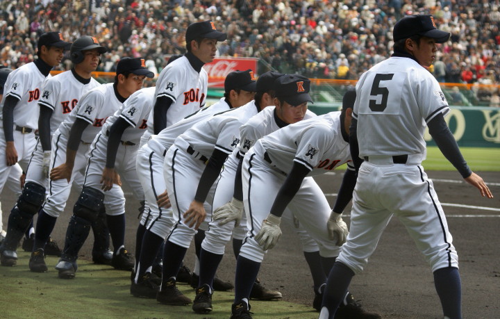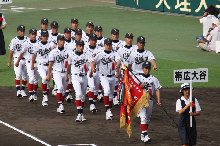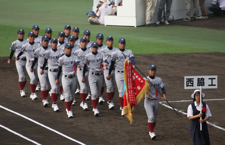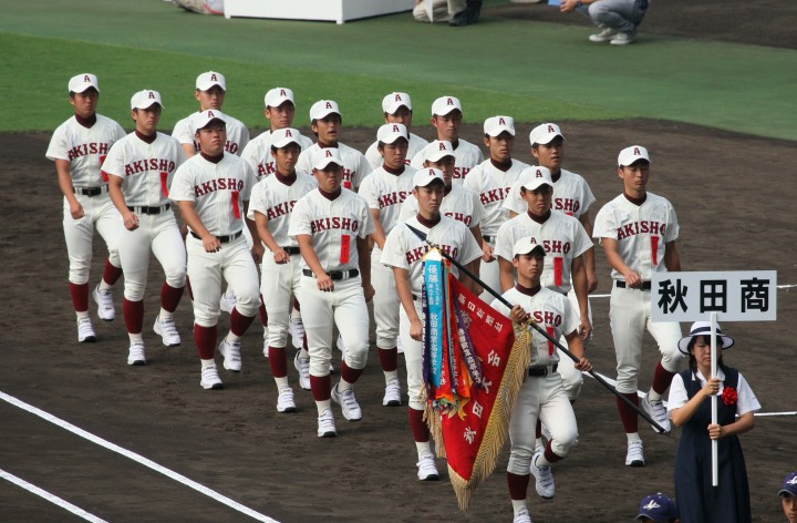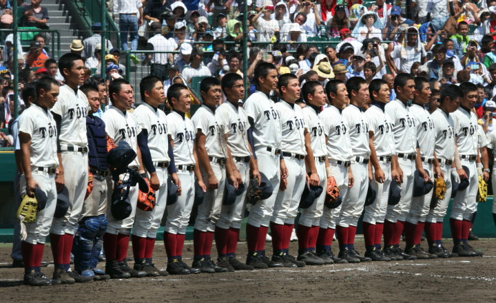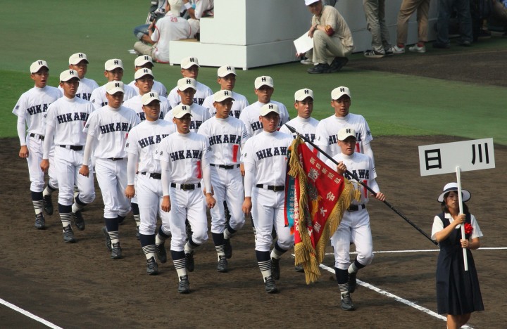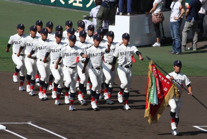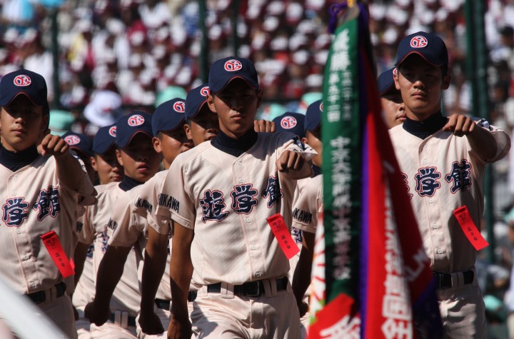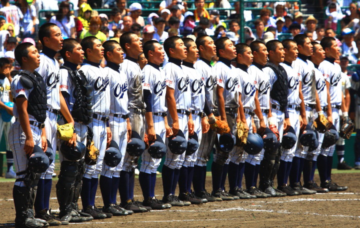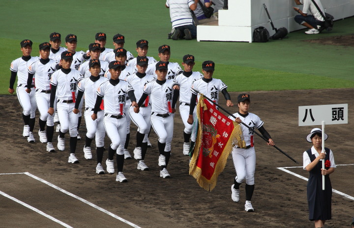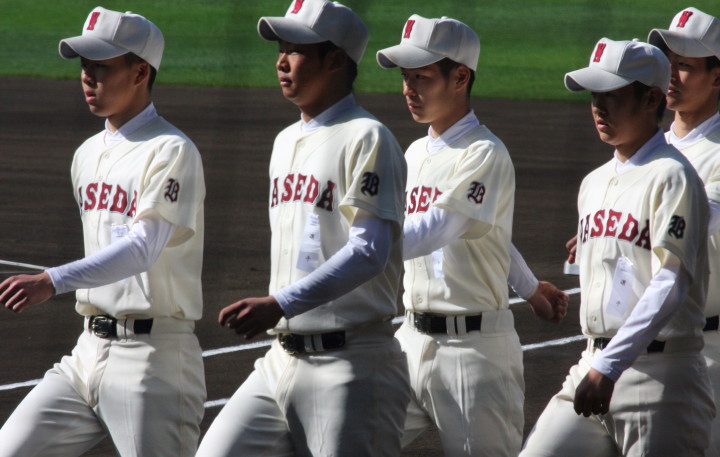 | 開幕日に相応しい好天気の中、32校高校球児の入場行進に続いて、 石巻工キャプテン阿部の素晴らしい選手宣誓に満員のスタンドから大きな拍手が沸き上がる。 三試合目はいきなりの好カードは、大阪桐蔭の完勝に終わった。 |