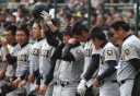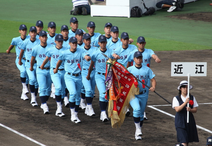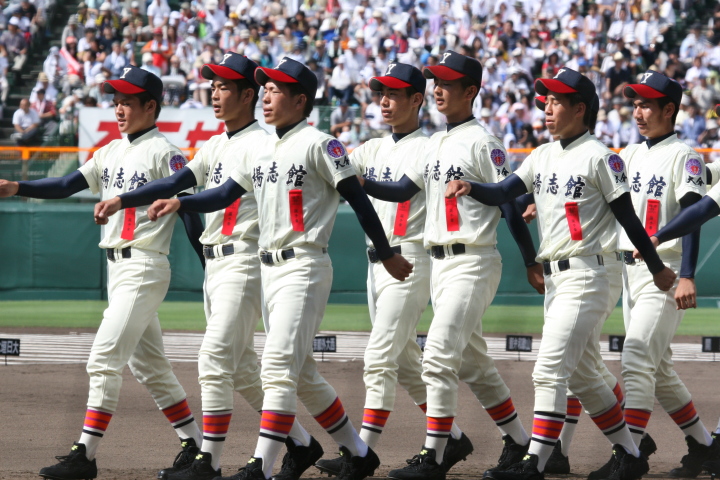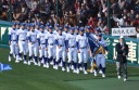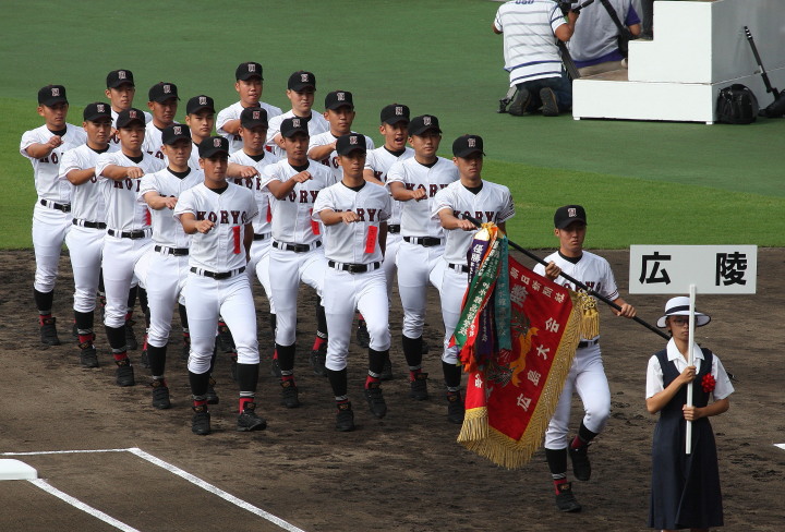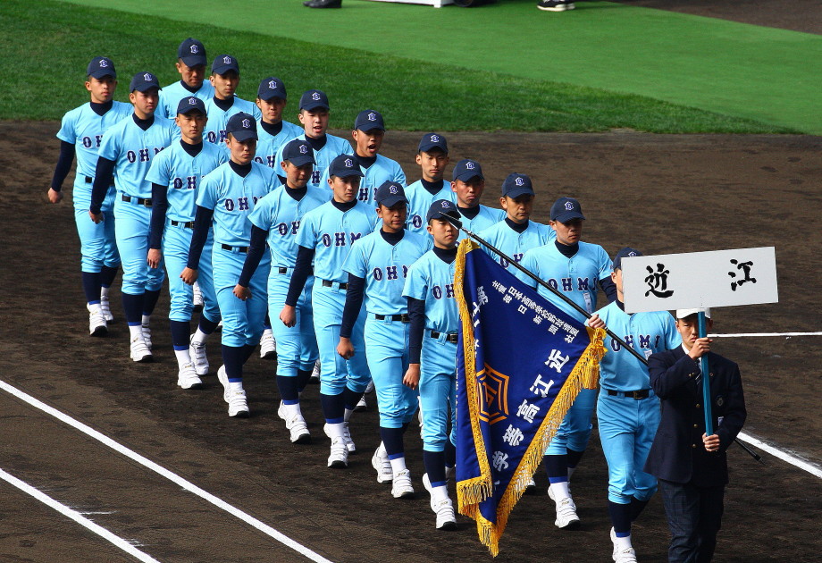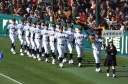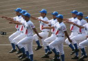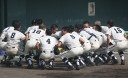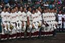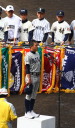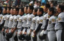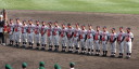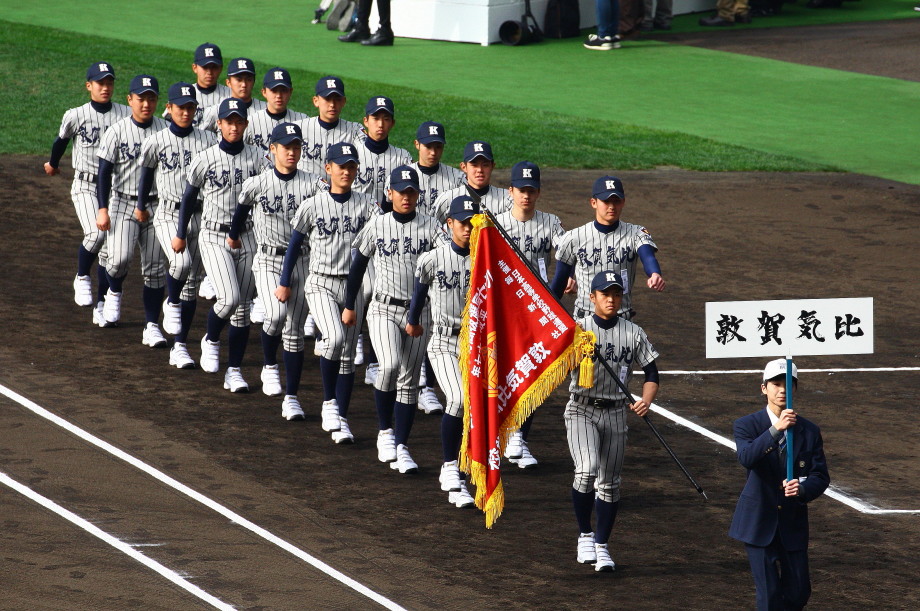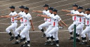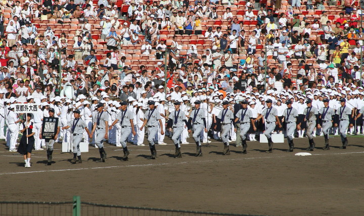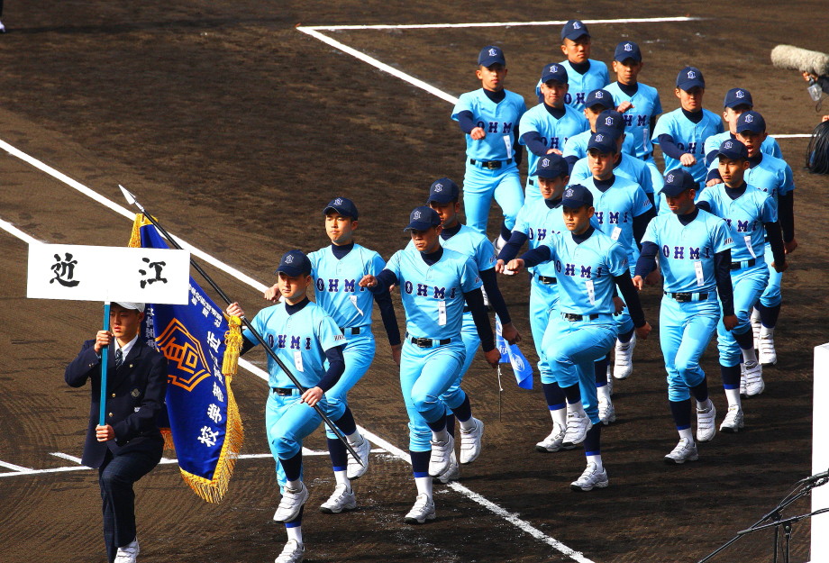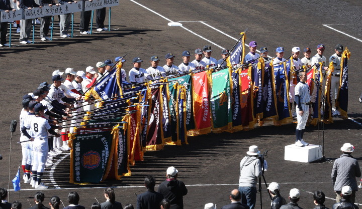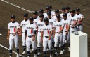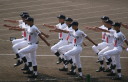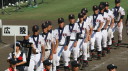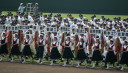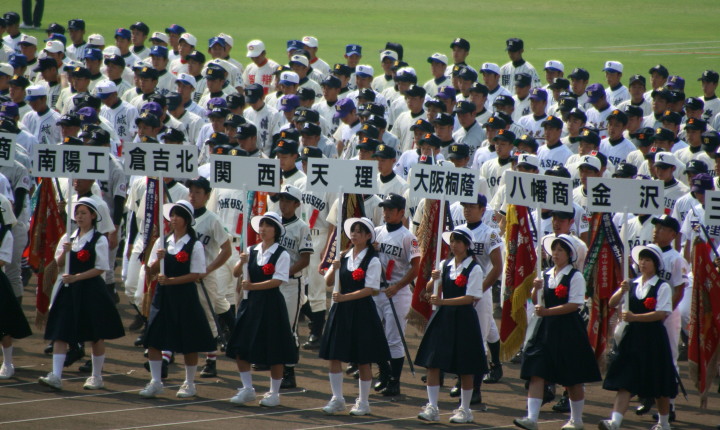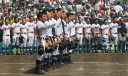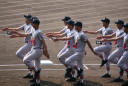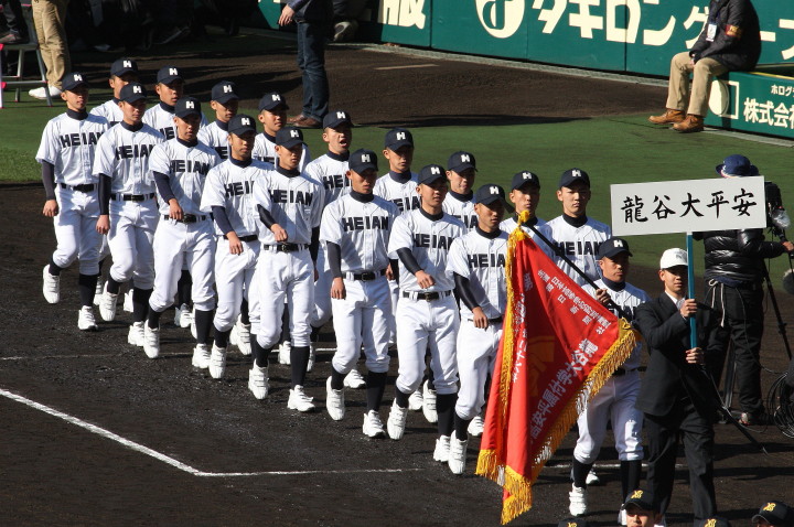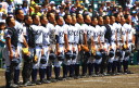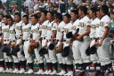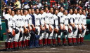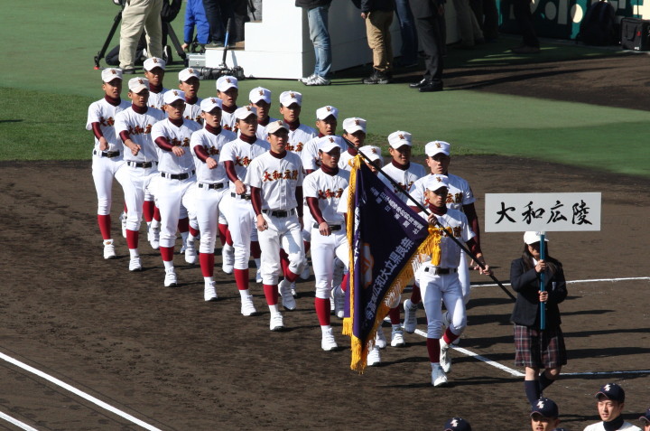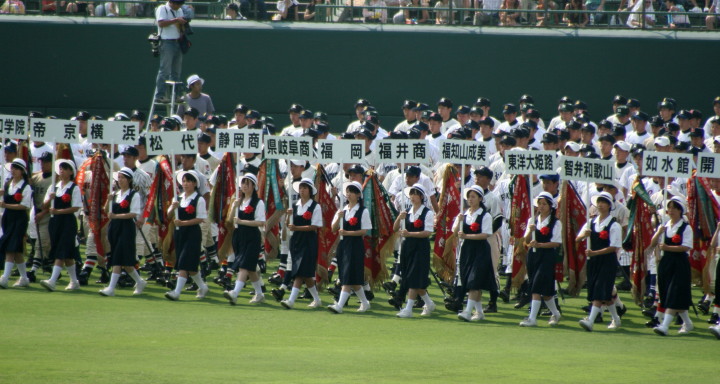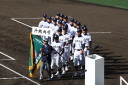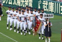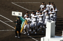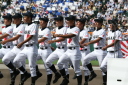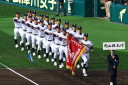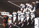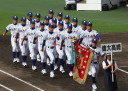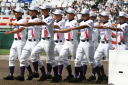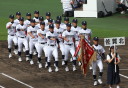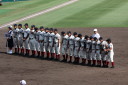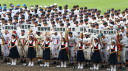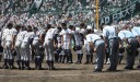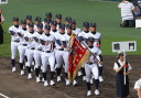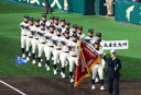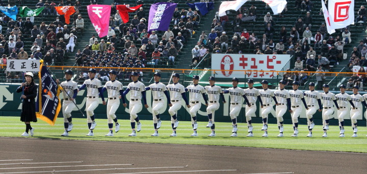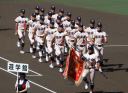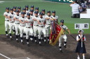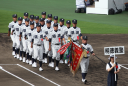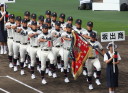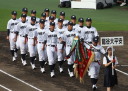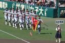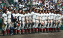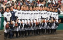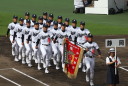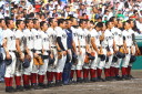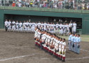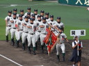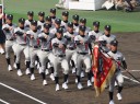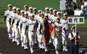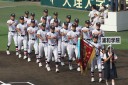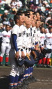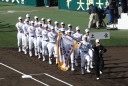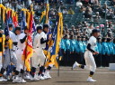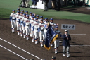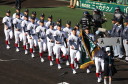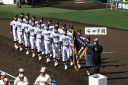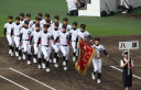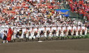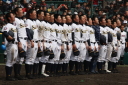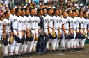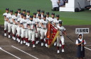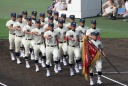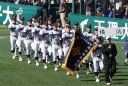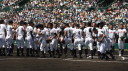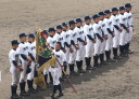 | 今大会は各地区代表29校と21世紀枠枠3校の出場。選手宣誓は敦賀気比の篠原選手。 前回優勝校・龍谷大平安(今回も出場) と準優勝校・履正社も行進。 全選手が出来るだけ隠れないように苦心したが、一部選手同士のの間隔が近すぎて重なった。 その為に数校は角度を変えた2枚をアップしている。 |