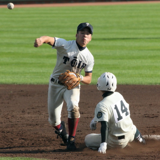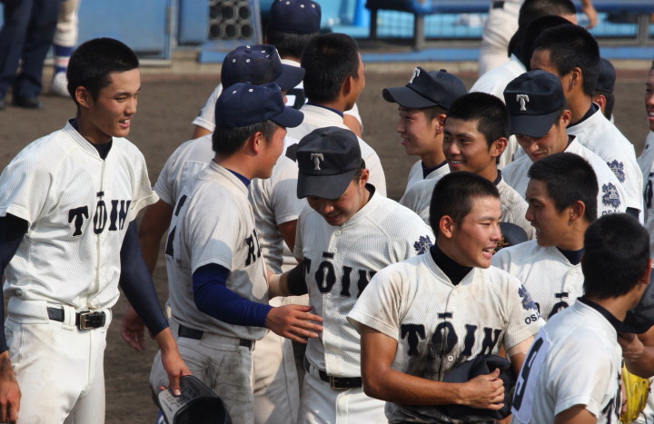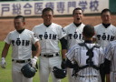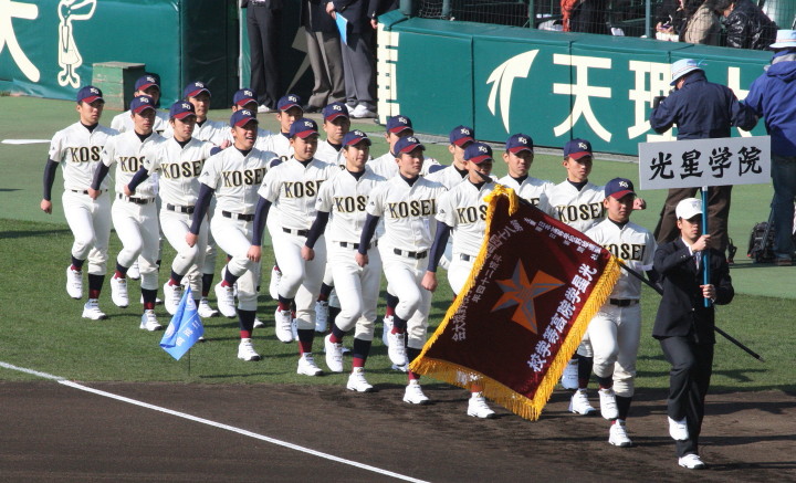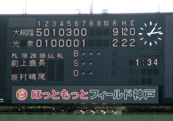 | 大阪大会で39連勝成らなかった大阪桐蔭の再スタート試合。 初回から桐蔭打線は相手のミスも絡めて爆発し一挙5得点。 5回森晋の3ランでダメ押し。光泉は7回桐蔭先発葛川をリリーフした網本から 谷口のソロホームランで食い下がったが口惜しい7回コールドでゲーム終了。 |
