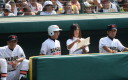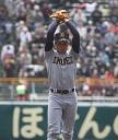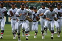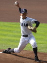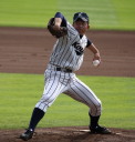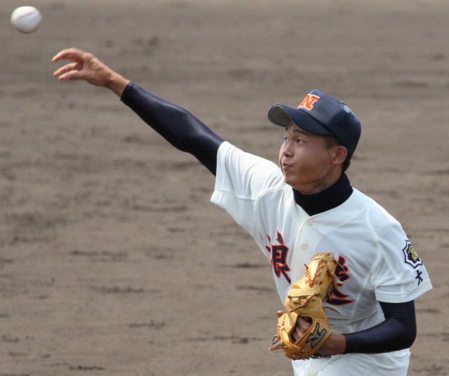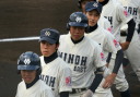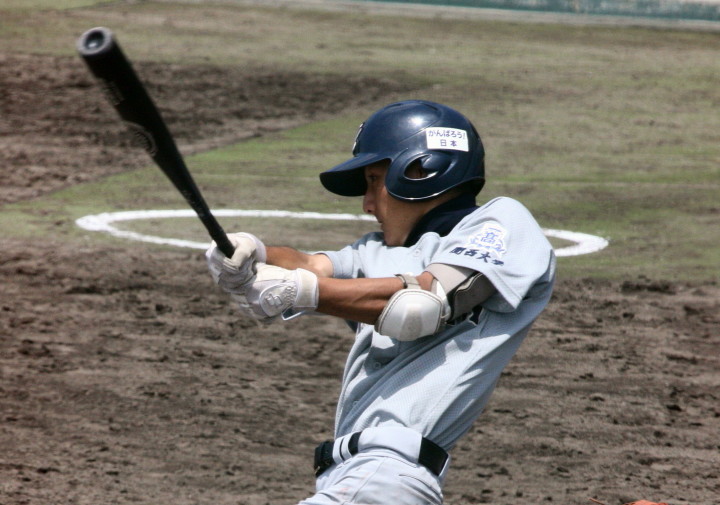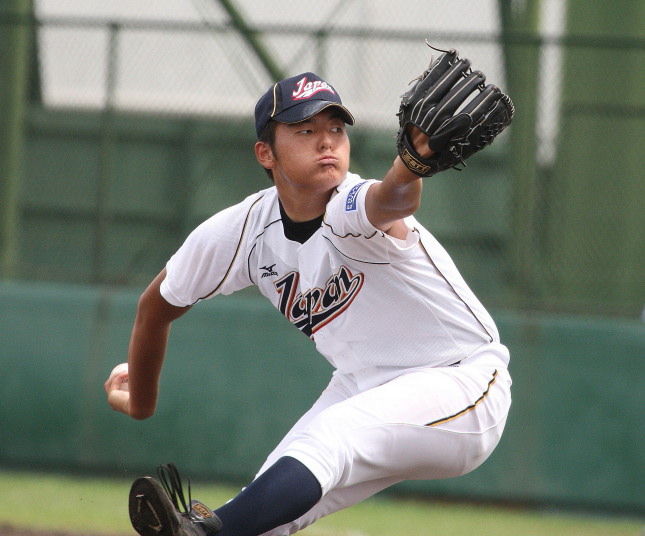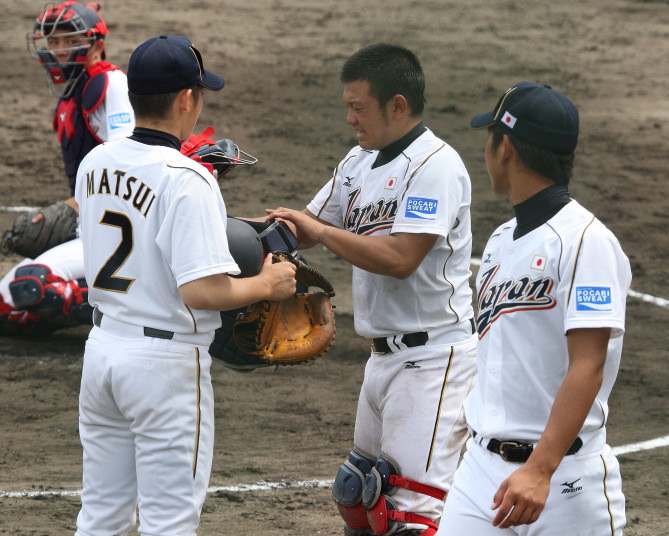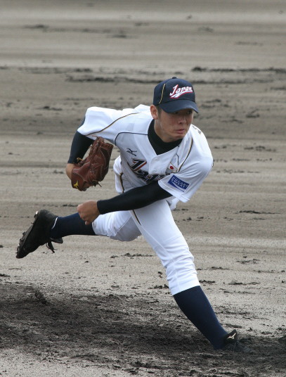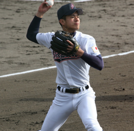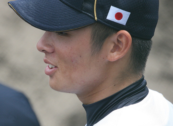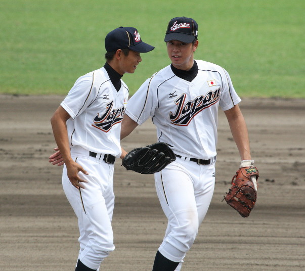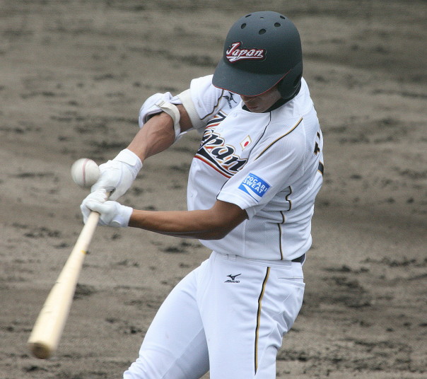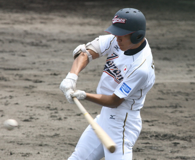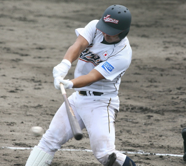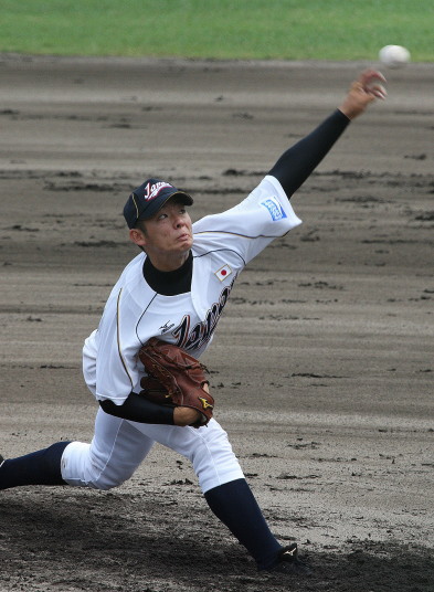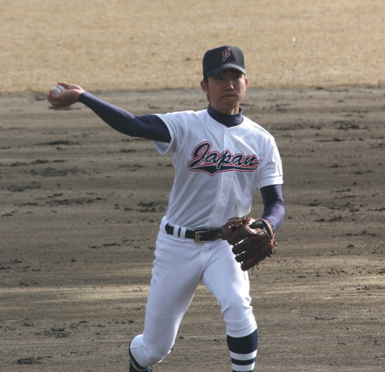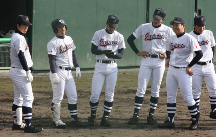 | 第26回 IBAF18Uワールドカップ日本代表チームの練習試合第1戦が関西大学を相手に行われた。 狭いネット裏席は各球団のスカウトとプレスで満席。 先発の松井(桐光学園)は1〜4回を1与四球8奪三振で零封。次は山岡(瀬戸内)が5〜6回を1奪三振で零封。 三番手の高橋由(岩国商)は7〜8回を2奪三振で零封。9回の抑えに安楽(済美)が登板、3連続奪三振で零封。 終わってみれば豪華リレーでノーヒットノーラン。 一方打線は、1回森友(大阪桐蔭)のタイムリーで2点先制、内田(常総学院)の犠飛で加点し3対0。 2回は竹村(浦和学院)にタイムリーが出て4-0、5回園部(聖光学院)のレフト越えソロホームランで5-0。 (松井の球威と低めへのコントロールは凄い !! 安楽もショートイニングだと豪速球がなお冴える !! ) |