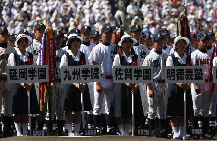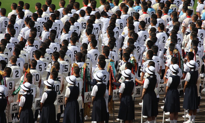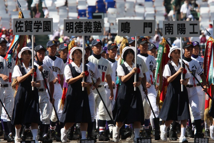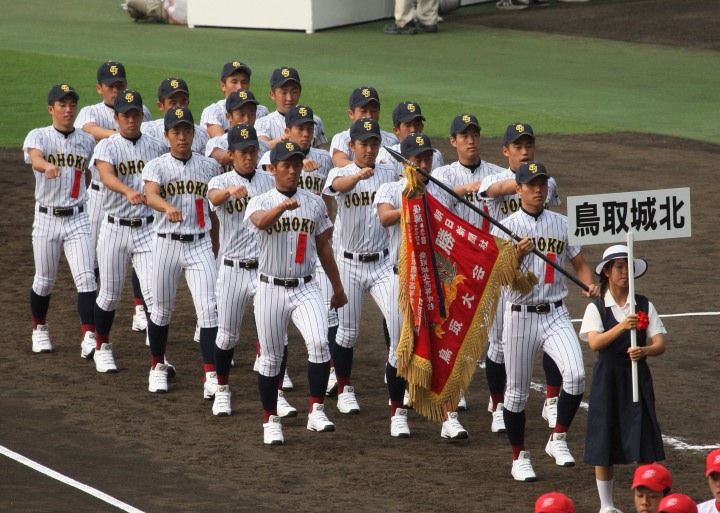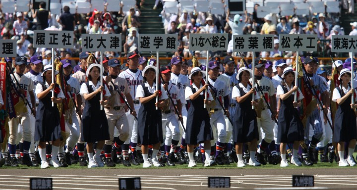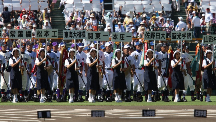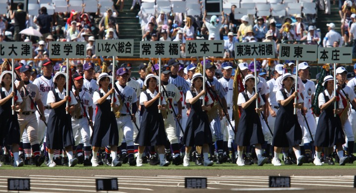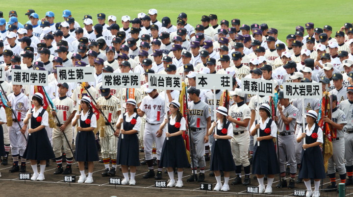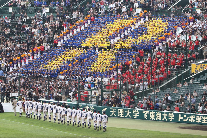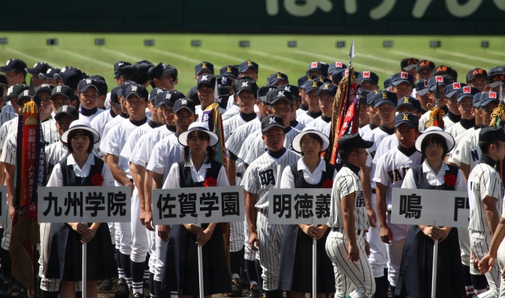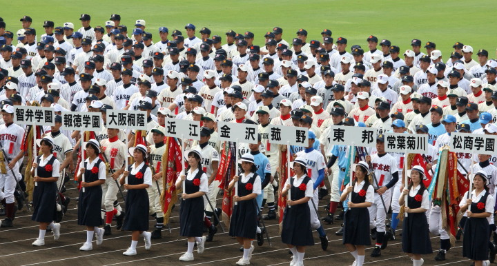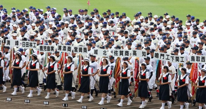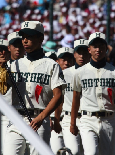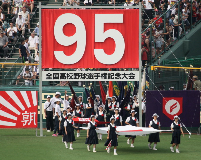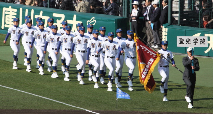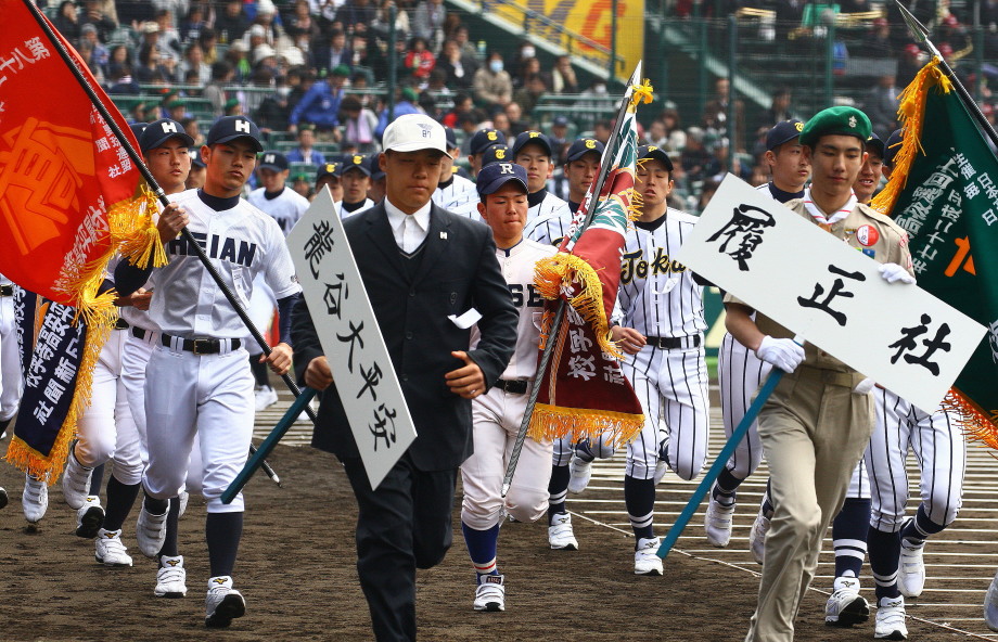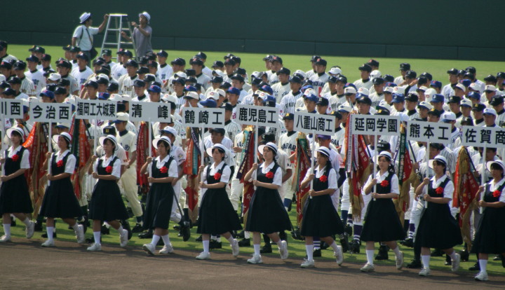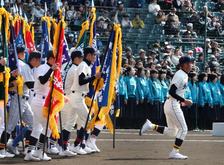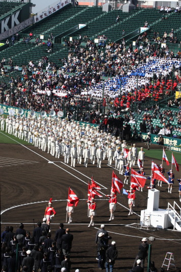 | 東日本大震災から2年・東北勢5校を含む36校出場の記念大会が開幕。 前年度優勝の大阪桐蔭高と準優勝の光星学院を先頭に各校の入場が続く。 今回は全校チームをアップしたが、カメラアングルがままならず全選手を捕えきれなかった。 13日間に亘る懸命のプレーを期待しつつ !! |