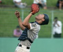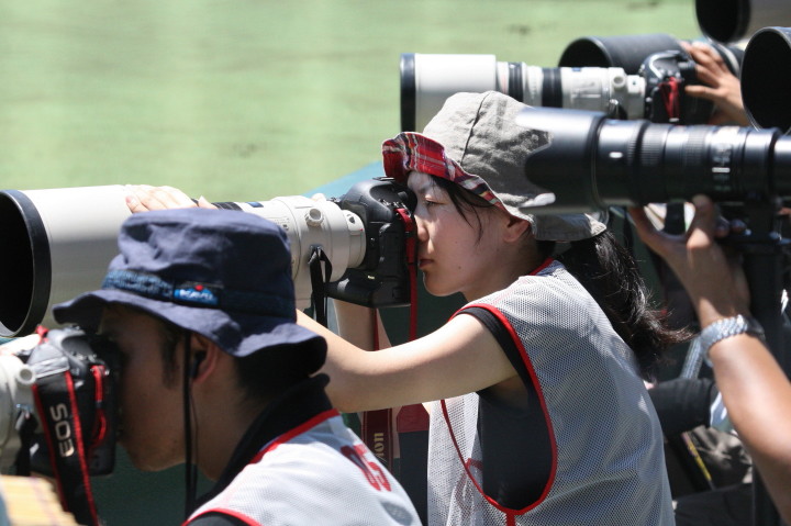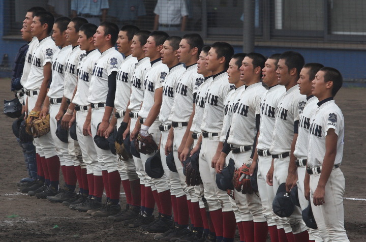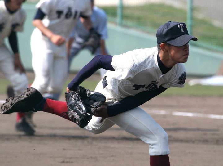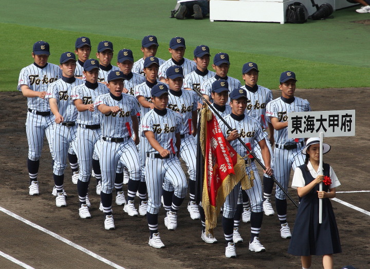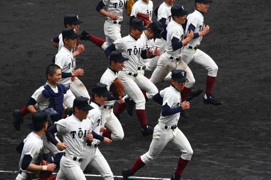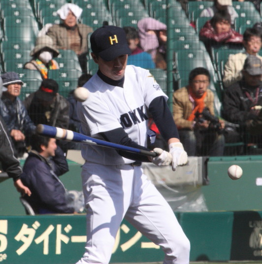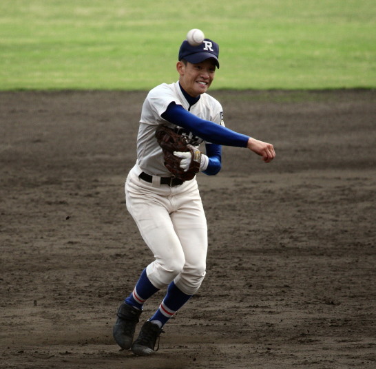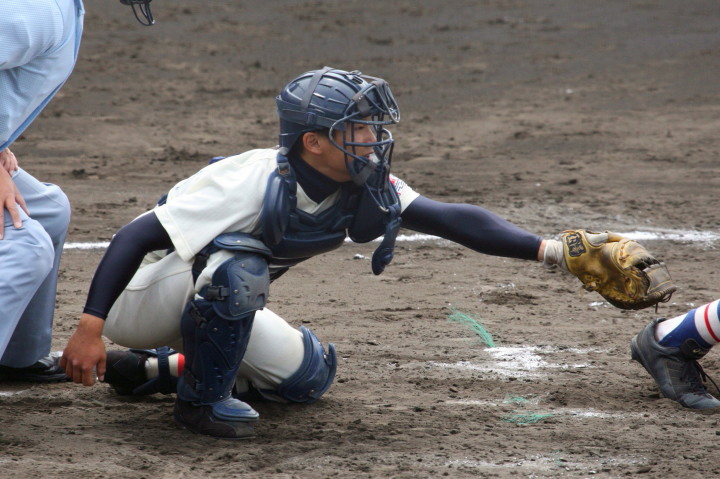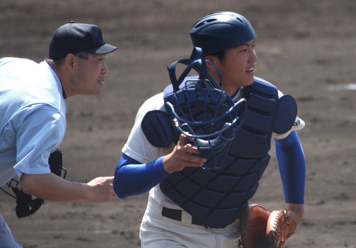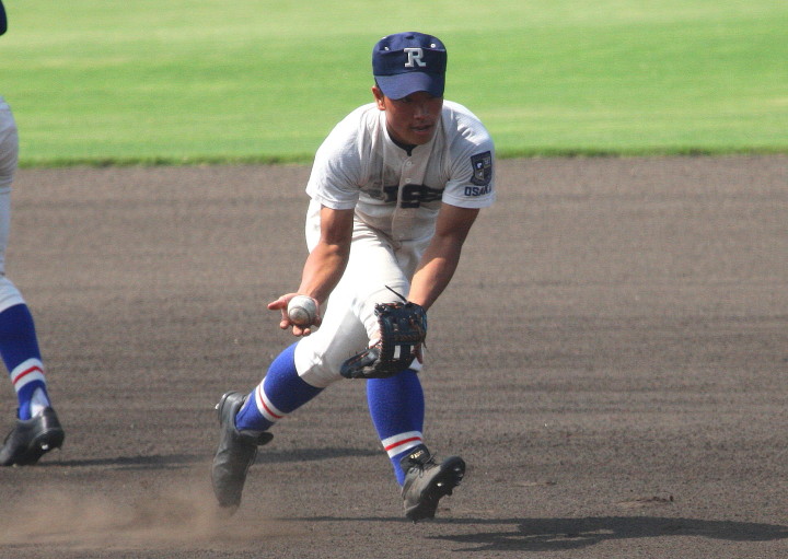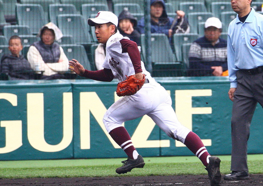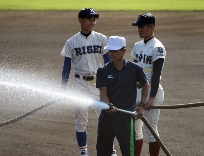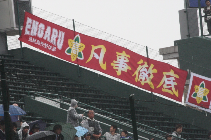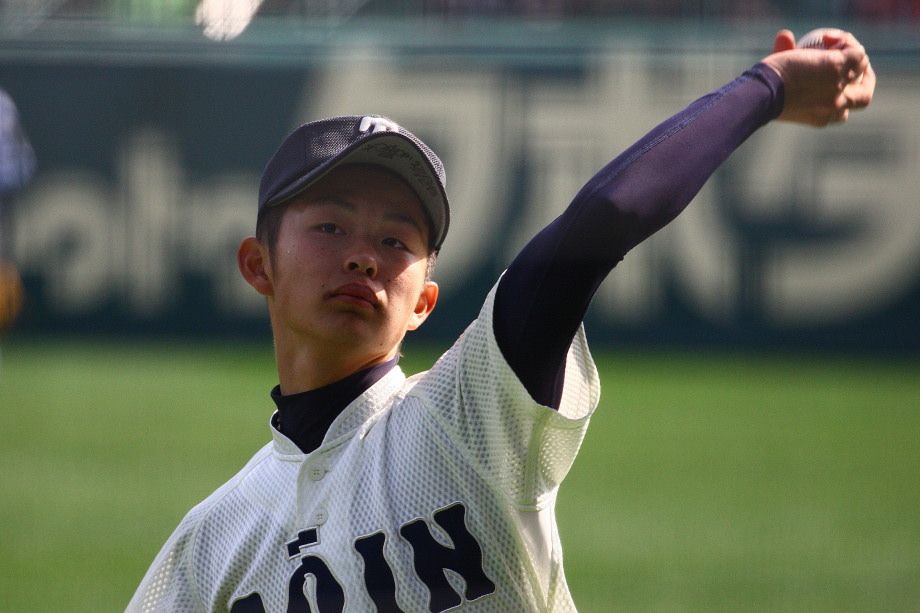 | 第一試合・大阪桐蔭 11-1 遠軽 大会日程も中盤を迎えて、春・夏・春と三連覇を噂される大阪桐蔭高校がいよいよ出場した。 試合開始前から小雨が時々落ちてくる中、大阪桐蔭は初回2番峯本の中前ライナーを野手が後逸、 記録はランニングHRで先制。3番森友哉4安打3打点を含むチーム10本のヒットで着々と加点。 先発左腕・網本7回1失点、リリーフしたエース葛川も2回を押さえて盤石。 後半雨が強くなり以降二試合は撮影を残念した。 |
