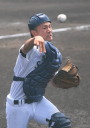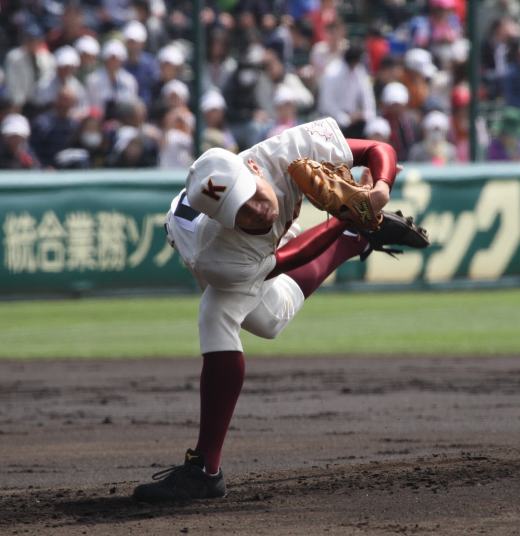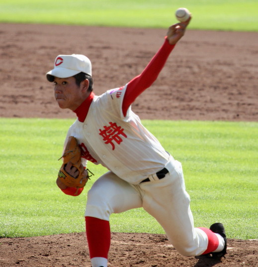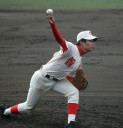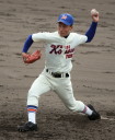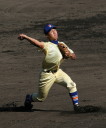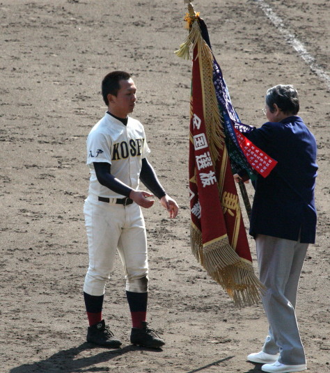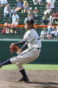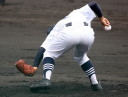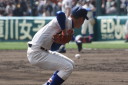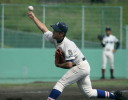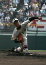 | 開会式直後の第一試合に先ず第一球を投げたのが、松本工・四番でエースの柿田投手(現日本生命)。 長野大会6試合を一人で投げ抜いて来た柿田も緊張からか本来のピッチングが出来なかった。 |