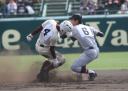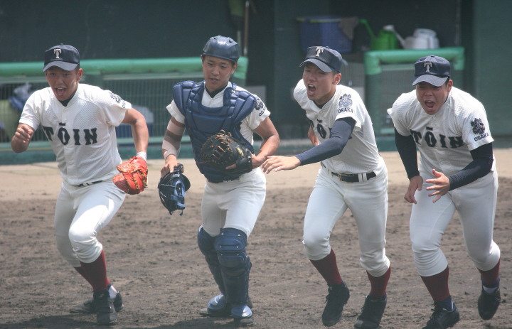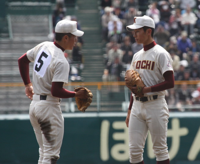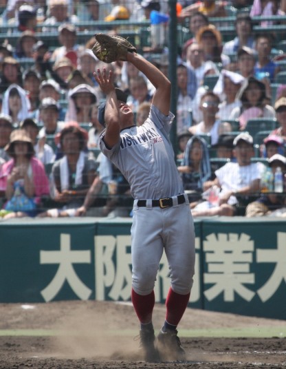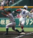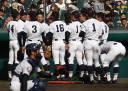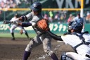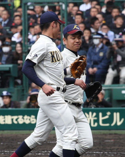 | 大阪桐蔭は初回の大量4失点を追いかける展開になったが、3四死球を得て犠飛などで2点、 5回相手のボークで同点、6回はこれも相手のエラーで勝ち越し辛うじて逃げ切った。 |