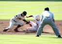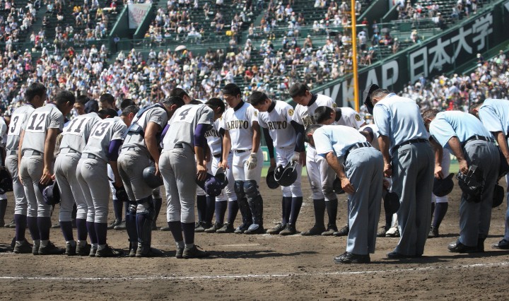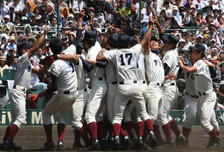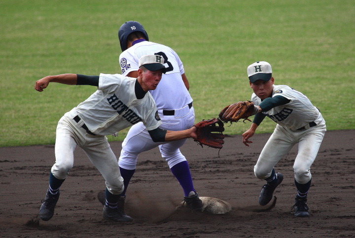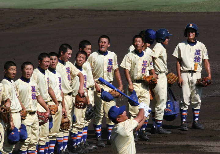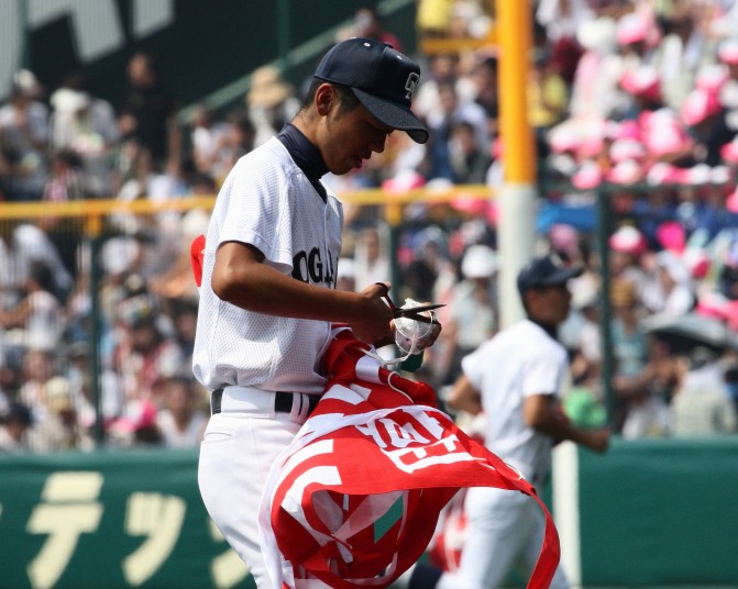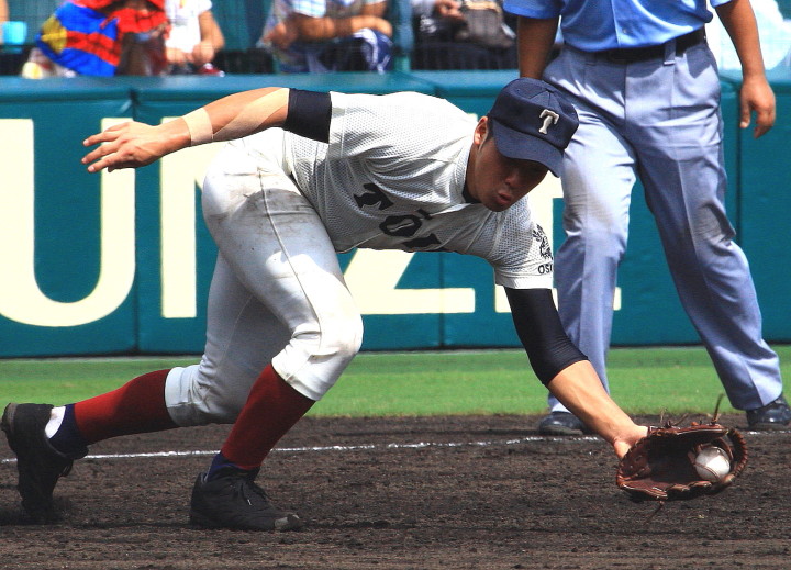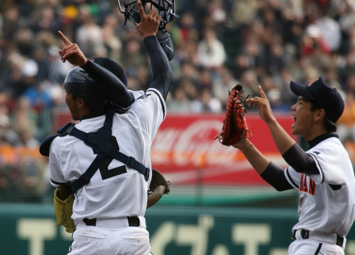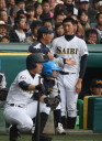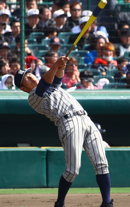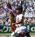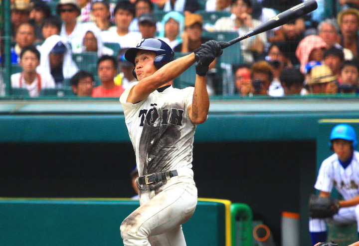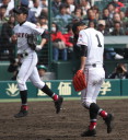 | 181校の頂点を目差す大熱戦の決勝戦になった。 大阪桐蔭が4番田端の2ランHRなどで中盤までに大量得点し藤浪の完投ペース。 ところが8回履正社の打線が爆発、ストレート・スライダーを狙い撃って5得点、 尚リリーフ澤田からも6番原田がライトオーバーの二塁打・2点差に迫まり ツーアウト2.3塁、次打者・沖田くんの強烈なゴロは澤田が好捕してゲームセット。 レベルの高い大阪大会を制した大阪桐蔭、春夏連覇を目指せ!! |