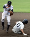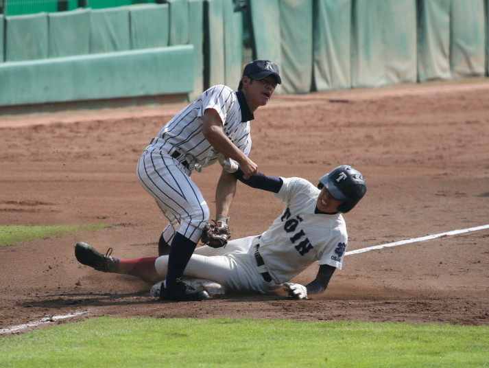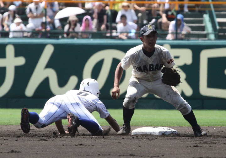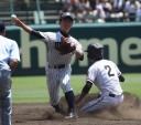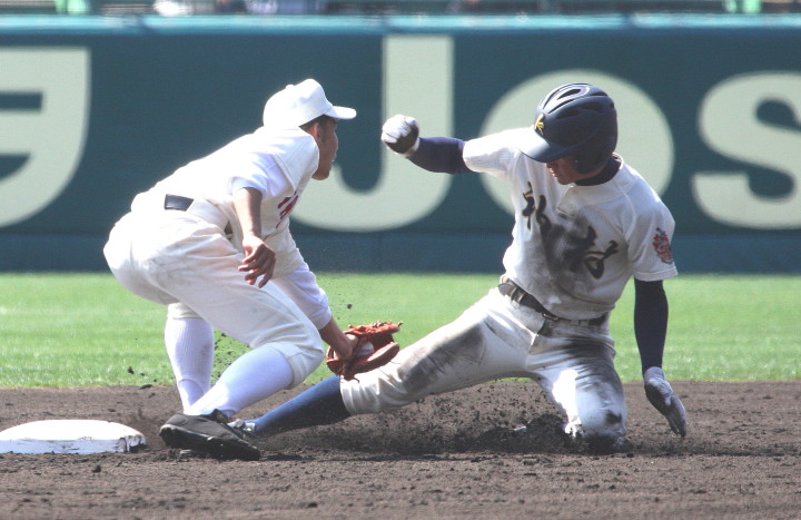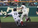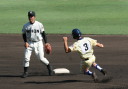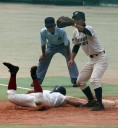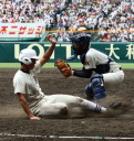 | 第1試合・6回花巻東が先制、直後鳴門が4番伊勢のセンター前タイムリーなどで一度は逆転、 しかし8回表花巻東5番多々野の打球が一塁ベースに当たるラッキーなヒットで同点、 6番山下の左中間二塁打、続く茂木のタイムリーで再逆転。 最終回鳴門も5番稲岡のタイムリーで1点さ差まで詰め寄ったが及ばす、花巻が準決勝へ進んだ。 花巻東2番CF千葉は小柄な身体を駆使して1ヒット4四死球と大活躍。 |