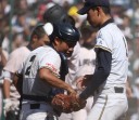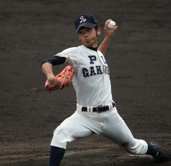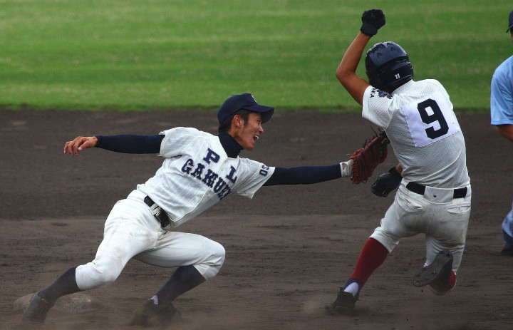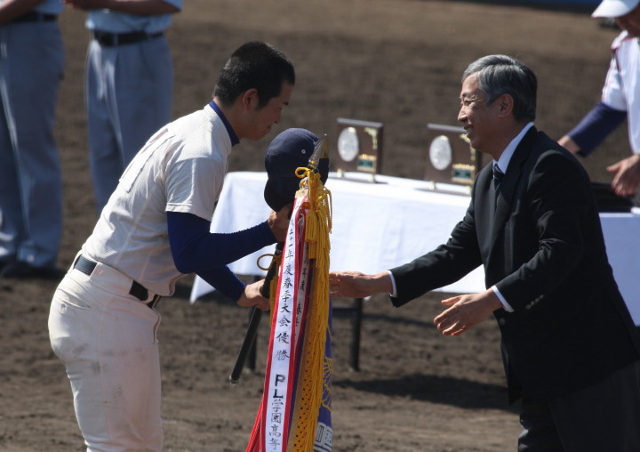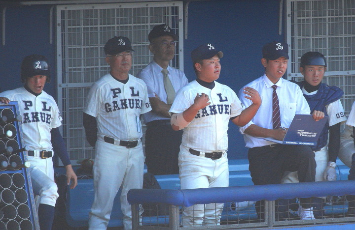 | 成長著しいPL学園のエースナンバーを背負った山本くんが7回2安打8奪三振で零封。 打線も3回9番C中田のセンター前と2番LF土橋の死球から3番RF辻の2点タイムリーレフト越え二塁打と、 6番CF大和久レフト前で3点を先制。4回にも8番2B宮木レフト前、中田が送り、1番SS謝名堂がライトオーバーの 三塁打で加点。4番3Bネイサンが5回のソロに続き6回にも2打席連続のツーランを放ち7回コールド勝ち。 |