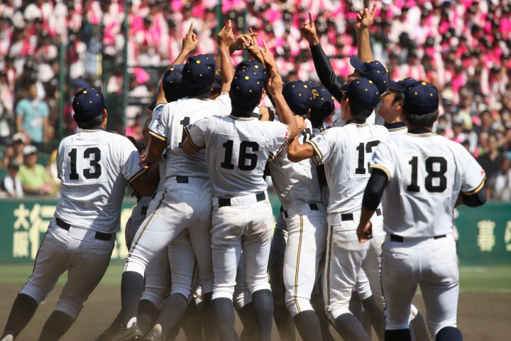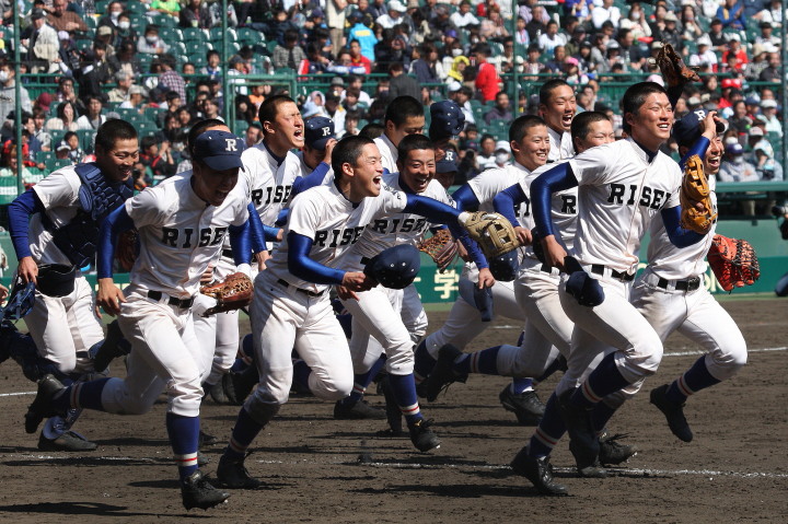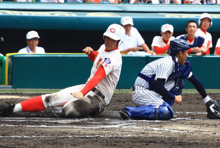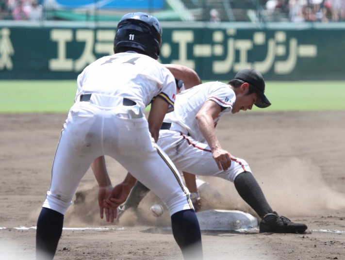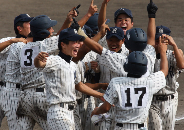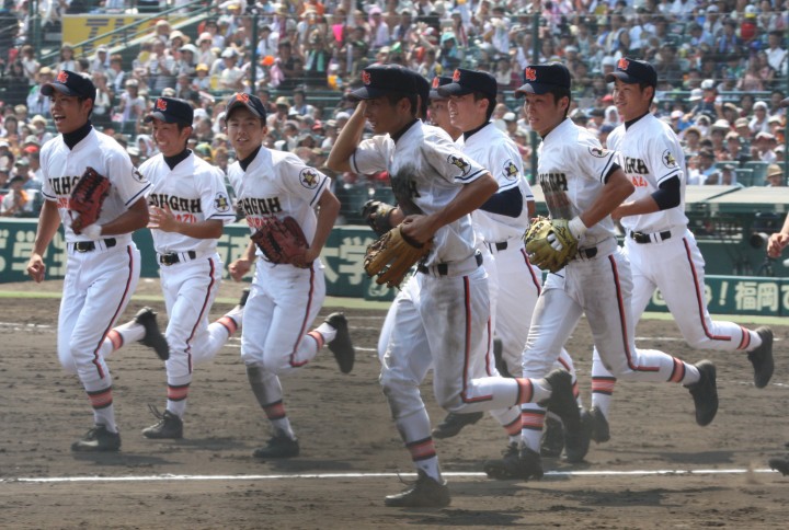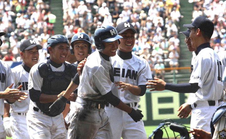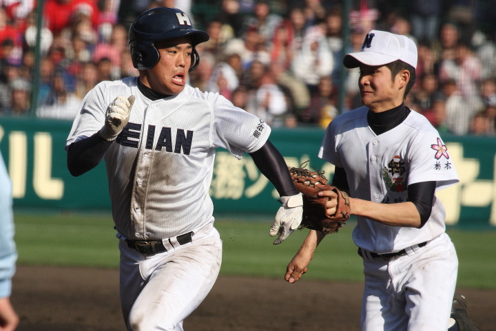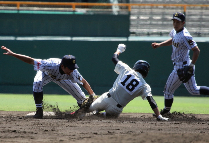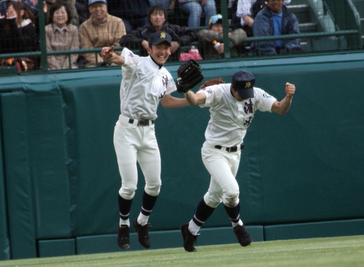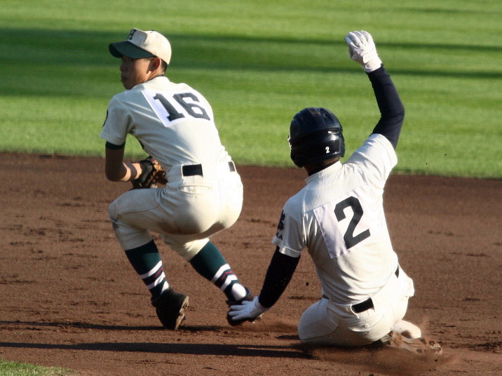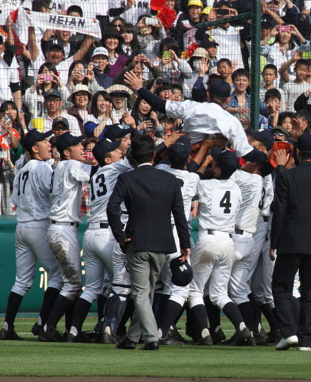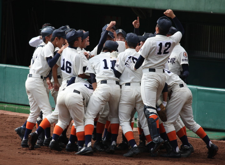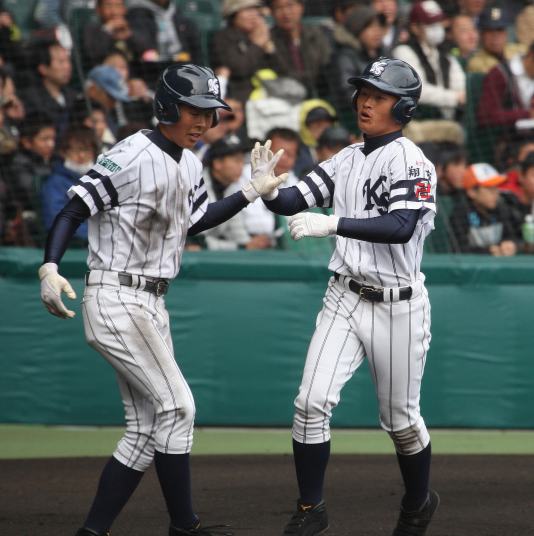 | @ 履正社がリードされた最終回8番CFで途中出場のキャプテン金岡がストレートをジャストミートしレフトへ同点HR。 11回押し出し四球を得てサヨナラ勝ちし決勝戦へ。 A 平安が2回表1番CF徳本のライトへの2ラン等で先制し7.8回にも効率よく追加を上げ、 好投手田嶋を攻略し明日の大阪vs京都対決へ望む。 |