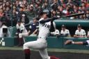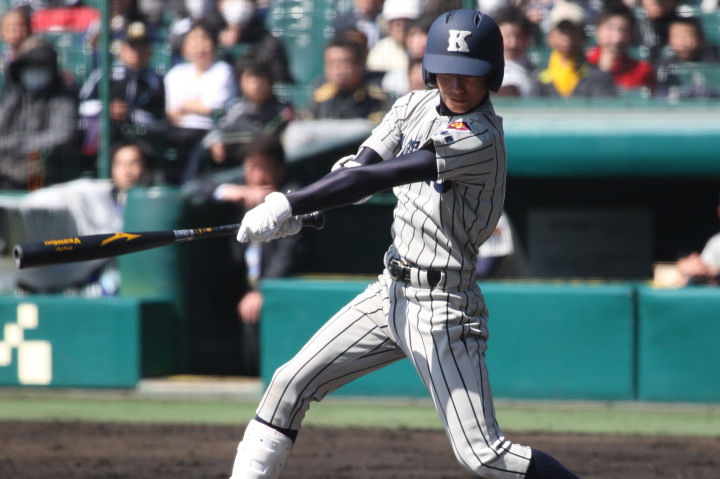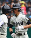 | 大阪桐蔭の打線が復活、1回・峯本が左中間へ二塁打、すかさず香月が逆風のライトへ 先制の2ラン。 その裏明徳・安田の右中間へのHRで1点差になったが、3回には4安打で2点追加、4回にも1点追加、 9回明徳・岸の2ランで追い上げられたが、好投手岸を攻略し3回戦へ。 |
