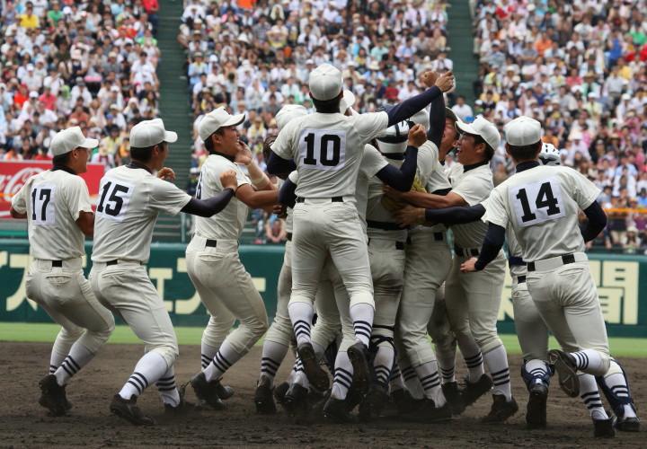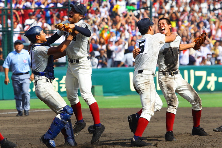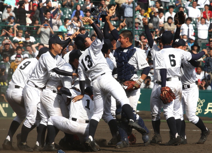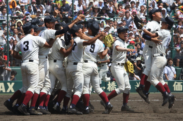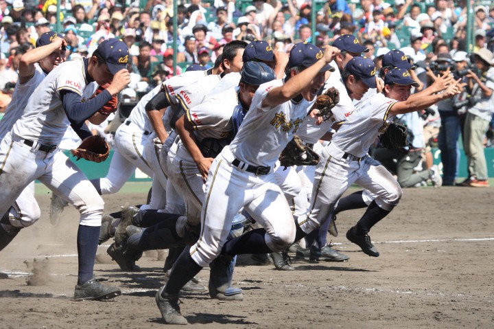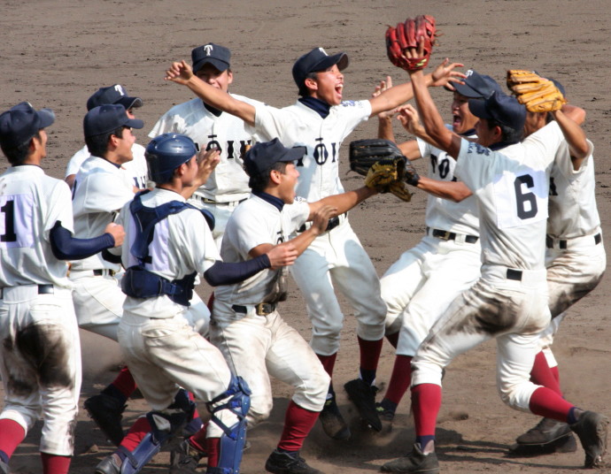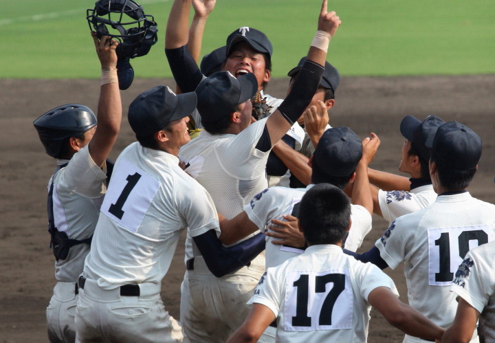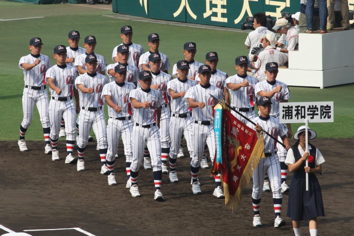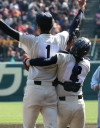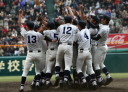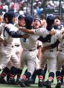 | 頂点を目指す2校による決勝戦は、済美が1点リードした5回裏・浦学が4試合連投の疲れが見える 済美・安楽を攻め、6番斉藤から3連打のほか8本のヒットで一挙7得点し勝負を決めた。 浦和学院は春夏通じて初優勝 !! |