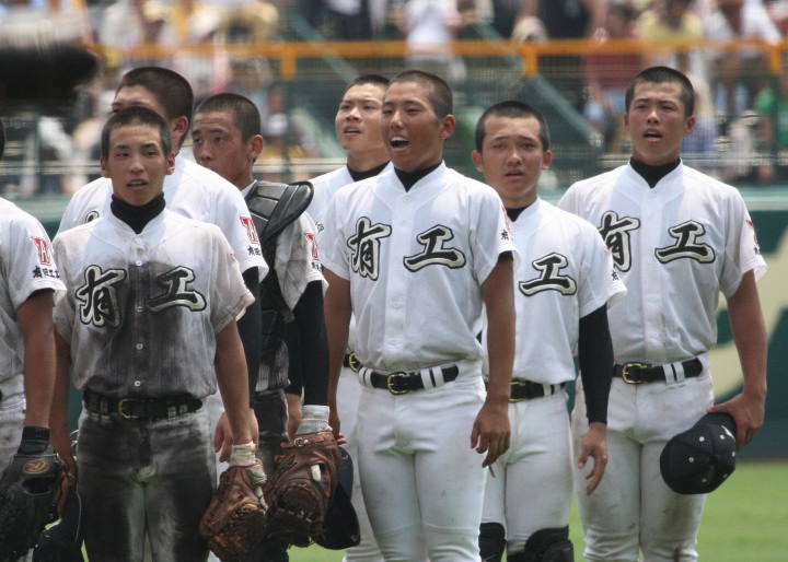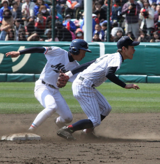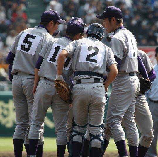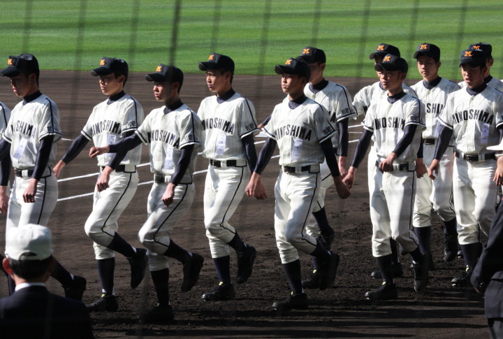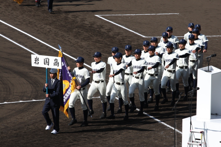 | 第二試合・岩国商 1-0 履正社 岩国商の高橋投手に履正社の強打線が焦りから早打ち大振りが目立ち5安打3四球で完封された。 8回岩国商が満塁から東野投手のWPで得点した1点を守りきり初出場で嬉しい勝利 !! |