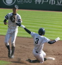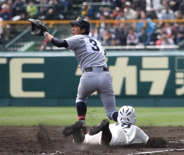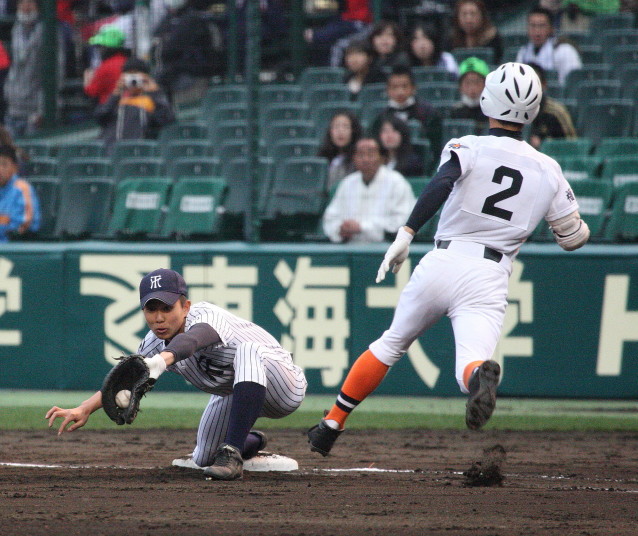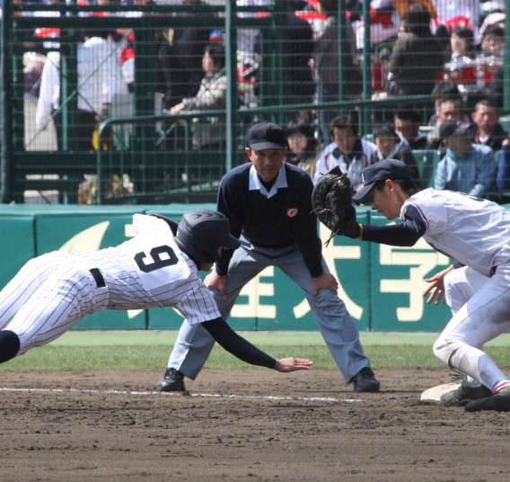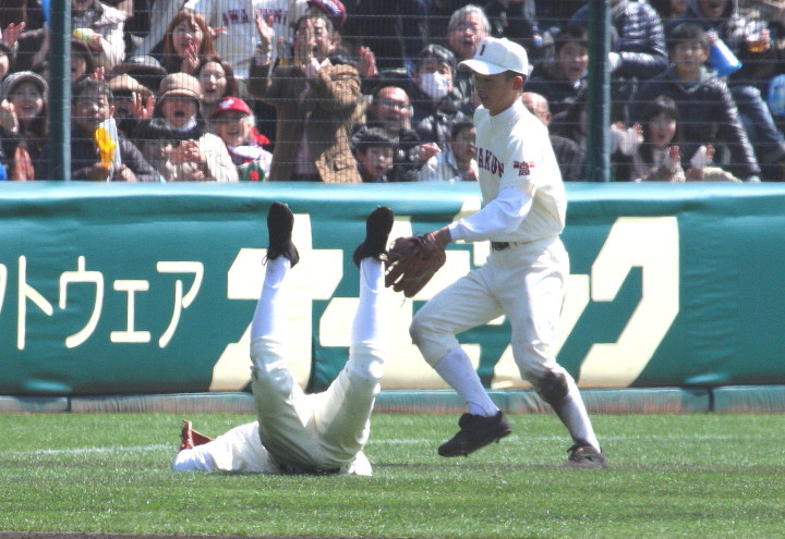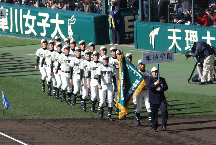 | 第三試合・報徳学園 中村と福知山成美 石原の両投手がともに好投、 6回裏報徳のP中村がライト前ヒットからチャンスを作り、 石垣のセンター犠飛で中村生還、決勝点が入った。 |