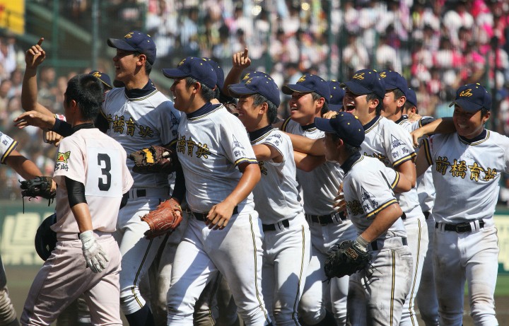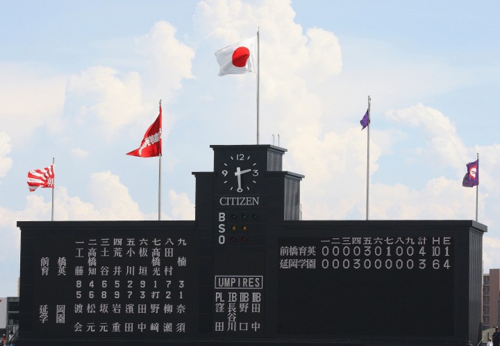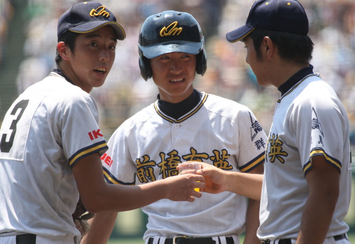 | 先行したのは延岡学園。4回チーム初ヒットから2アウト満塁のチャンスで7番3B薄田がタイムリー3塁内野ヒット、 三塁手の一塁への悪送球で一挙3点。5回表前橋育英が反撃、8番LF田村がレフトスタンドへソロの後、 ノーアウト1.3塁でスクイズ成功、尚も5番C小川のライト前Hで同点に追いつく。 7回4番3B荒井が三塁線を破るヒットで勝ち越し。 2年生投手高橋光が5回以降2安打に抑え、初出場初優勝を飾った。 |