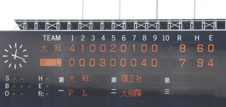 | 三位決定戦・大冠 8-7 PL学園 公立校大冠が大健闘、かっては全国に名を馳せた名門PLを降し三位に決定。 |