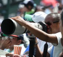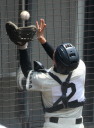 | 先日大怪我をした大阪桐蔭のキャプテン1番LF中村くんは、骨折した顔面には なんの手当ての跡形も見せずスタメン復帰し、3安打の大活躍、よかったよかった !! 3番1B正隋くんのレフトオーバーHRをはじめ12安打を放ち、5回表を終えてゴールド勝ち。 今日も猛烈な暑気襲来、コールドをなかば期待しつつなんとか撮影を終えた !! |