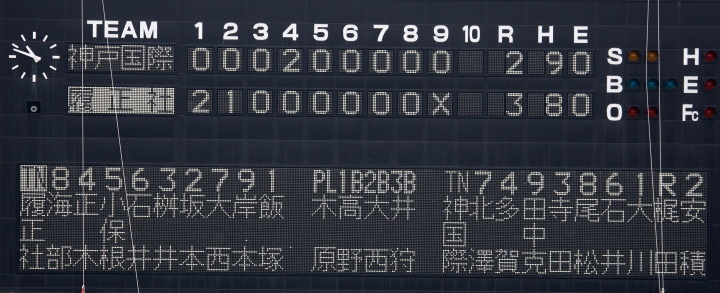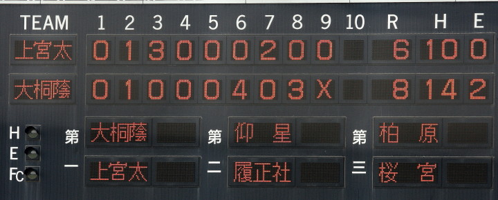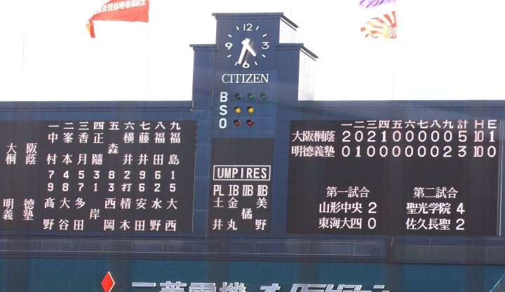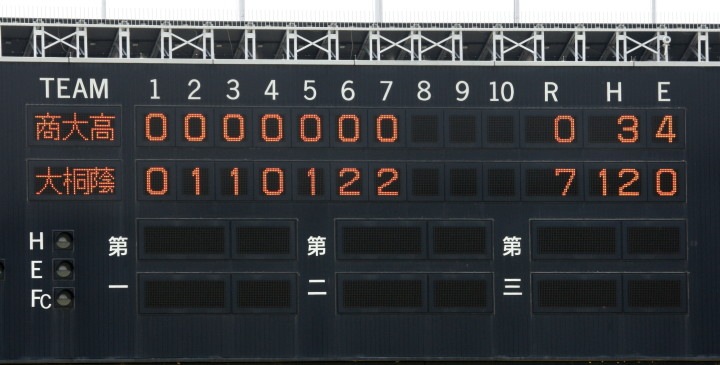 | 明徳2回3点先行、7回にはピンチヒッターのスリーランHRなどで決定的な4得点で大勝。 | ||||