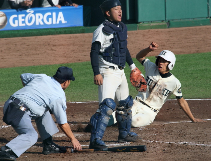 | 後半神村学園が地力を発揮、7回3番LF山本がライトポール際にスリーランで決着を接戦に付けた。 | ||||