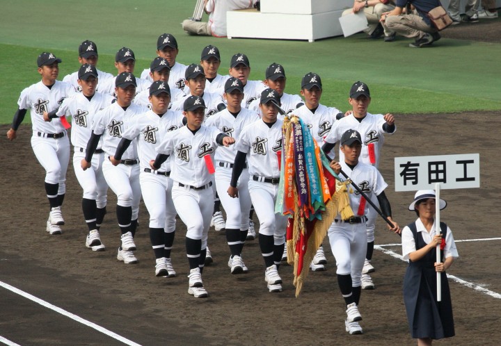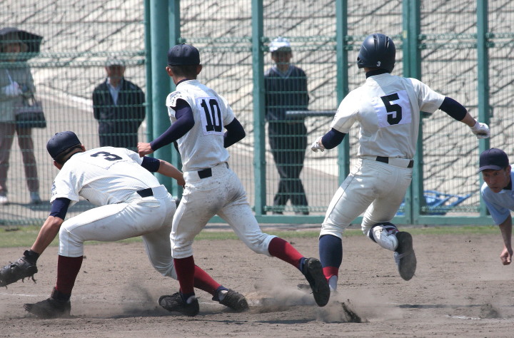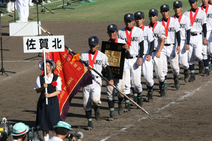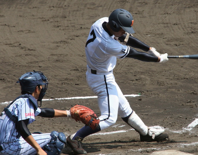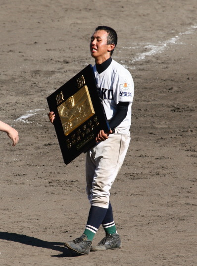 | 今大会の第一試合。 3-2とリードされた有田工が、9回2アウトランナー1.3塁から5番仙波が左中間を破る2塁打で逆転勝利。 |