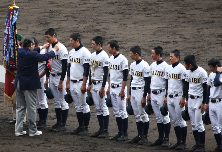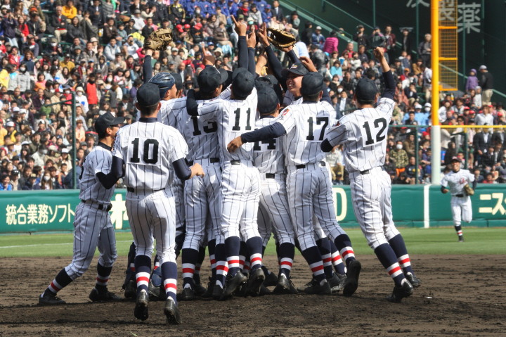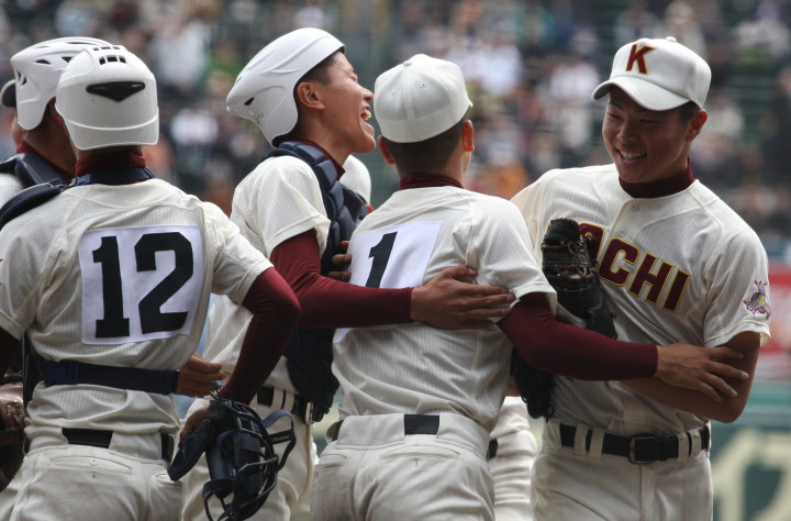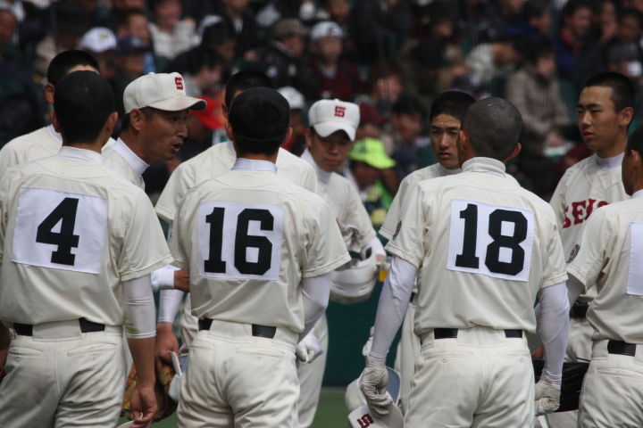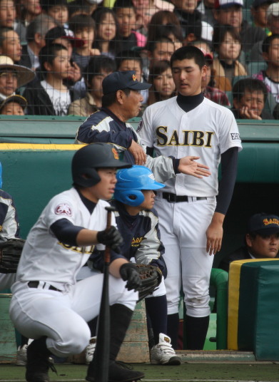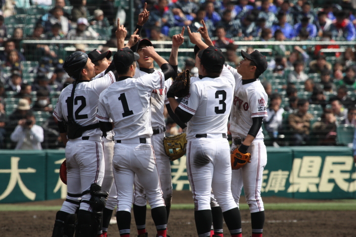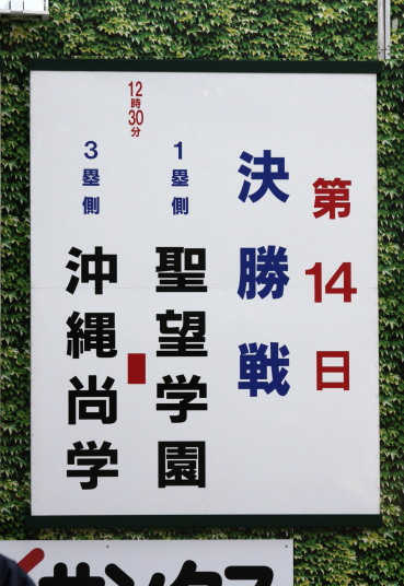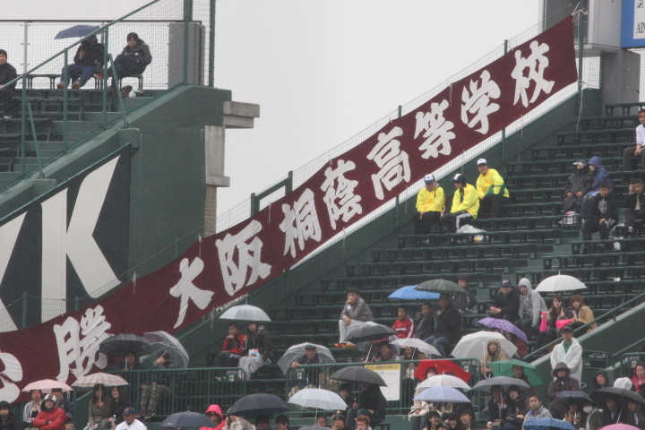 | 今大会は天候不順により3日順延で決勝戦の朝を迎えた。開門10時試合開始12時30分。 いきなり大阪桐蔭は1回裏4番小池が2ランHRで先制。 その後も効率よく追加点を奪って7対3で選抜初優勝を飾る。 光星学院も藤浪から12安打と健闘したが紫紺旗の初の白河越えはならなかった。 |