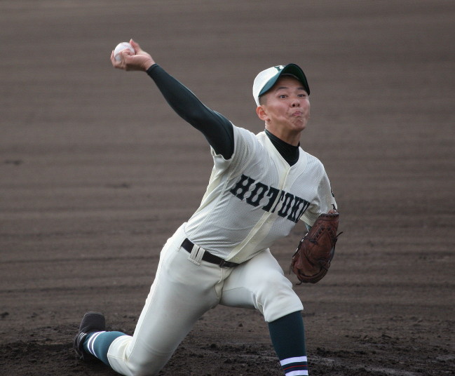 | 第二試合・延岡学園は6回ツーアウトランナー2塁から浜田がライト前ヒットで先制、 続く田中の左中間三塁打で2点目。 初先発の横瀬がリズム良く絶妙の投球、花巻東を3安打完封し決勝戦へ進出。 |