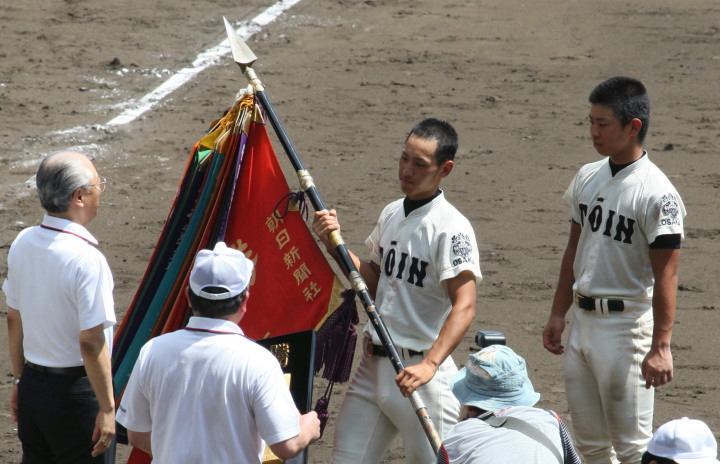 | 第一試合・高知 2-0 仙台育英 高知・先発酒井-坂本優の鉄壁リレーで完封勝ち。 4回市川と股川の連打とWPと前田の内野安打で貴重な追加点で先制。 仙台育英は持ち前の強打線が散発5安打に抑えられ念願の紫紺旗の白河越えがならなかった。 |