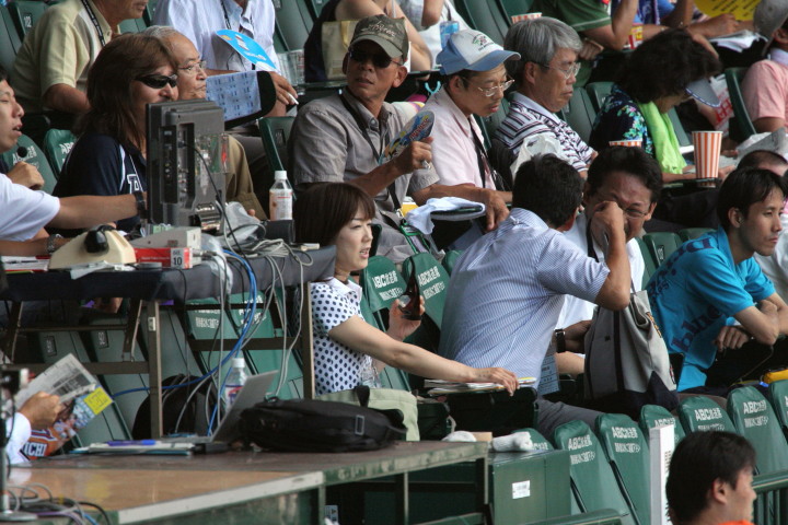 | 本日の舞洲は無風状態・高温多湿、まるでサウナ風呂、しかし高校野球ファンは我慢強い !! 大阪桐蔭の先発は網本・3回までに4失点し今日も追いかける展開になる。 6回8番SS水本の2ラン等で一度は逆転、その直後にリリーフ葛川が捕まり再逆転される。 しかし8回裏・森友哉のファースト強襲ヒットで勝ち越し更に香月がセンター前タイムリー打で決めた。 今日はこの一試合だけでギブアップ、匆々に退散する。 |