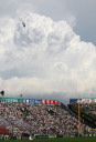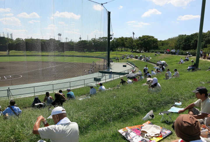 | 一試合目は序盤に3点先取した常翔学園が常にリードを保ち逃げ切った。 二試合目大阪桐蔭が2回に逆転され一時はあわやと思われたが森がバックスクリーンへ 同点HRしてからやっとペースを掴む。先発・澤田が苦しみながらの完投。 この炎暑の中、今日はこの二試合で引き上げた。 レフトからライト後方に大阪空港へ着陸体勢に入った「B787」などが見える。 |