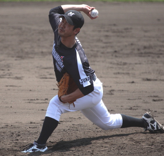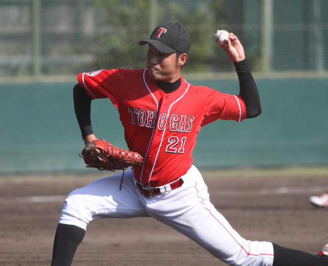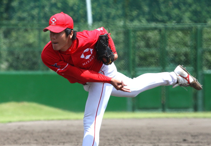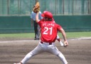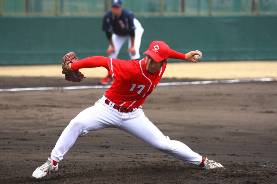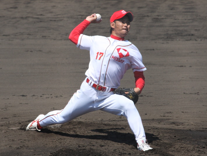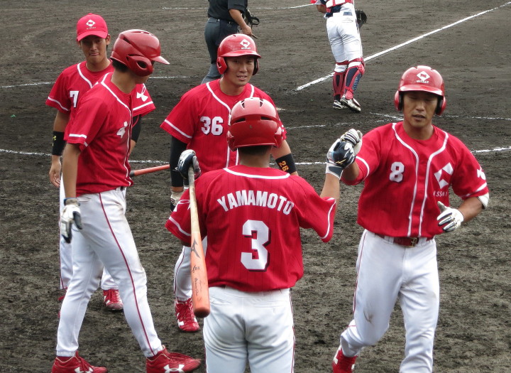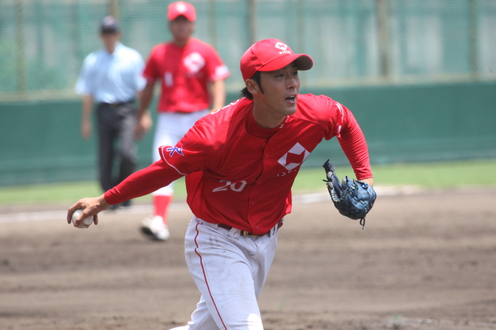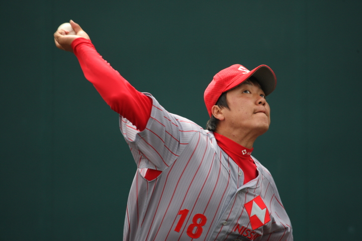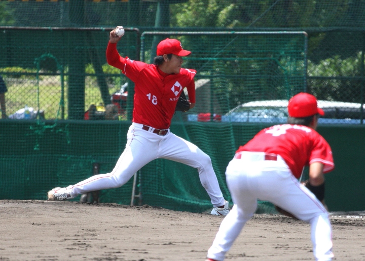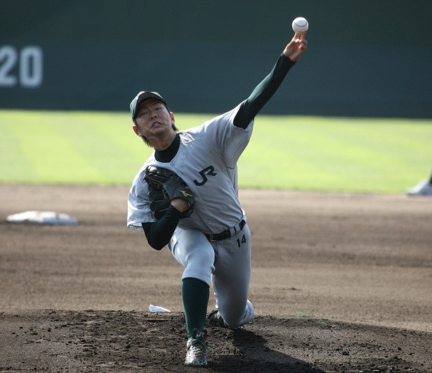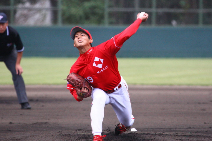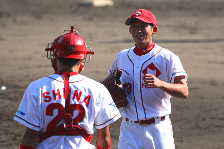 | 日本新薬の榎田が素晴らしいピッチングで強豪JR東日本を零封、リリーフ陣も持ち味を発揮し大差で快勝。 | ||||