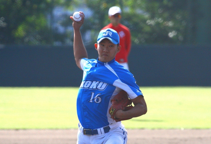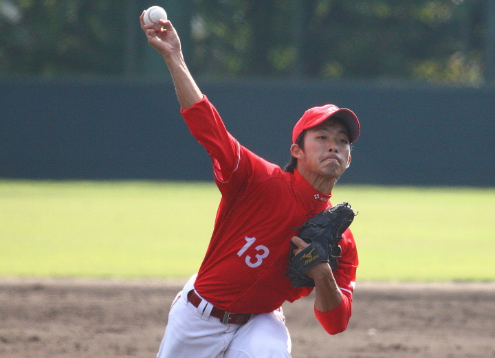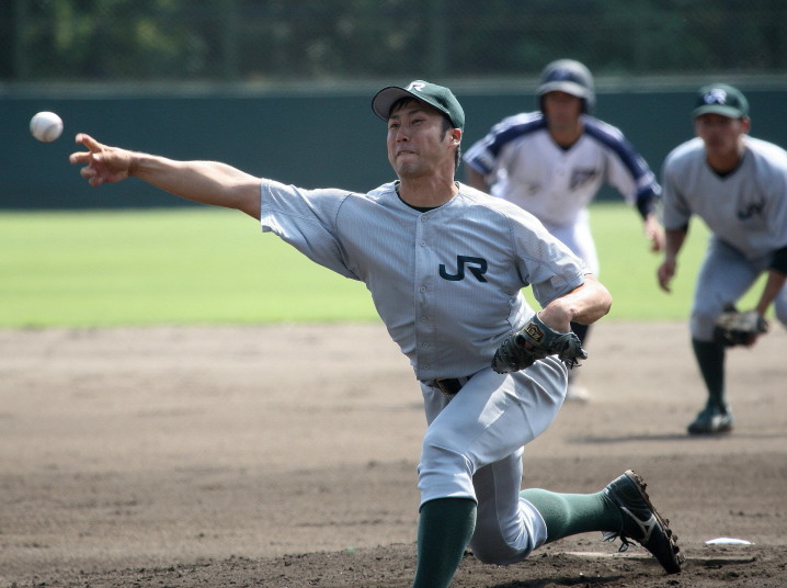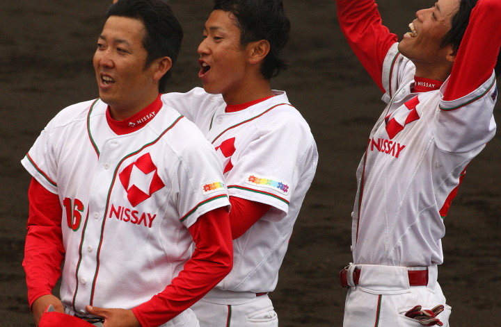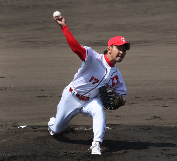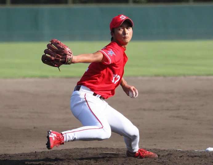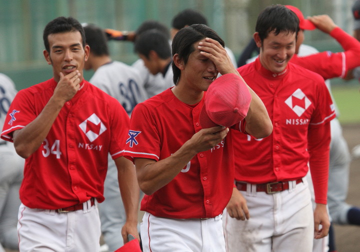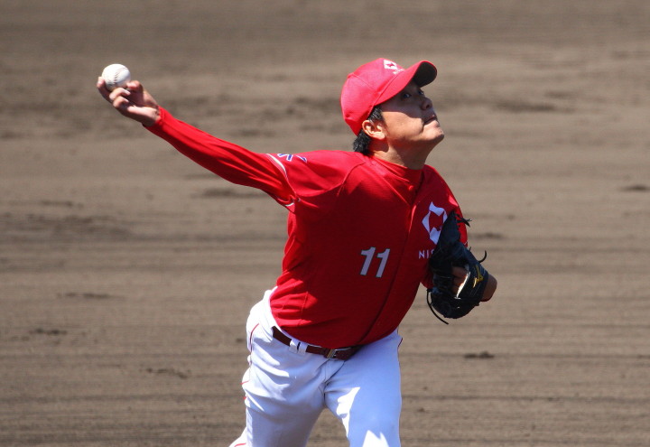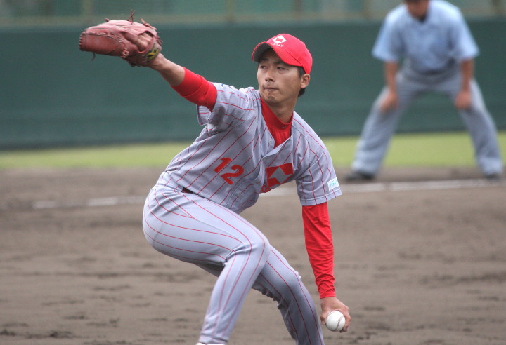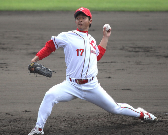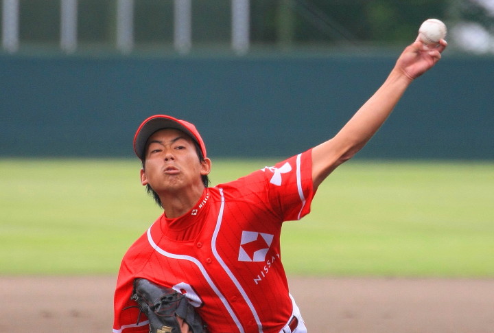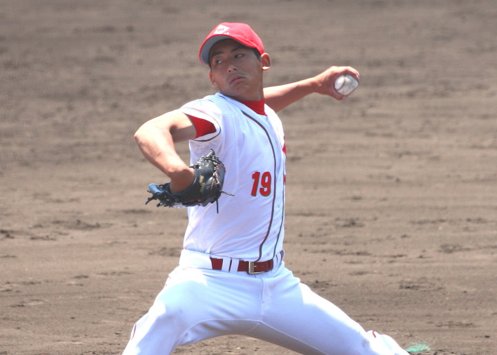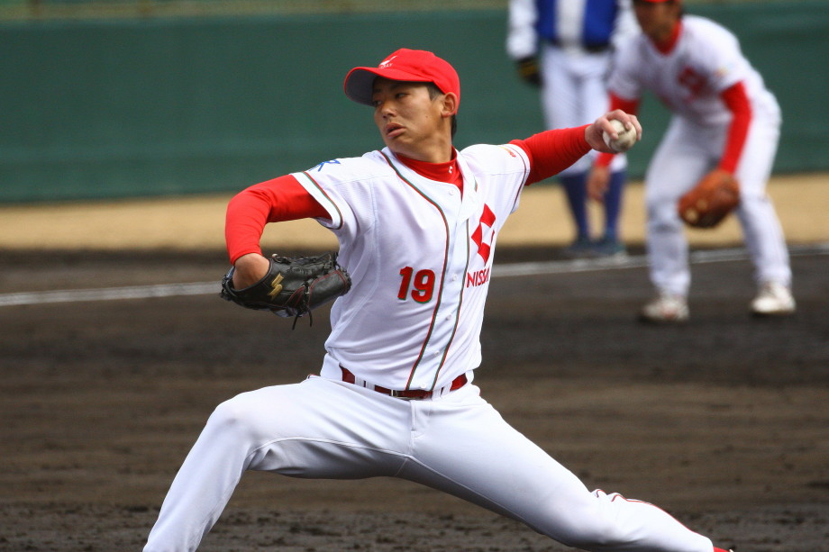 | 日本新薬の榎田が素晴らしいピッチングで強豪JR東日本を零封、リリーフ陣も持ち味を発揮し大差で快勝。 | ||||