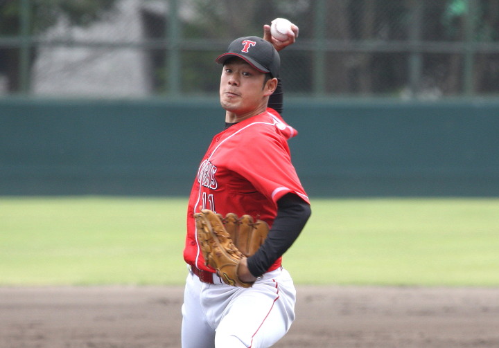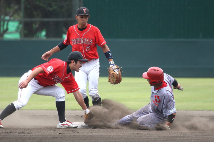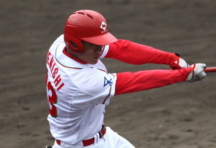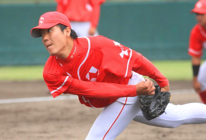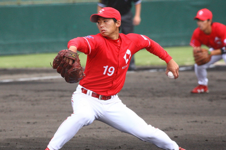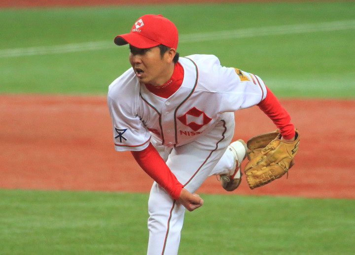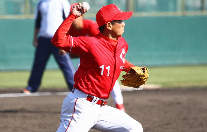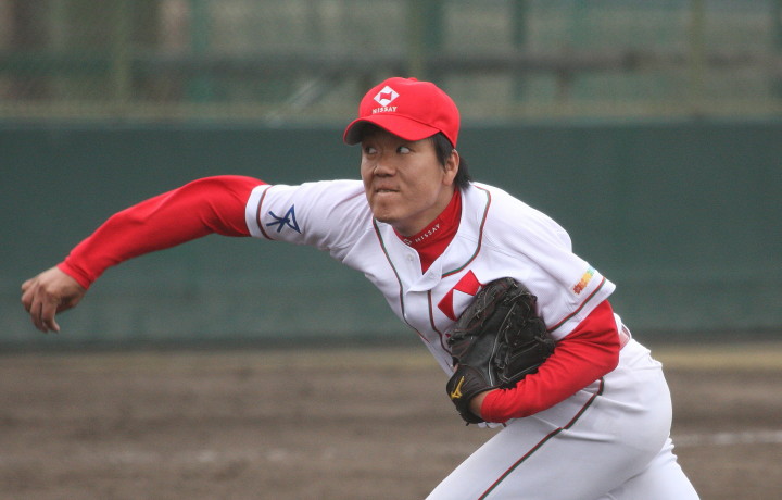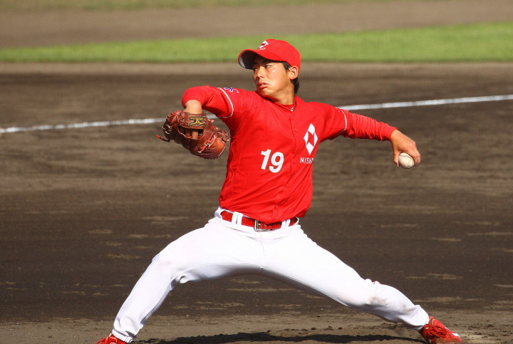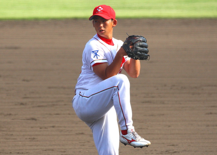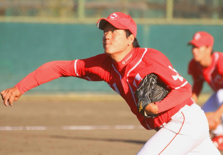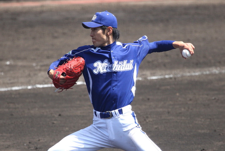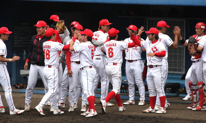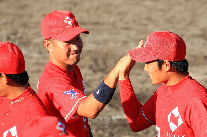 | 日本新薬の榎田が素晴らしいピッチングで強豪JR東日本を零封、リリーフ陣も持ち味を発揮し大差で快勝。 | ||||