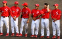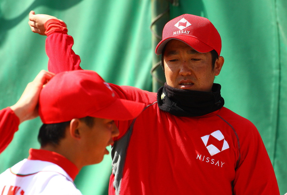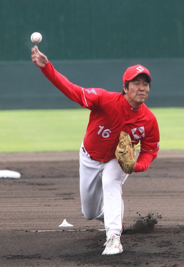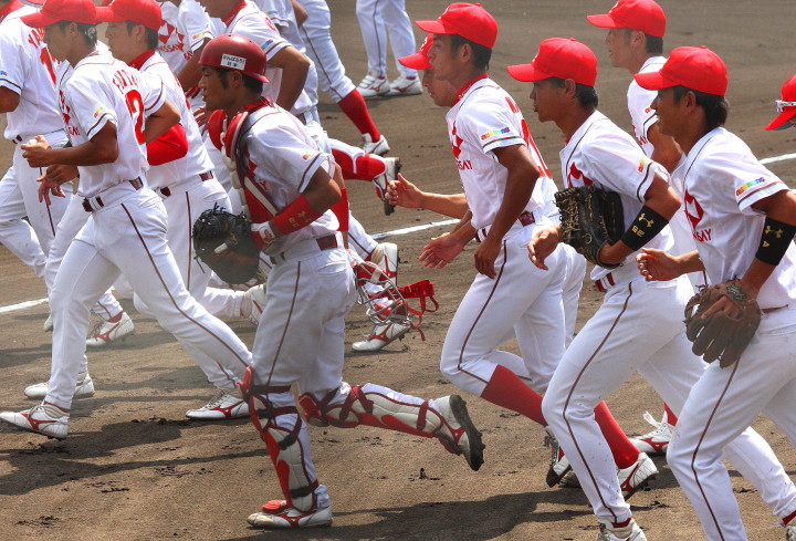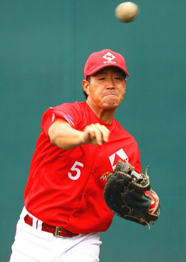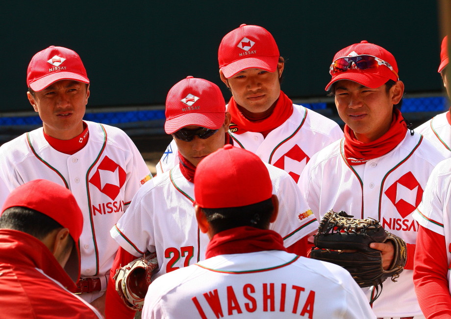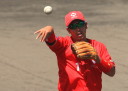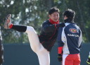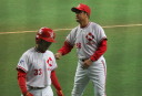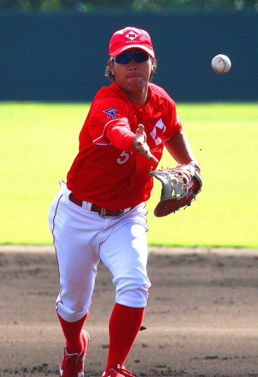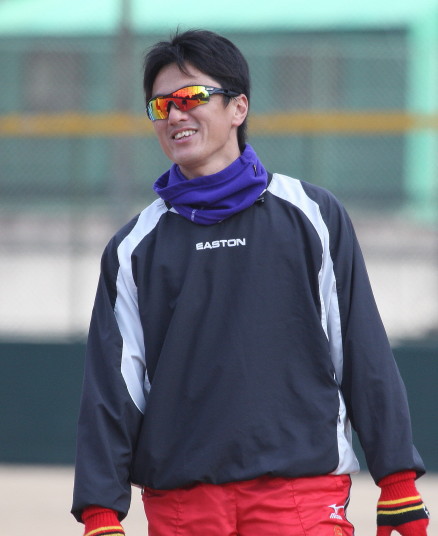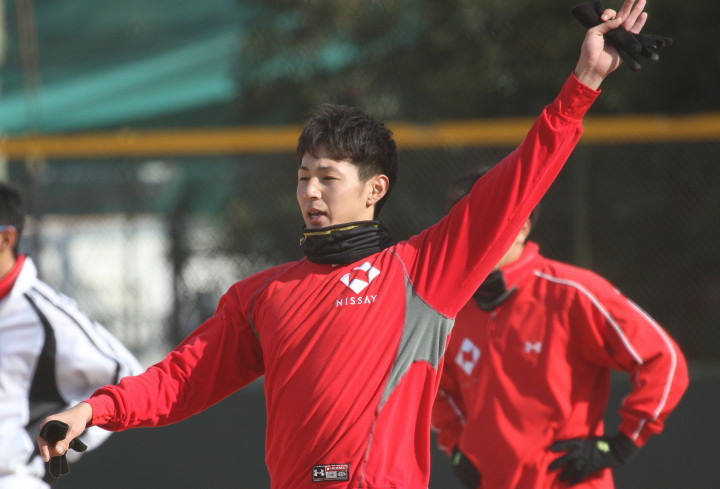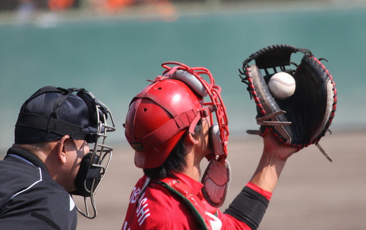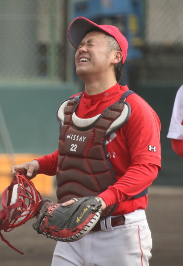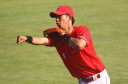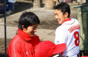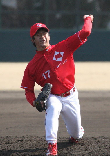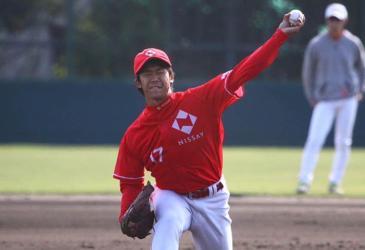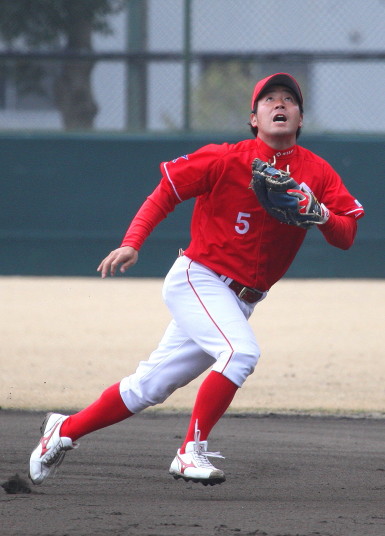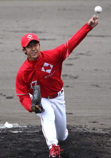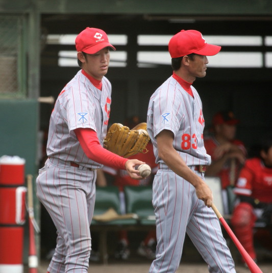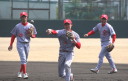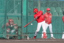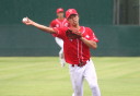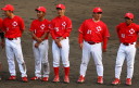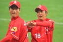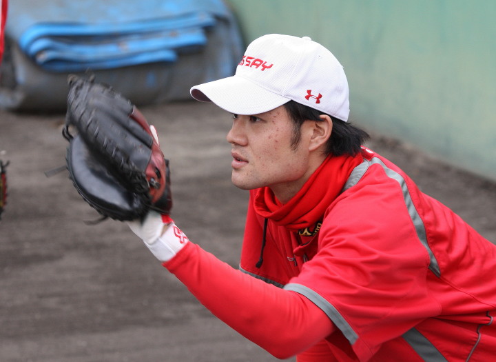 | いよいよ今シーズンの始動、既存メンバー23名と新人2名が集合し入念なアップから、 投手は立ち投げ、野手は捕球とスローイングで今日のメニューは終了した。 新人7名の内、今日の参加は、RF上西と2B原田の2名。 二人とも180cm超え、50m5秒台の俊足、遠投110mの上西・90mの原田、 特に上西のスケールの超大さは頼もしい。 |