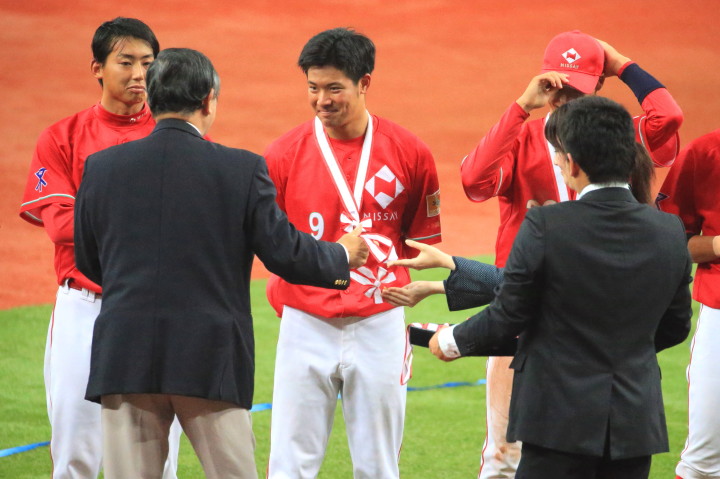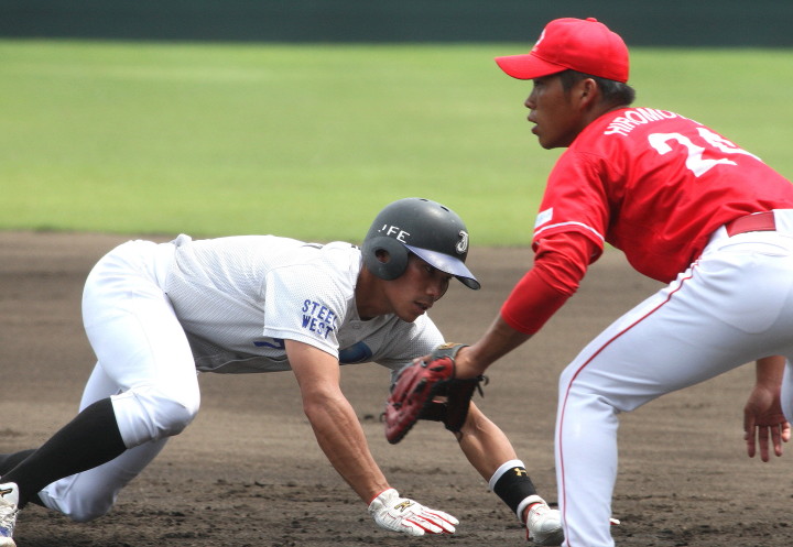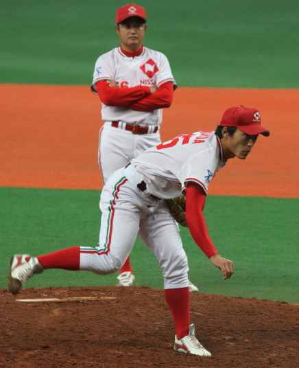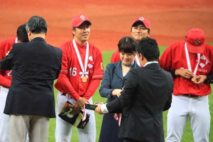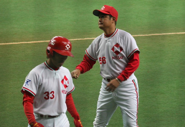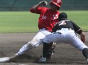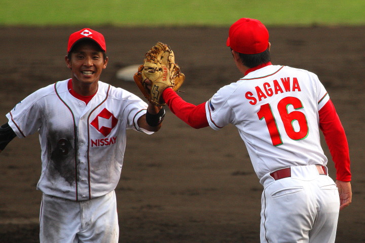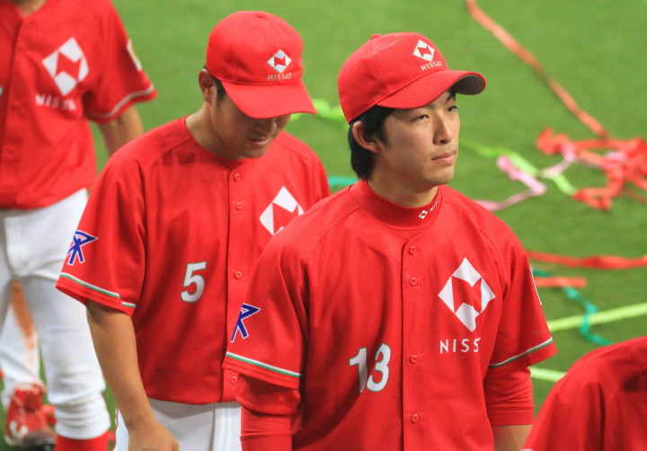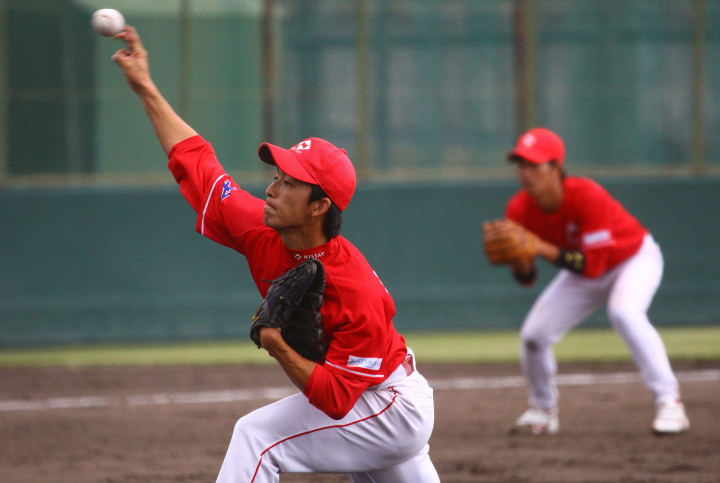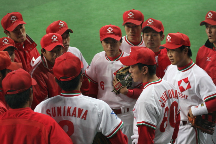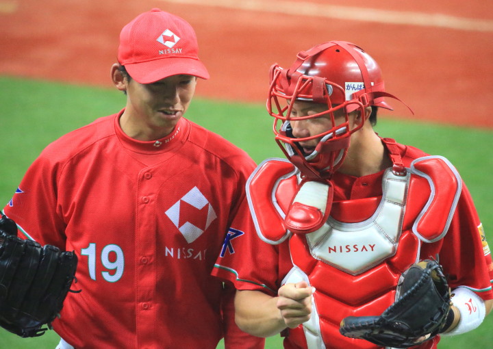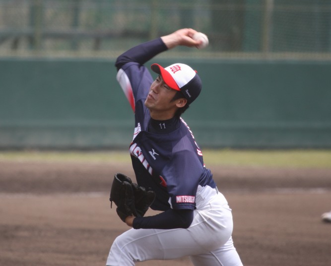| 三菱に先行されたが、5回、6回と日生打線が繋がり始め佐々木優介、有竹のタイムリーで逆転。 先発・佐川は粘り強く6回まで1失点と好投、だが7回三菱・斎藤に3ランを許す。 |