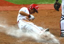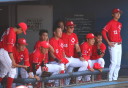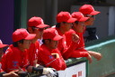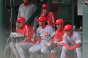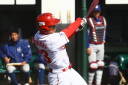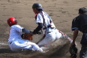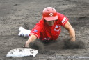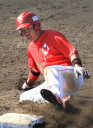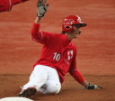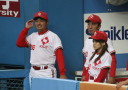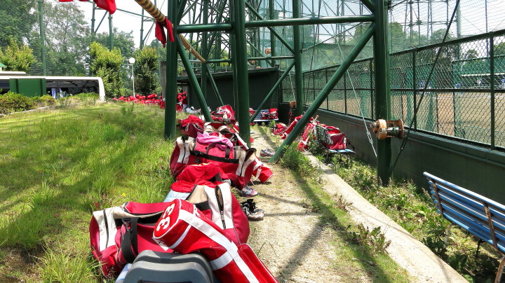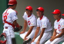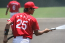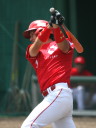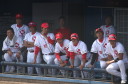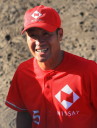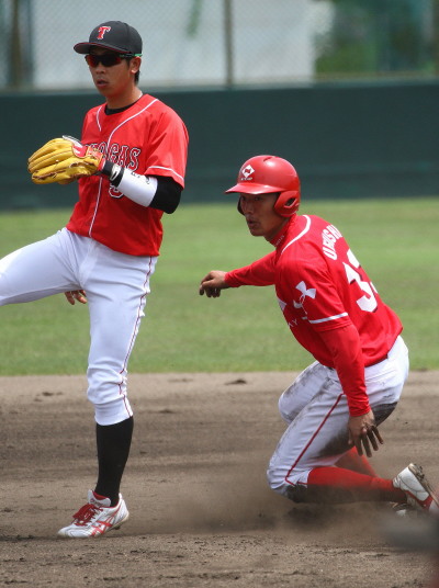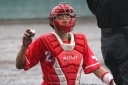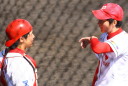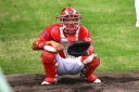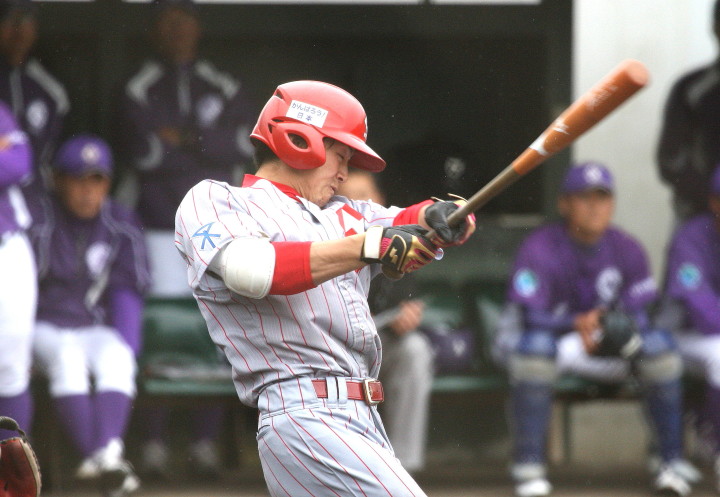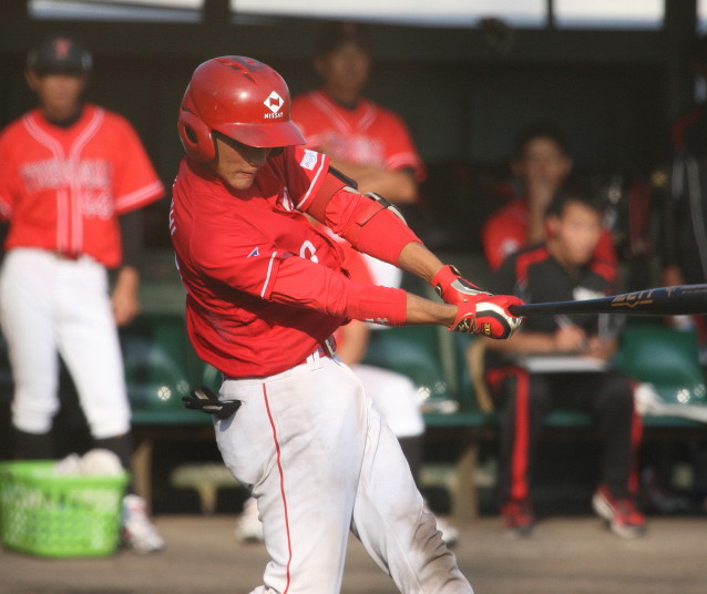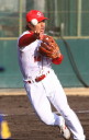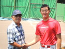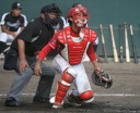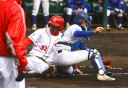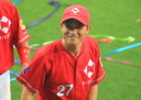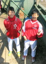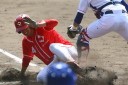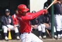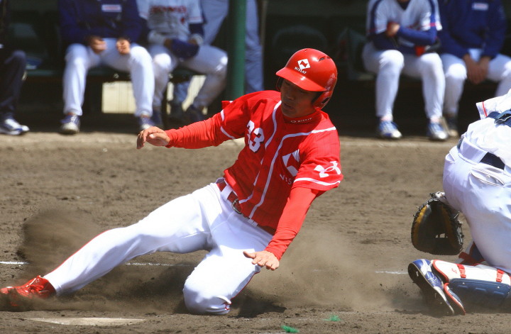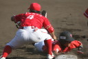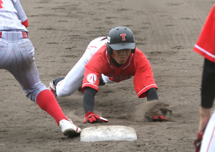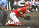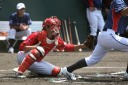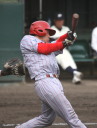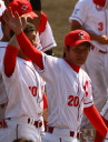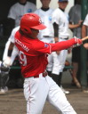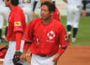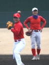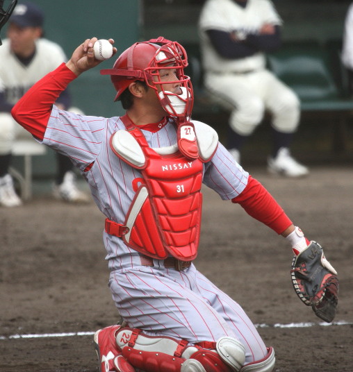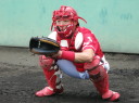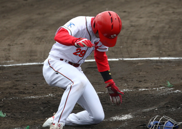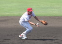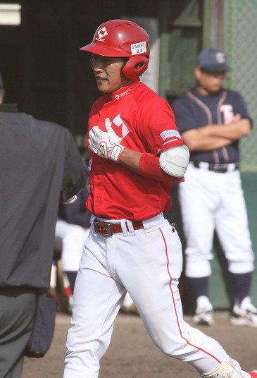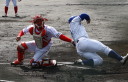 | 想定外のワンサイド・ゲームになった。初回から打線が活発に打ち捲る。 昨年もこのように打ち出すと止まらない状態の時もあった事を思い出した。 7回打者一巡、5安打2四球とタイムリーが続いて一挙5得点が強烈なダメ押しになった。 ただデットボール3個(廣本、山本、原田)は多すぎる、中でも3B山本真は右手甲を負傷し即交代。 余談だが最下段の写真は鳥谷司、阪神の鳥谷敬の弟。現役を退いてマネジャーに専念。 |